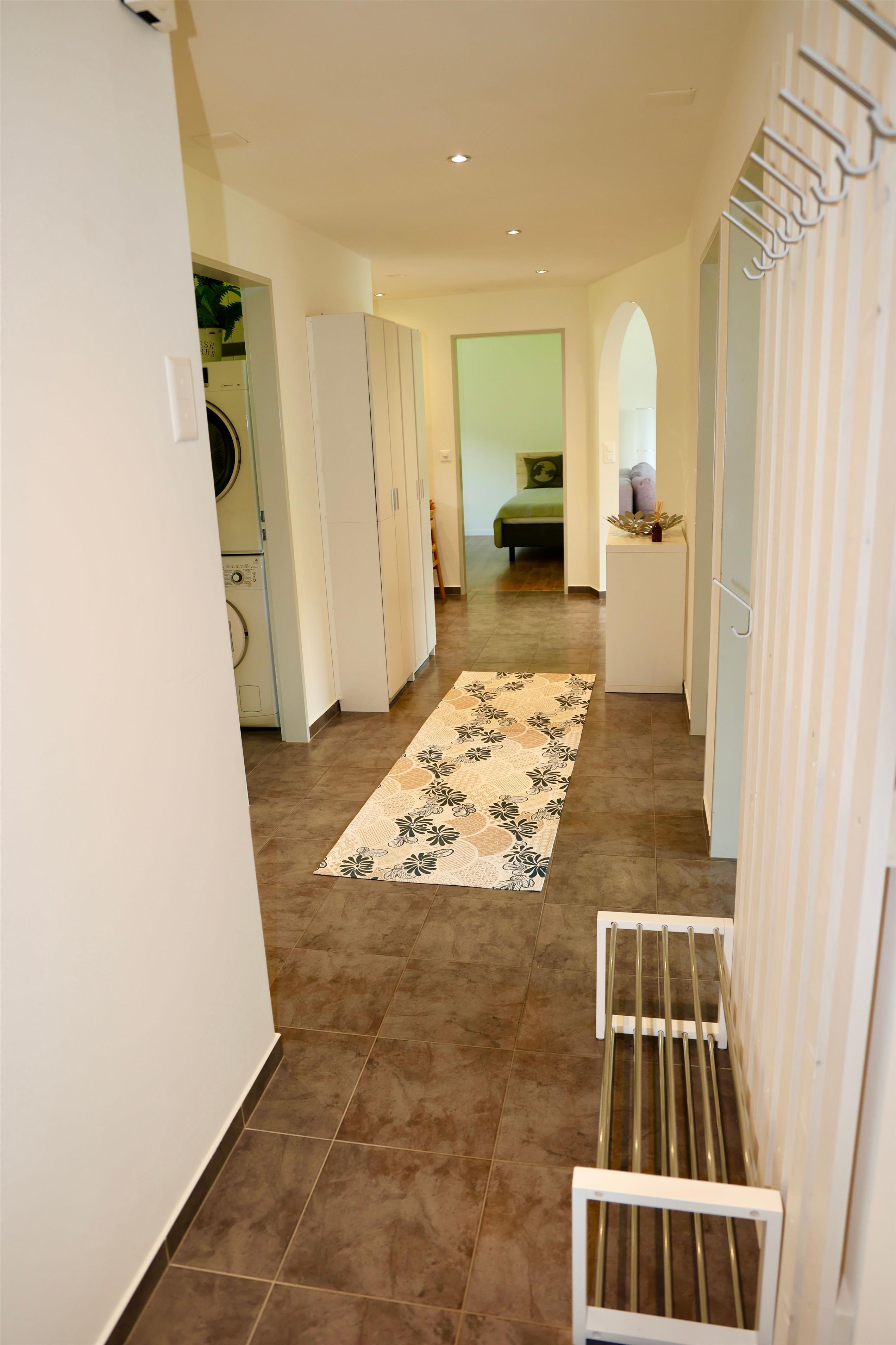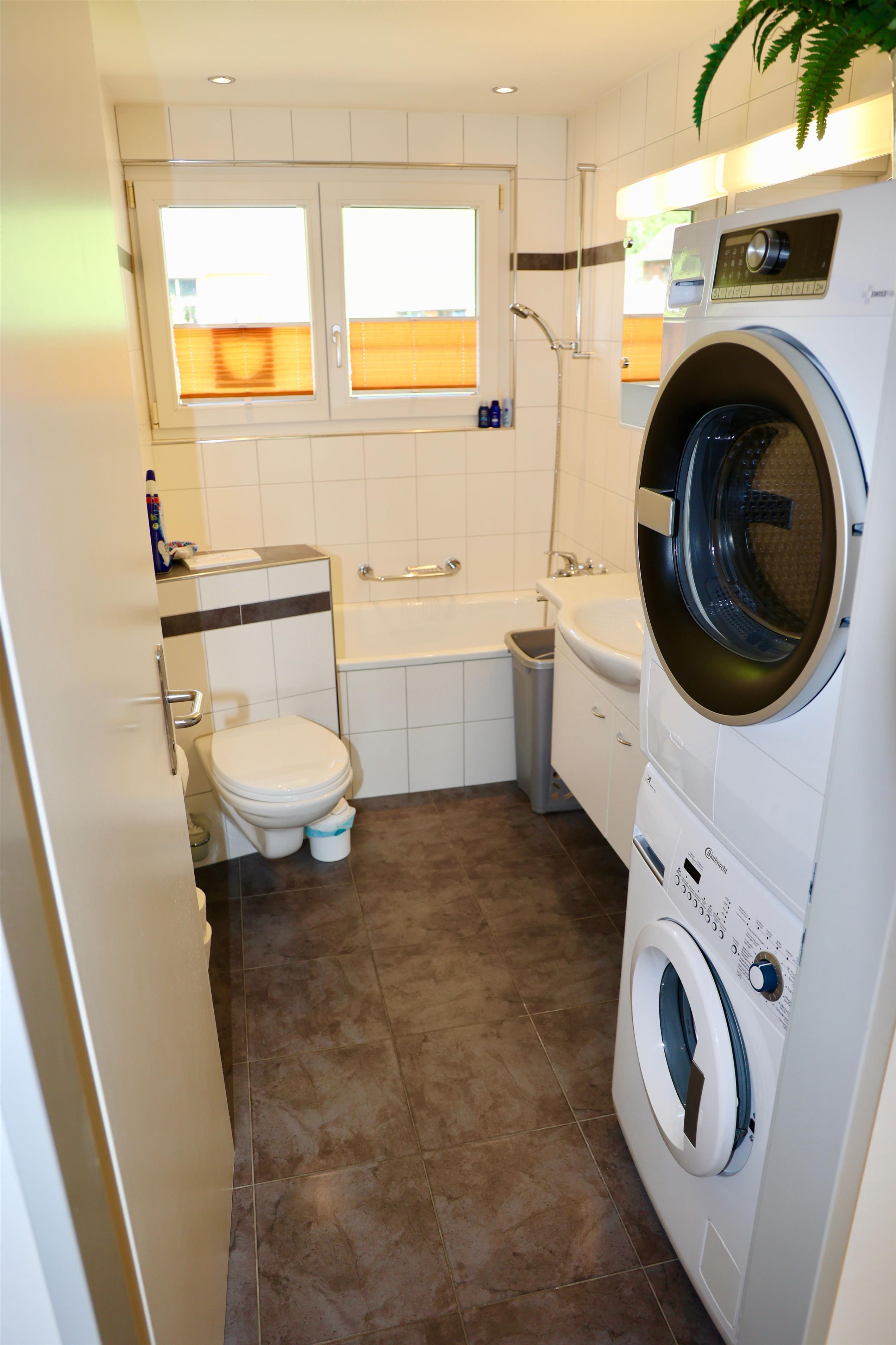 Erleben Sie die Bequemlichkeit einer Waschmaschine und eines Wäschetrockners, die Ihnen beide zur alleinigen Nutzung zur Verfügung stehen, was für längere Aufenthalte besonders praktisch ist. Gelegen im zweiten Obergeschoss, erwartet Sie hier zudem ein Balkon, der sich hervorragend eignet, um die ruhige Atmosphäre der Umgebung zu genießen.
