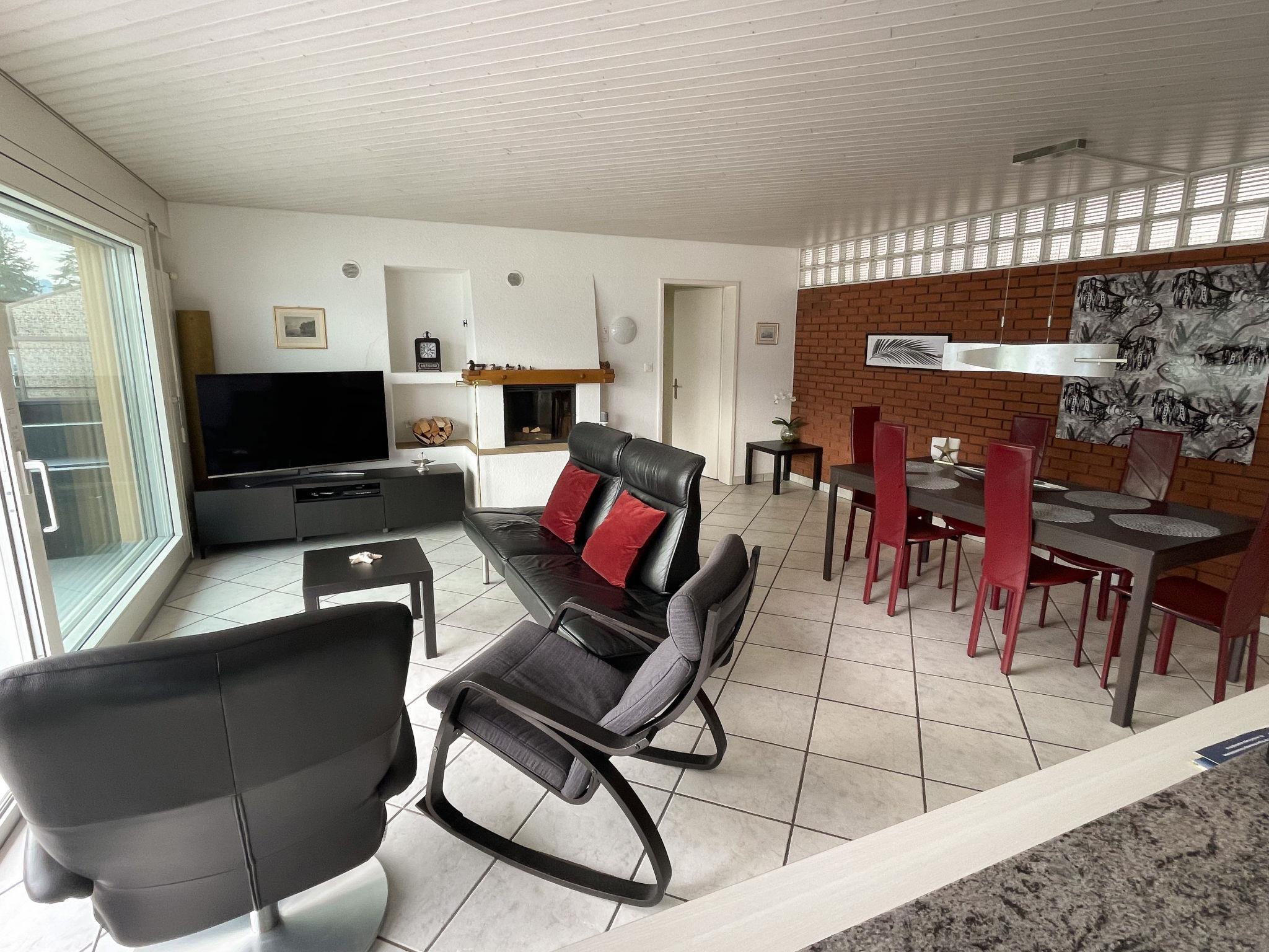 4-Zimmer-Haus 120 m2, im erhöhten Erdgeschoss. Komfortabel und modern eingerichtet: Wohn-/Esszimmer mit offenem Kamin und Kabel-TV (Flachbildschirm), DVD. Ausgang zur Terrasse. 2 Doppelzimmer. Ausgang zur Terrasse. 1 Doppelzimmer. Offene Küche (Backofen, Geschirrspüler, 4 Glaskeramikplatten, Mikrowelle, elektrische Kaffeemaschine, Kapseln für die Kaffeemaschine (Delizio), Racletteofen, Fondue Set (Käse)) mit Esstisch. Ausgang zur Terrasse. Dusche/WC, sep. WC. Grosse Terrasse 60 m2, Südlage. Terrassenmöbel, Elektrogrill. Herrliche Panoramasicht auf den See, die Berge und die Ortschaft. Zur Verfügung: Waschmaschine, Wäschetrockner, Babybett, Haartrockner. Internet (WLAN, gratis). Parkplatz (2 Autos) beim Haus. Bitte beachten: Nichtraucher-Haus. Maximal 1 Haustier/Hund erlaubt.