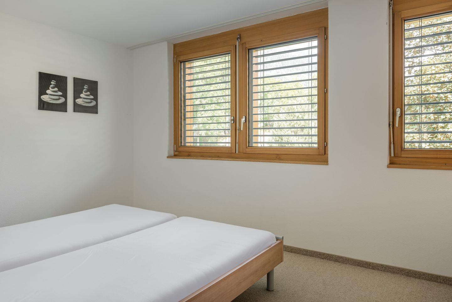 1 Großes Wohn- Esszimmer mit offener Küche, 2 Schlafzimmer mit 2 Betten, 1 Schlafzimmer mit 2x Etagenbett, 1 Badezimmer mit Doppellavabo, WC, Badewanne und Dusche, 1 Nasszelle mit Lavabo und WC. Balkon mit Gartenmöbeln. Kinderspielplatz in der Liegenschaft vorhanden.