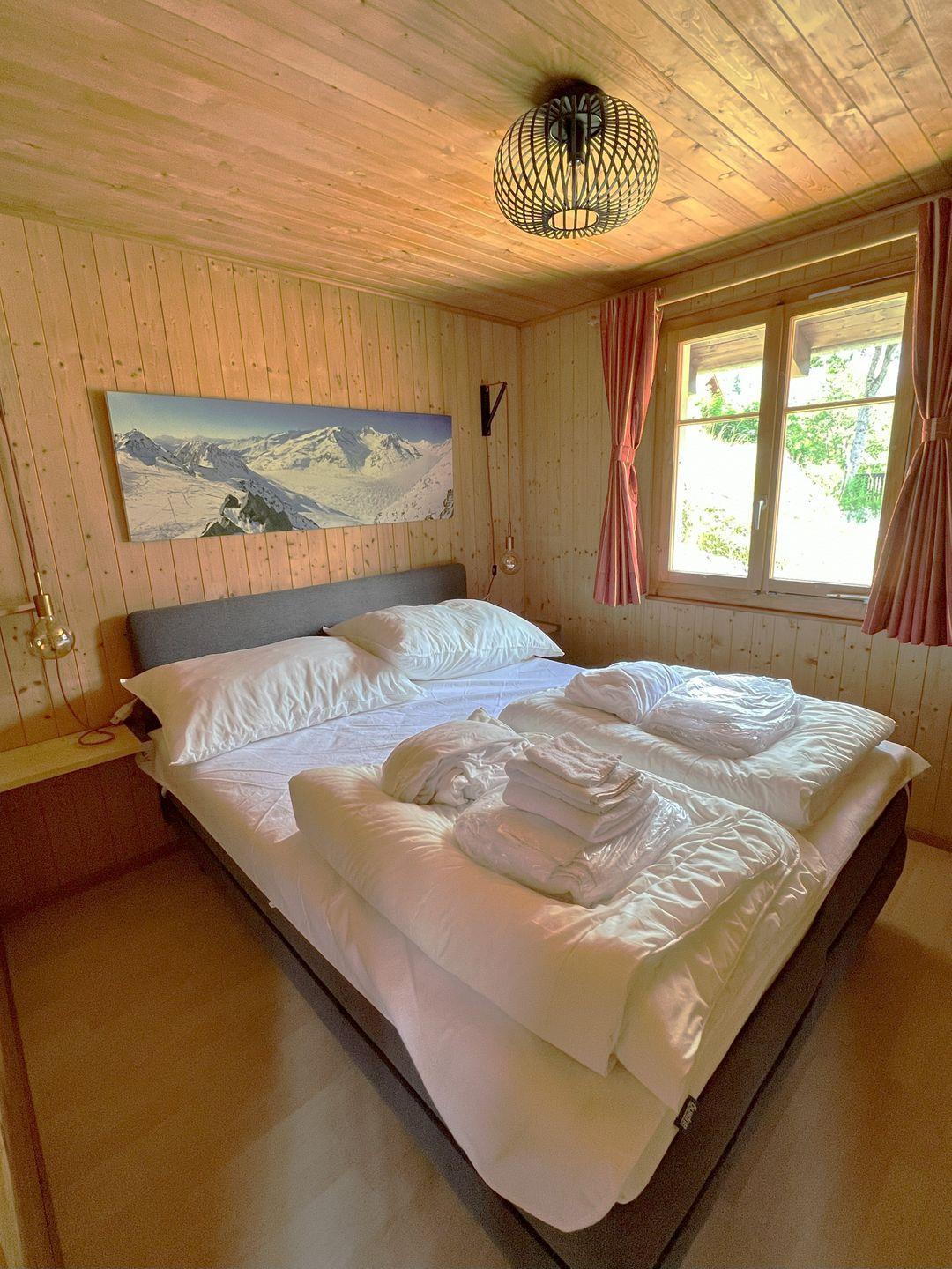 Das Chalet bietet Platz für 4 Personen. Die Küche und das Badezimmer mit WC/Dusche wurden im Frühjahr 2023 komplett renoviert. Die Küche ist mit einem Glas Keramik Kochfeld mit Dunstabzug ausgestattet und im Ofen ist eine Mikrowellenfunktion integriert. Eine Nespresso Kaffeemaschine ist ebenfalls vorhanden.