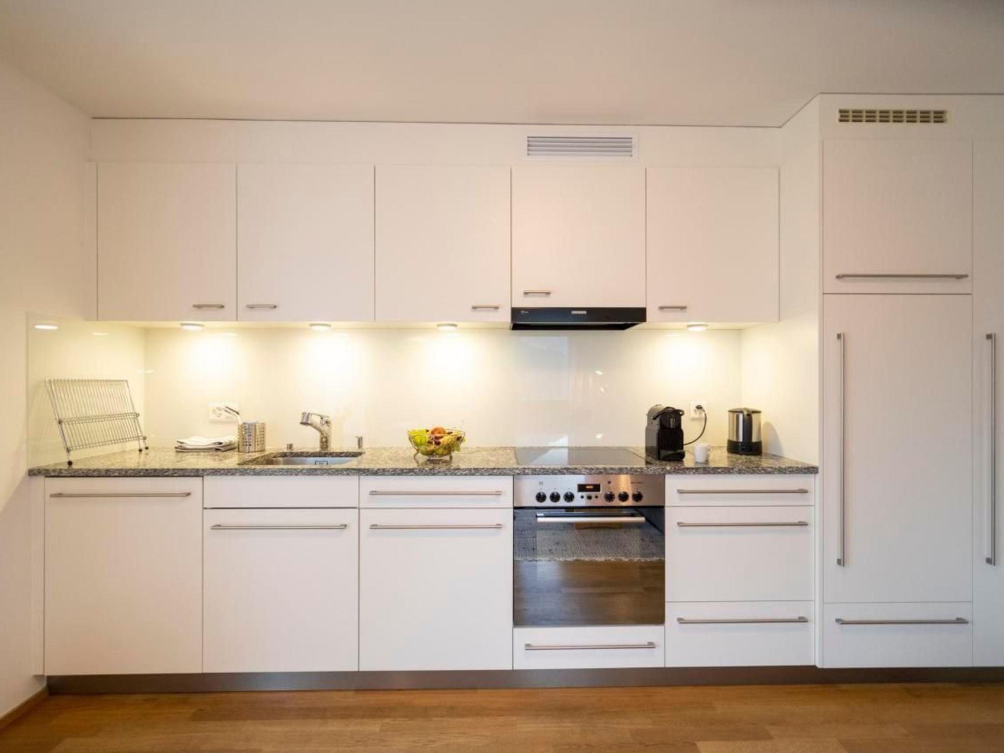 Küche ausgerüstet mit Glaskeramikkochfeld (4 Kochfelder), Dampfabzug, Backofen, Geschirrspüler, Kühlschrank mit Tiefkühlfach, Mikrowellenherd, Kaffeemaschine (Nespresso), Wasserkocher, Sodastream, Toaster, Putzschrank. Sämtliches Koch- und Essgeschirr (inkl. Fondue- und Racletteset) sowie Küchenwäsche vorhanden. Kochbasics wie Oel, Essig, Gewürze, Abwaschtabs, Abwaschmittel etc. vorhanden.