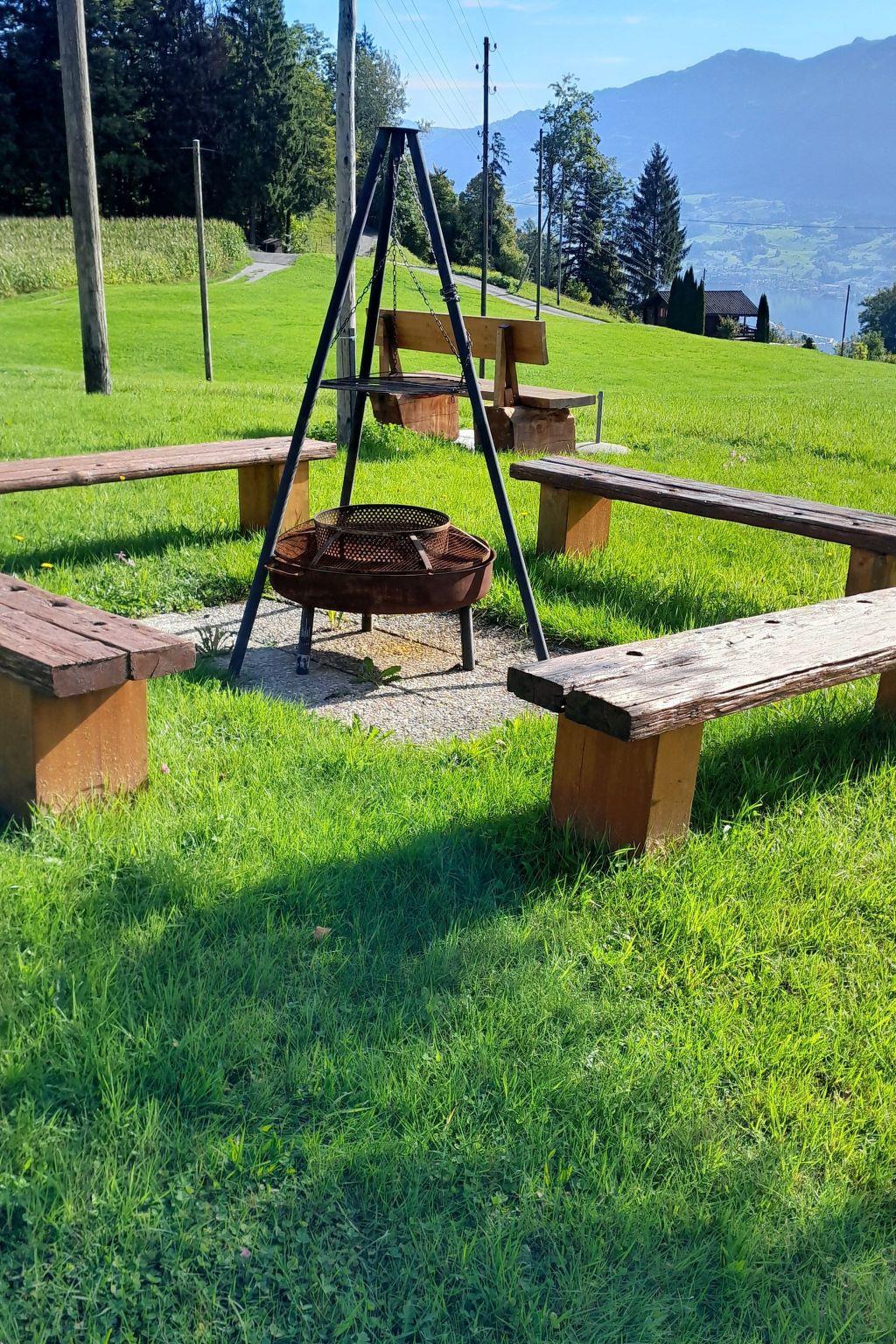 Ein geschützter Liegeplatz , sowie Tisch und Stühle gehören auch dazu. Ebenso Liegenstühle und Sonnenschirme. Auch die vorhandene Grillstelle, Trampolin, Tischtennistisch und eine Kinderschaukel können benutzt werden. Der grosszügige Rasenplatz lädt zum Ballspielen ein.