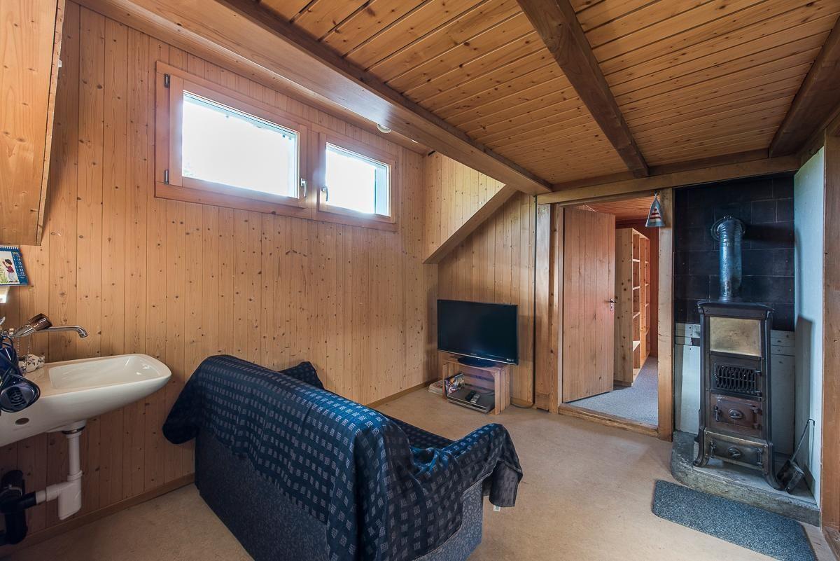 Im Außenbereich besticht das Haus Iwi-Wang mit einem großzügigen Sitzplatz und einer eigenen Feuerstelle, ideal für gemütliche Abendstunden mit Blick ins kleine Melchtal und auf das Massiv des Giswilerstocks. Der weitläufige Umschwung und ausreichende Parkmöglichkeiten steigern den Komfort ihres Aufenthalts.