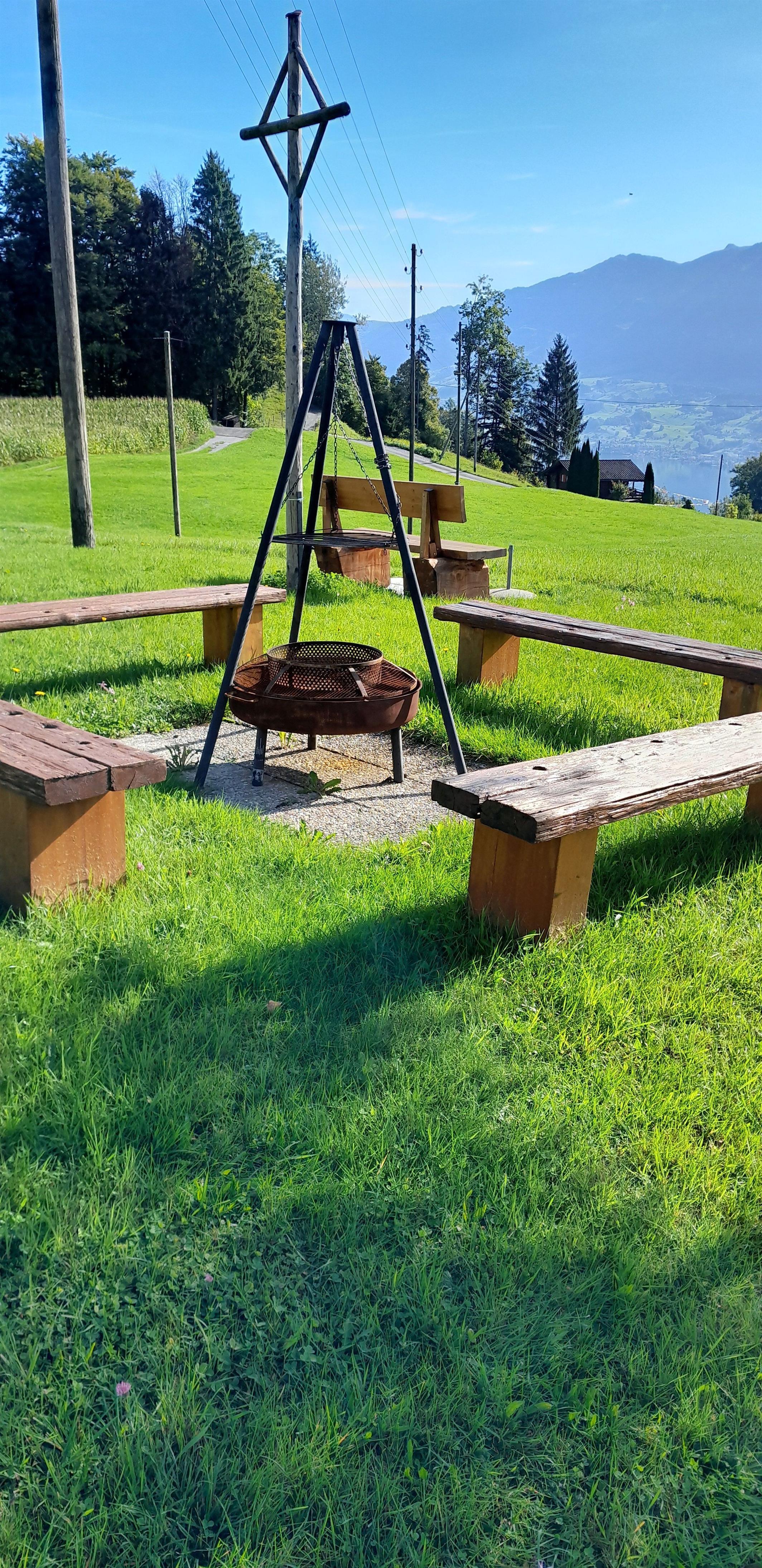 Ein geschützter Liegeplatz , sowie Tisch und Stühle gehören auch dazu. Ebenso Liegenstühle und Sonnenschirme. Auch die vorhandene Grillstelle, Trampolin, Tischtennistisch und eine Kinderschaukel können benutzt werden. Der grosszügige Rasenplatz lädt zum Ballspielen ein.