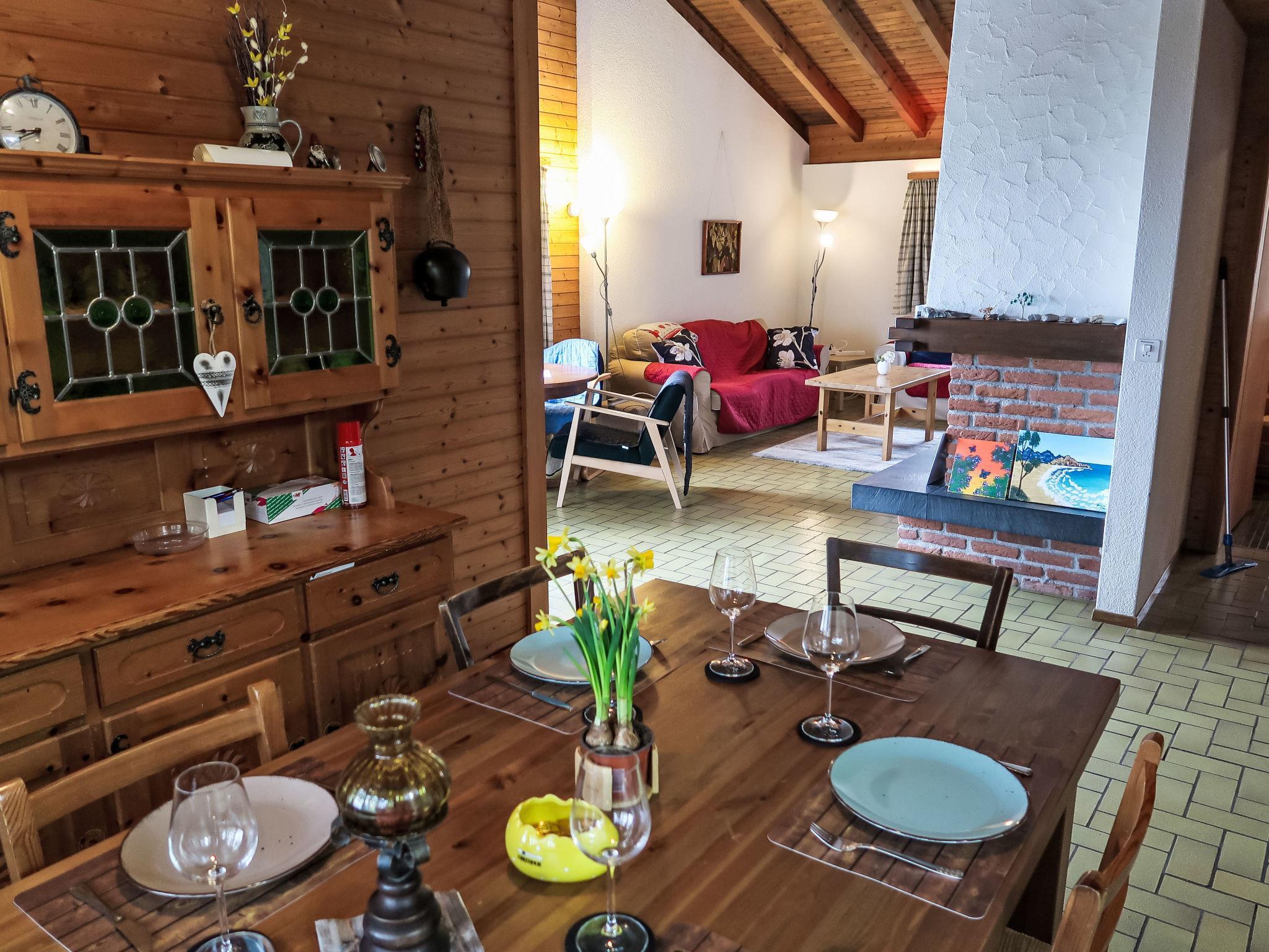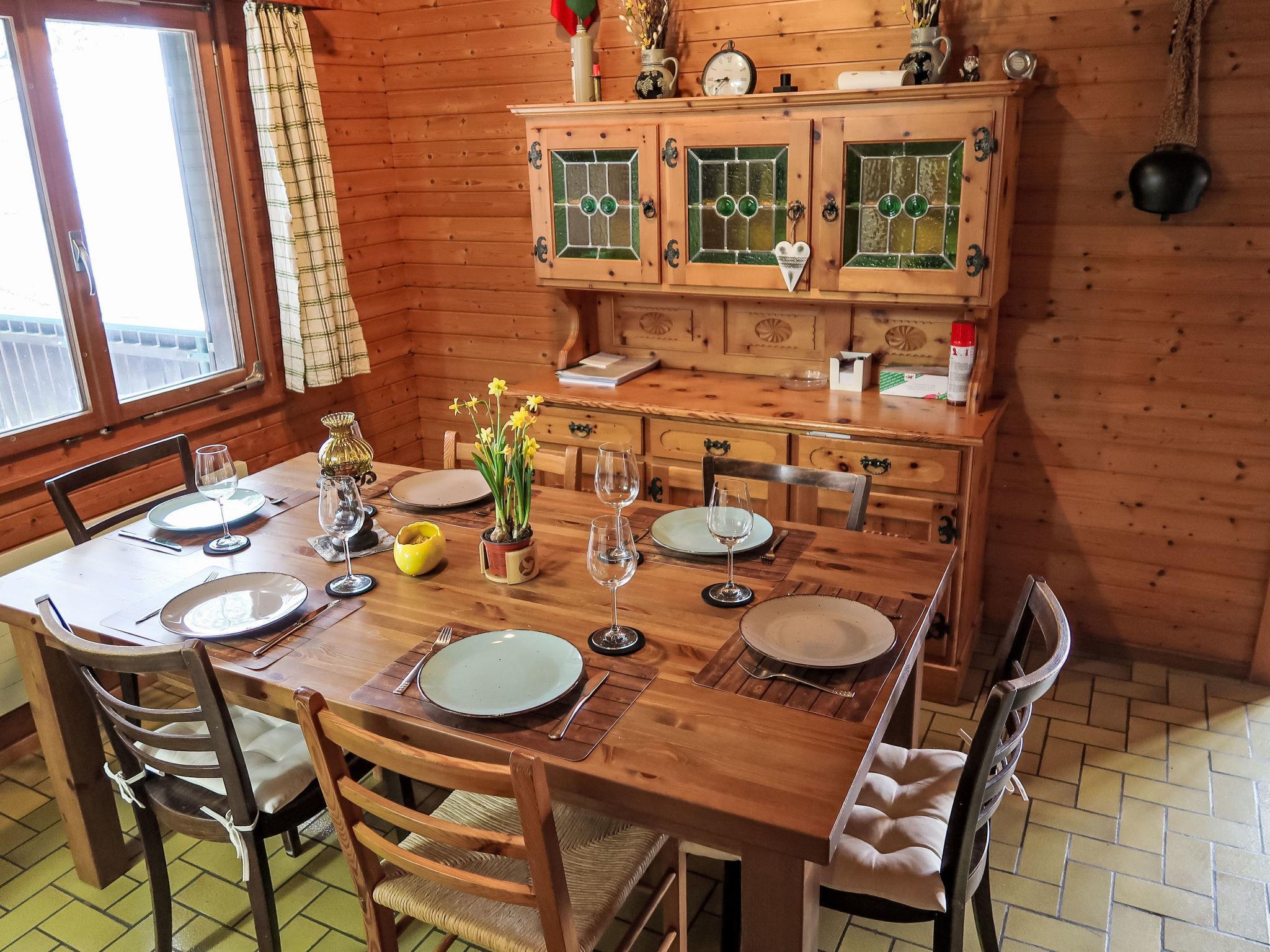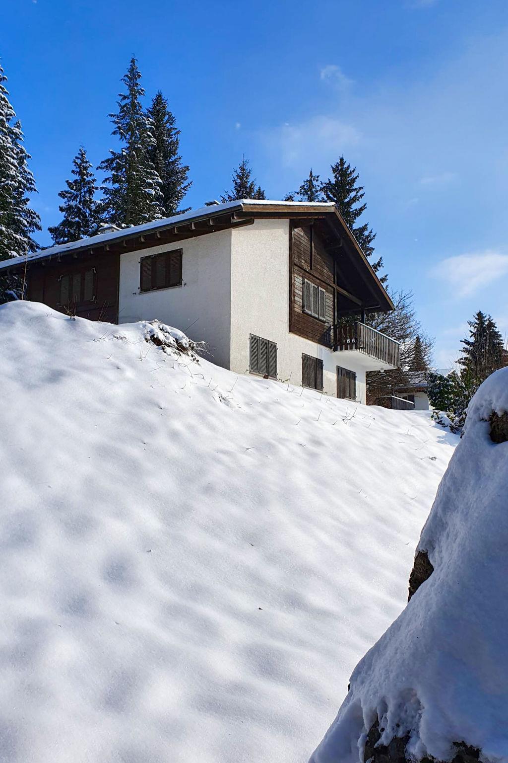 5-Zimmer-Chalet 130 m2 auf 2 Stockwerken. Einfach und gemütlich eingerichtet: Wohn-/Esszimmer mit offenem Kamin und Kabel-TV (Flachbildschirm), Radio und Stereoanlage. Ausgang zum Balkon. 1 Doppelzimmer. Küche (Backofen, Geschirrspüler, 4 Glaskeramikplatten, Toaster, Wasserkocher, Mikrowelle, elektrische Kaffeemaschine, Racletteofen, Fondue Set (Käse)). Bad/WC. Unteres Geschoss: 2 Doppelzimmer. 1 kleines Zimmer mit 2 Betten. Dusche/WC. Balkon, Gartensitzplatz. Terrassenmöbel, Gartengrill (mobil), Abstellkammer. Schöne Sicht auf die Berge, das Tal, die Landschaft und die Ortschaft. Zur Verfügung: Waschmaschine, Wäschetrockner, Haartrockner. Internet (WLAN, gratis). Parkplatz (2 Autos) beim Haus. Bitte beachten: Nichtraucher-Unterkunft. Maximal 3 Haustiere/Hunde erlaubt.
