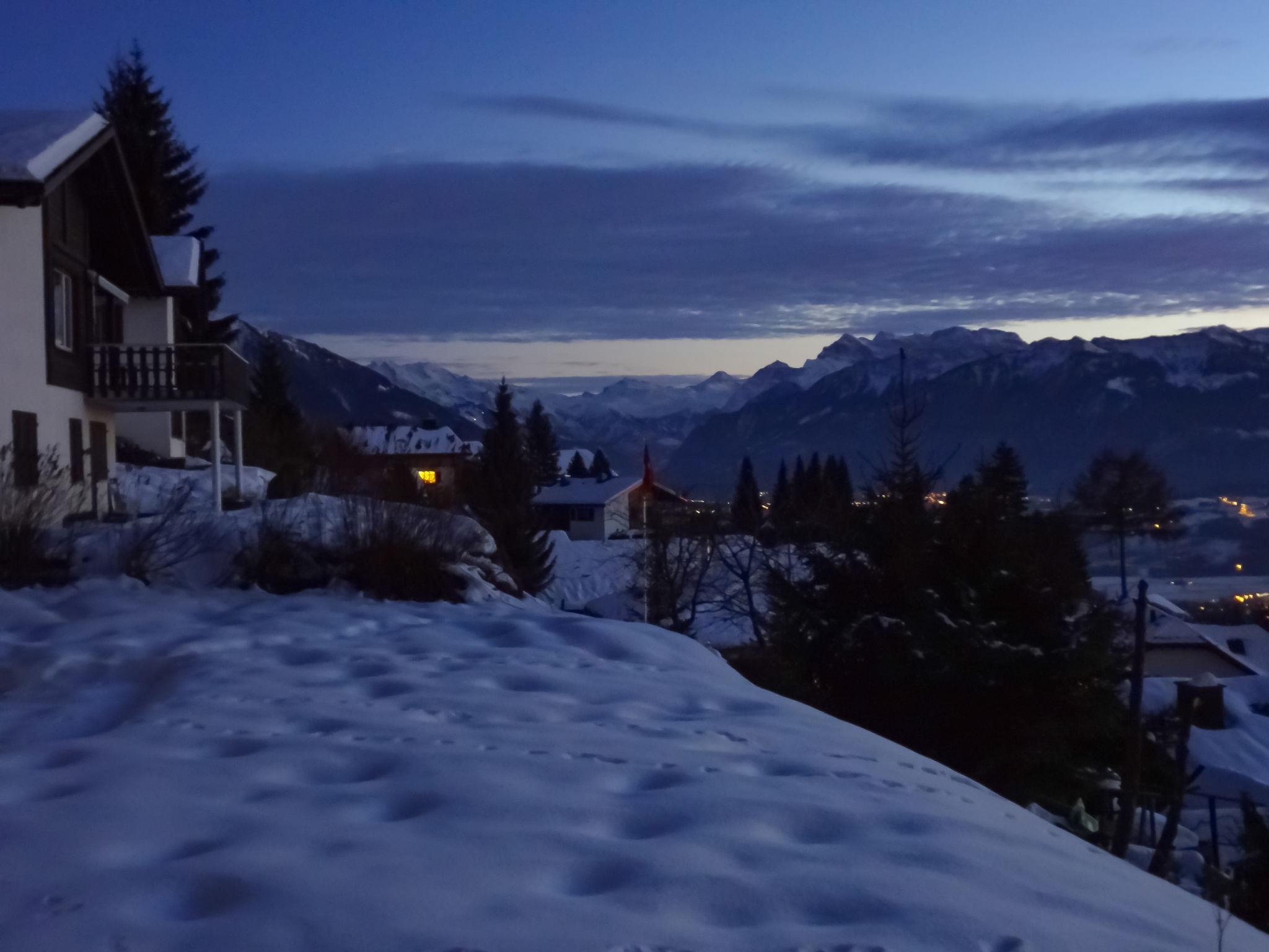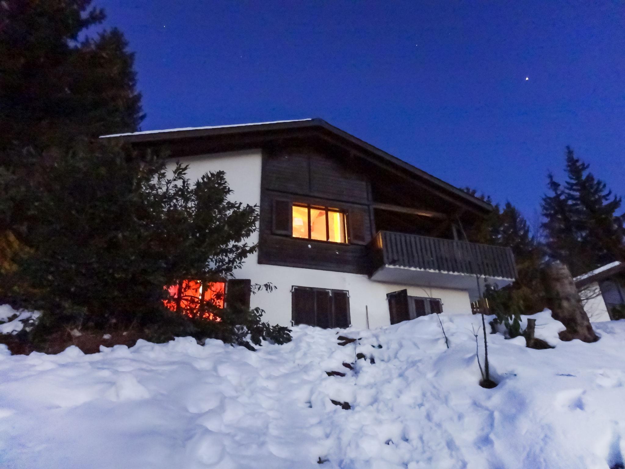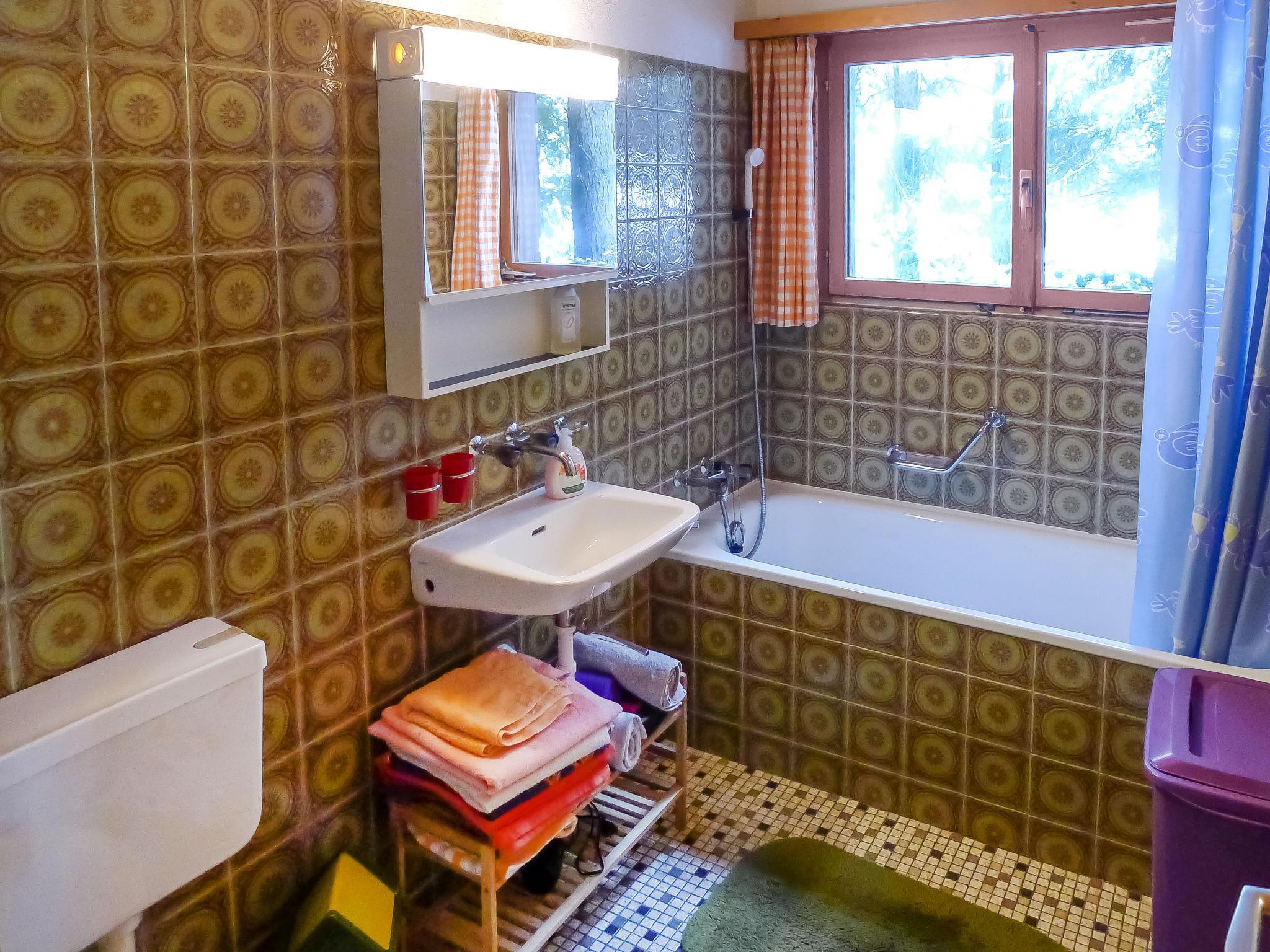 5-Zimmer-Chalet 130 m2 auf 2 Stockwerken. Einfach und gemütlich eingerichtet: Wohn-/Esszimmer mit offenem Kamin und Kabel-TV (Flachbildschirm), Radio und Stereoanlage. Ausgang zum Balkon. 1 Doppelzimmer. Küche (Backofen, Geschirrspüler, 4 Glaskeramikplatten, Toaster, Wasserkocher, Mikrowelle, elektrische Kaffeemaschine, Racletteofen, Fondue Set (Käse)). Bad/WC. Unteres Geschoss: 2 Doppelzimmer. 1 kleines Zimmer mit 2 Betten. Dusche/WC. Balkon, Gartensitzplatz. Terrassenmöbel, Gartengrill (mobil), Abstellkammer. Schöne Sicht auf die Berge, das Tal, die Landschaft und die Ortschaft. Zur Verfügung: Waschmaschine, Wäschetrockner, Haartrockner. Internet (WLAN, gratis). Parkplatz (2 Autos) beim Haus. Bitte beachten: Nichtraucher-Unterkunft. Maximal 3 Haustiere/Hunde erlaubt.