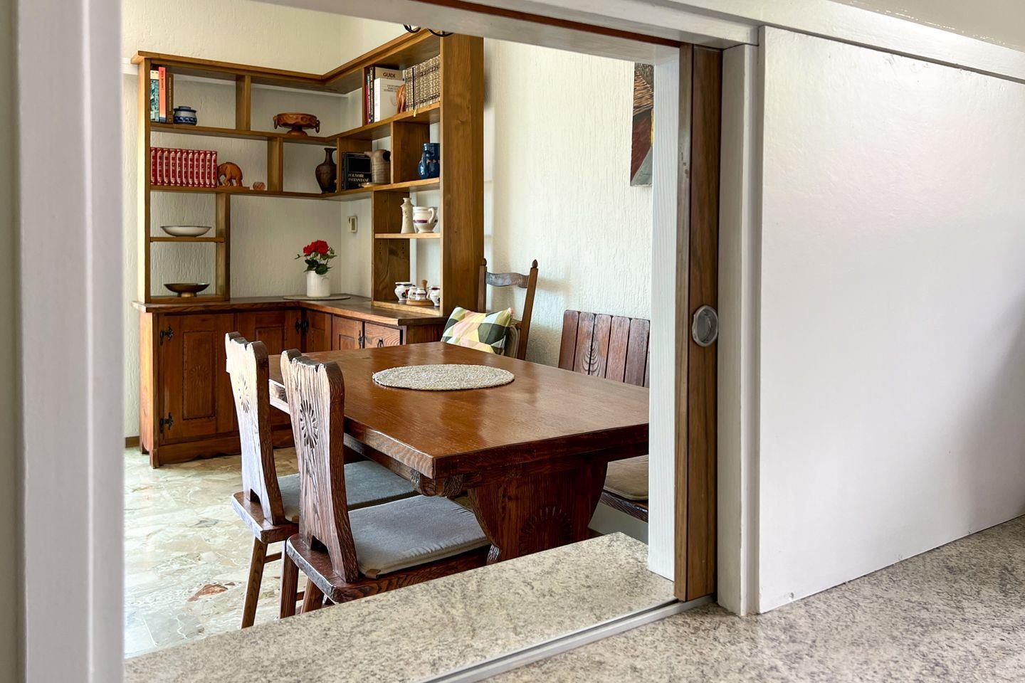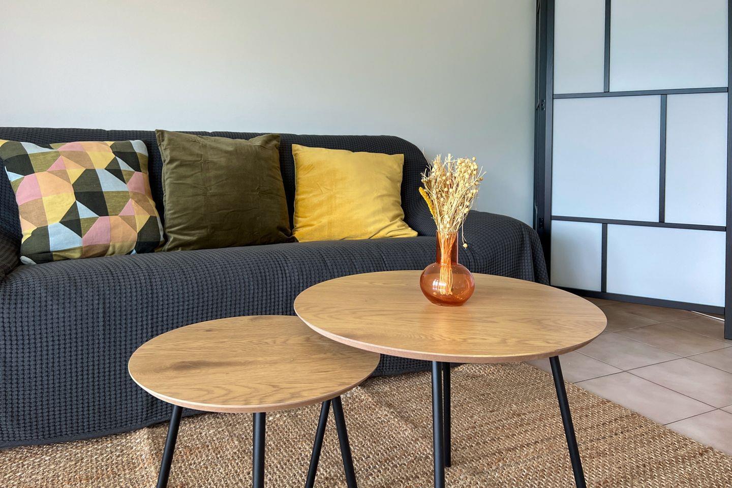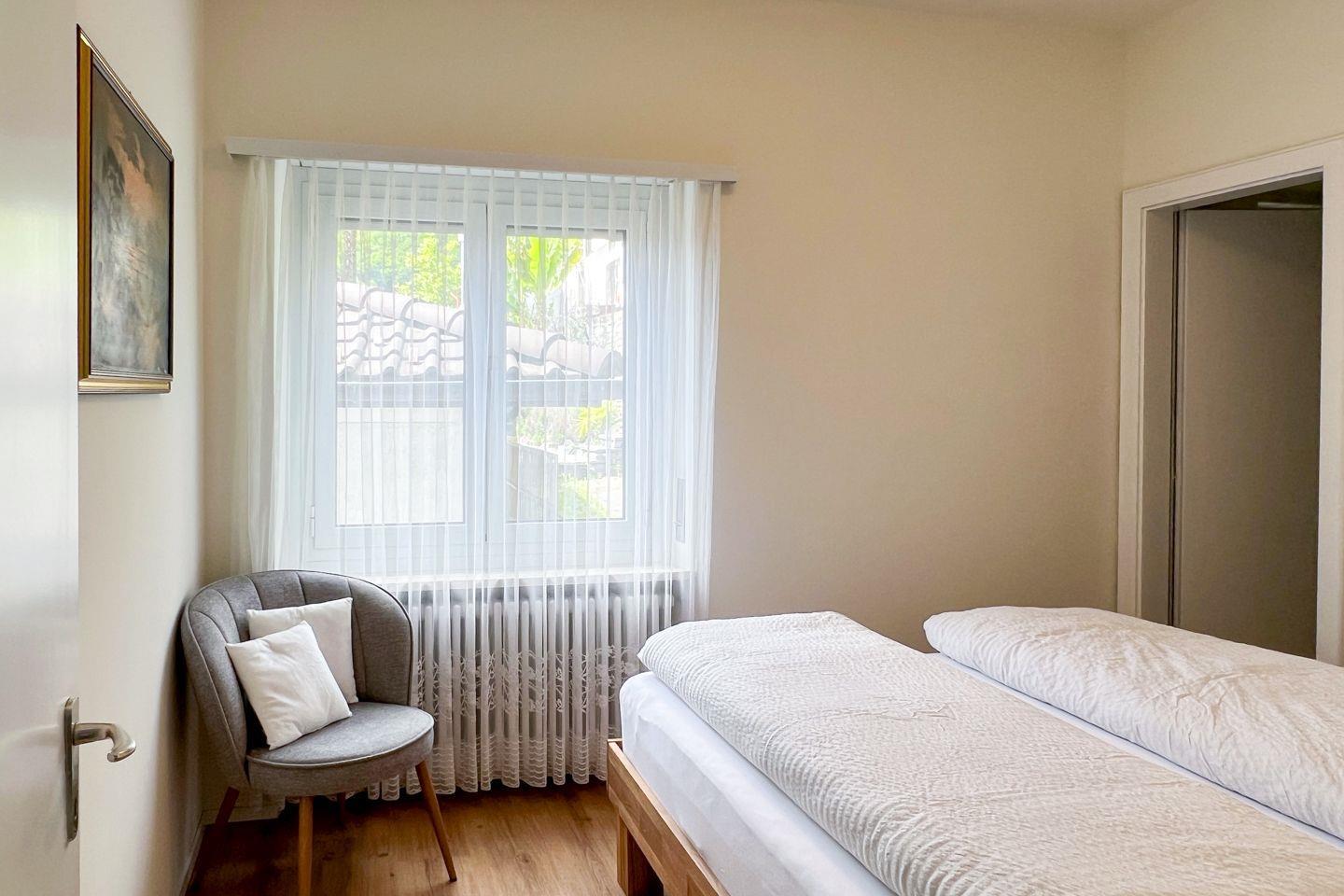 Im ersten Stock liegt der offene Wohn- und Essbereich mit einer grossen Couch und angrenzender Terrasse. Vom Wohnzimmer aus erreicht man die Küche und ein kleines Schlafzimmer mit Doppelbett. Im Erdgeschoss befindet sich ein weiteres, grösseres Schlafzimmer mit zwei Einzelbetten sowie ein Badezimmer und ein Balkon mit Blick ins Grüne. Damit eignet sich das Casa Fior di Loto ideal für Ferien im Kreis der Familie oder mit Freunden.