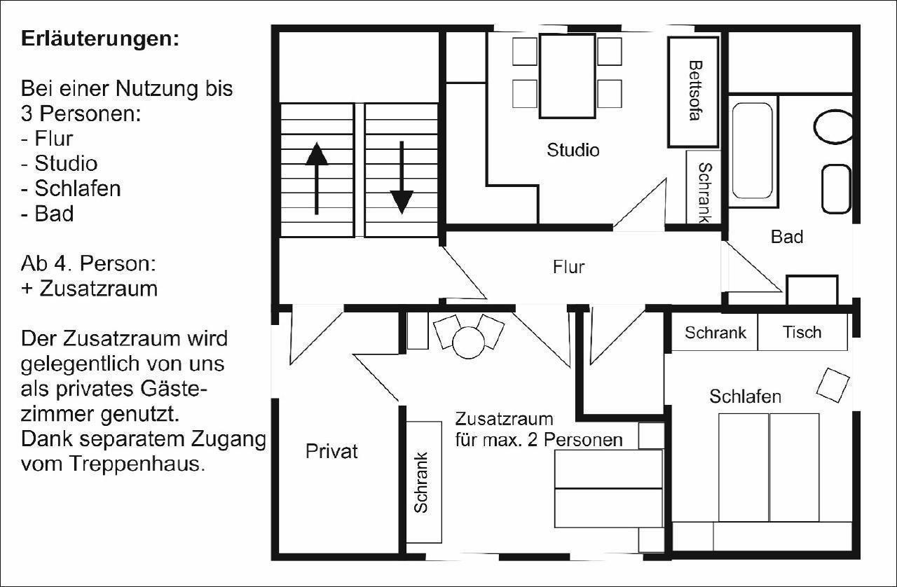 - Das oberste Stockwerk steht während Ihres Aufenthalts nur Ihnen zur Verfügung.
