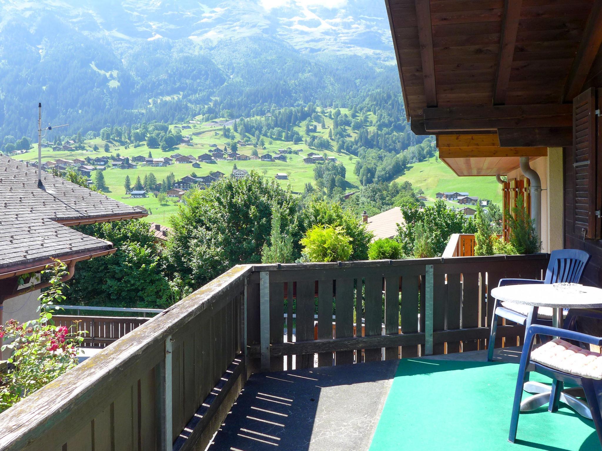 2-Zimmer-Wohnung 40 m2 im 2. Stock, Südlage. Teilweise abgeschrägt, zweckmässig und gemütlich eingerichtet: abgeschrägtes Wohn-/Esszimmer mit Sat-TV. Ausgang zum Balkon. 1 Zimmer mit 2 Betten (80 cm, Länge 200 cm). Offene Küche (3 Kochplatten, Backofen, elektrische Kaffeemaschine). Bad/WC. Balkon, Ostlage. Balkonmöbel. Schöne Sicht auf die Berge und Eigernordwand. Parkplatz beim Haus. Bitte beachten: Nichtraucher-Unterkunft. Eigener Eingang, Feuerlöscher.