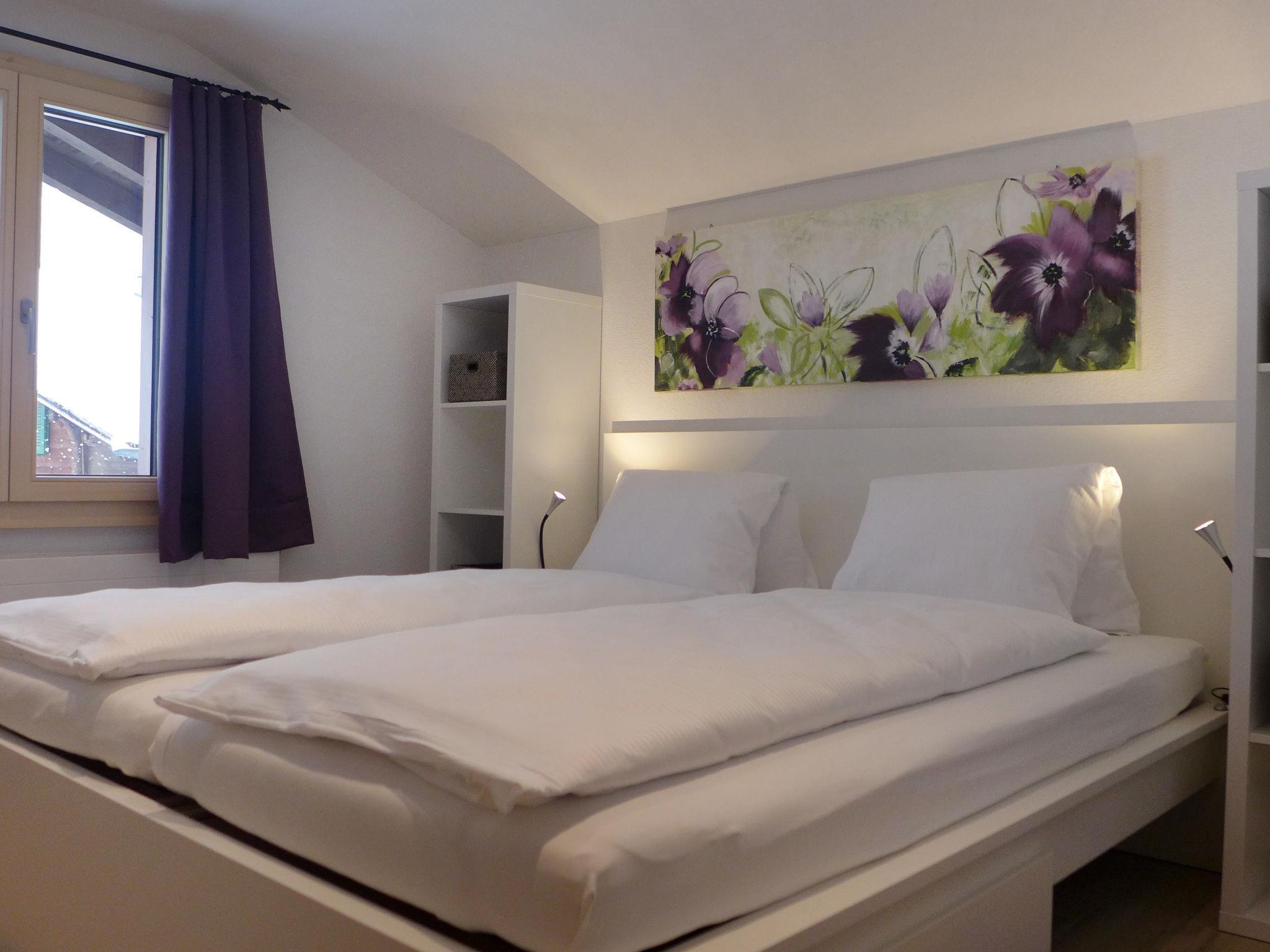 2-Zimmer-Wohnung 50 m2 im 1. Stock, Südlage. Vollständig renoviert im Jahre 2021, modern und gemütlich eingerichtet: Wohn-/Esszimmer mit Kabel-TV (Flachbildschirm). 1 Doppelzimmer (2 x 90 cm, Länge 200 cm). Offene Küche (Backofen, Geschirrspüler, 4 Glaskeramikplatten, Toaster, Wasserkocher, elektrische Kaffeemaschine, Kapseln für die Kaffeemaschine (Nespresso) extra, Racletteofen, Fondue Set (Käse)). Dusche/WC. Natursteinboden. Eingeschränkte Sicht auf die Berge. Zur Verfügung: Internet (Wireless LAN, gratis). Parkplatz beim Haus. Bitte beachten: eigener Eingang.