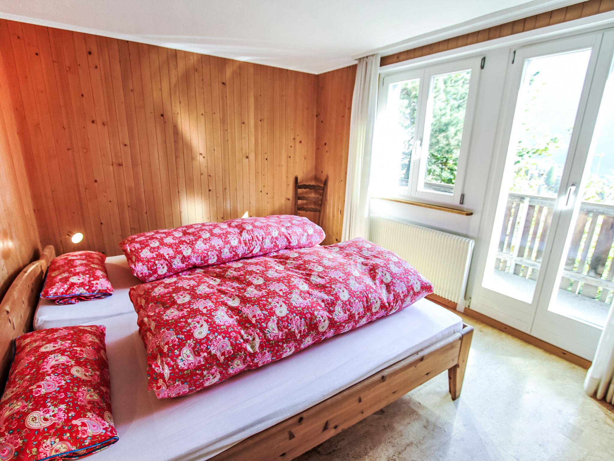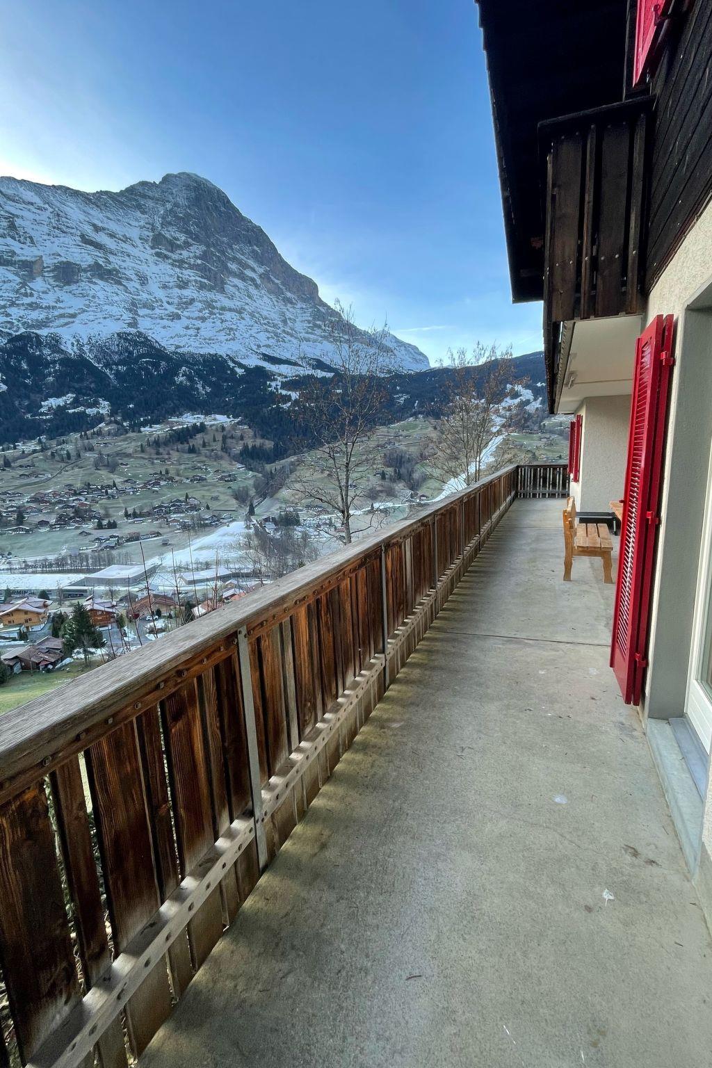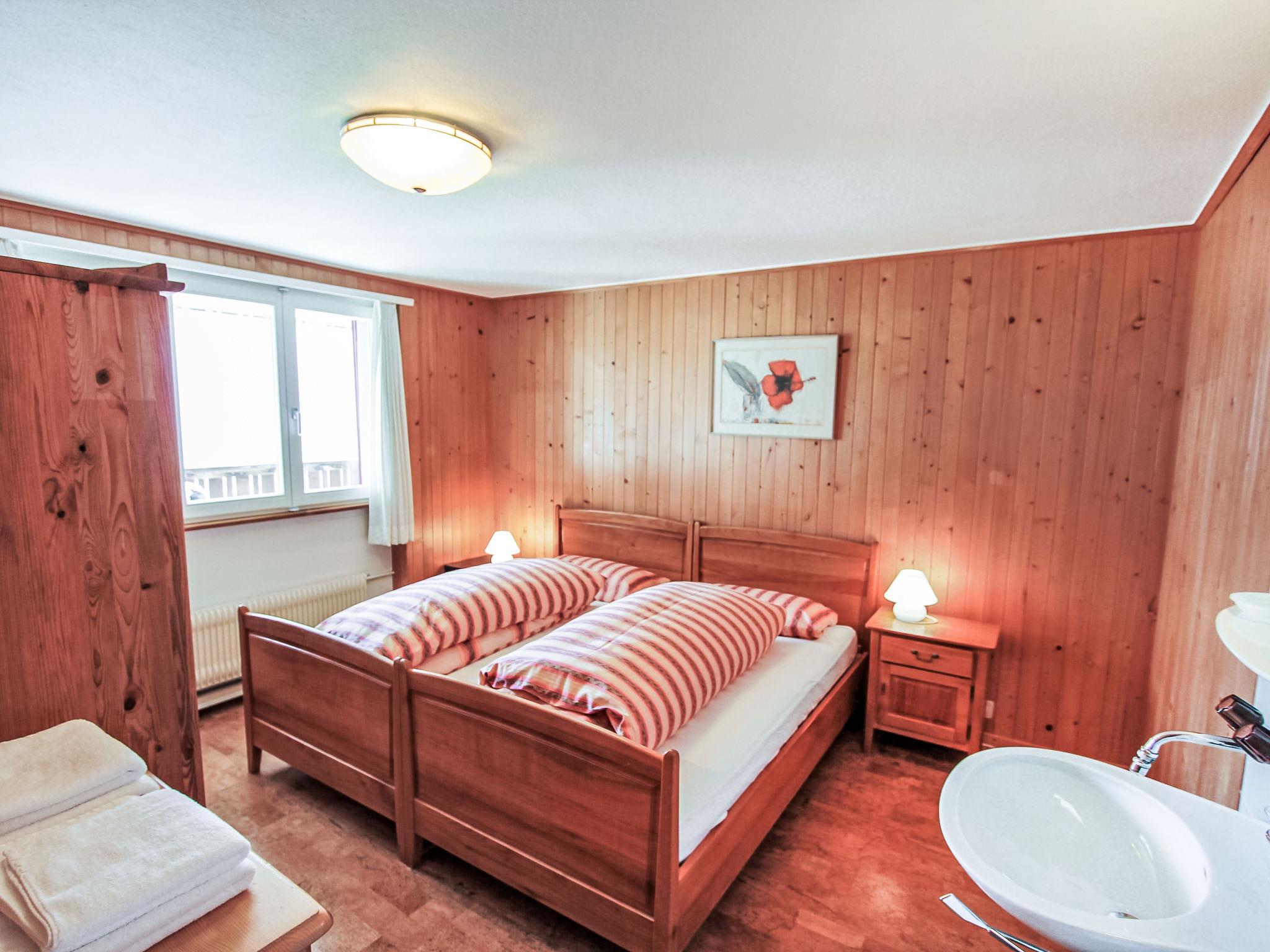 4-Zimmer-Wohnung 100 m2, im erhöhten Erdgeschoss, Südostlage. Gemütlich eingerichtet: Wohn-/Esszimmer mit offenem Kamin, Digital-TV, Stereoanlage und DVD. Ausgang zur Terrasse, Richtung Süden und Richtung Westen. 2 Zimmer, jedes Zimmer mit 2 Betten (90 cm, Länge 200 cm). 1 Zimmer mit 1 x 2 Etagenbetten (90 cm, Länge 200 cm). Küche 20 m2 (Backofen, Geschirrspüler, 4 Glaskeramikplatten, Toaster, Wasserkocher, Mikrowelle, elektrische Kaffeemaschine, Racletteofen, Fondue Set (Käse)) mit Durchreiche. Bad/WC, Dusche, sep. WC. Parkettboden, Natursteinboden. Grosse Terrasse 30 m2, Südlage und Westlage. Balkonmöbel. Herrliche Sicht auf die Berge, das Tal und Wetterhorn und Eigernordwand. Zur Verfügung: Waschmaschine, Wäschetrockner, Holz (extra). Internet (WLAN, gratis). Parkplatz (1 Auto) beim Haus. Bitte beachten: Nichtraucher-Unterkunft. Eigener Eingang, Feuerlöscher.