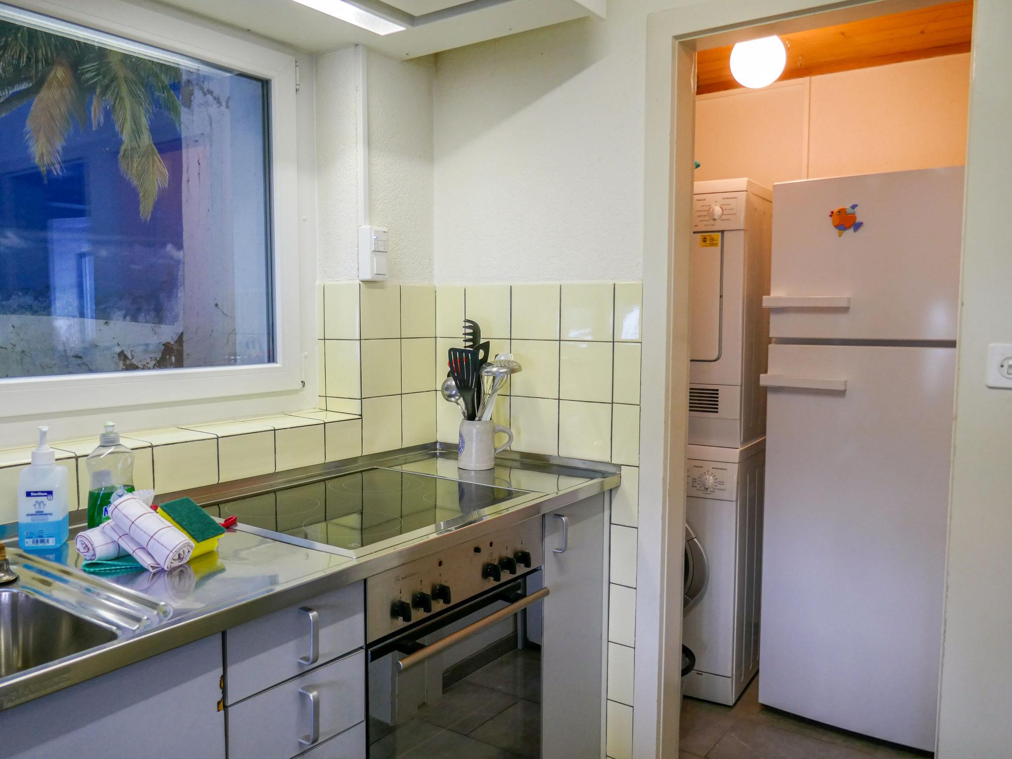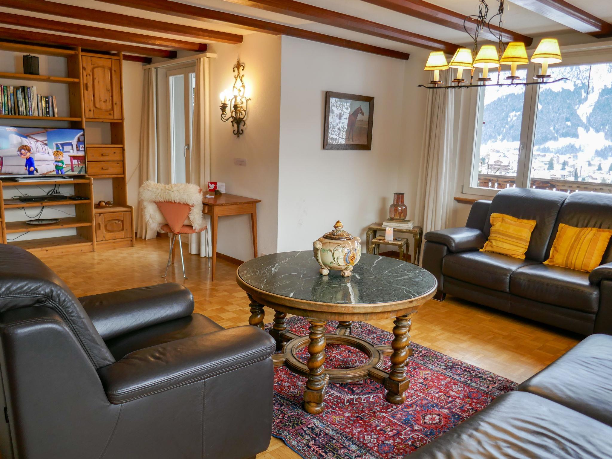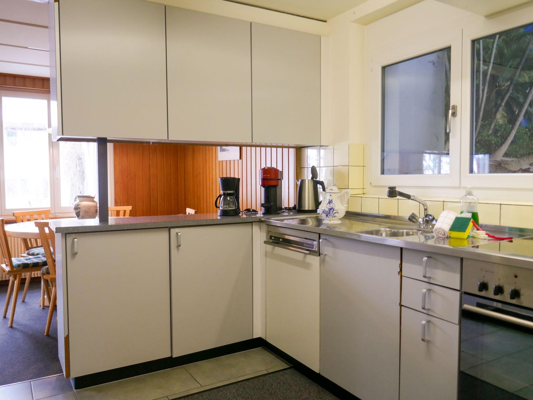 4-Zimmer-Wohnung 100 m2, im erhöhten Erdgeschoss, Südostlage. Gemütlich eingerichtet: Wohn-/Esszimmer mit offenem Kamin, Digital-TV, Stereoanlage und DVD. Ausgang zur Terrasse, Richtung Süden und Richtung Westen. 2 Zimmer, jedes Zimmer mit 2 Betten (90 cm, Länge 200 cm). 1 Zimmer mit 1 x 2 Etagenbetten (90 cm, Länge 200 cm). Küche 20 m2 (Backofen, Geschirrspüler, 4 Glaskeramikplatten, Toaster, Wasserkocher, Mikrowelle, elektrische Kaffeemaschine, Racletteofen, Fondue Set (Käse)) mit Durchreiche. Bad/WC, Dusche, sep. WC. Parkettboden, Natursteinboden. Grosse Terrasse 30 m2, Südlage und Westlage. Balkonmöbel. Herrliche Sicht auf die Berge, das Tal und Wetterhorn und Eigernordwand. Zur Verfügung: Waschmaschine, Wäschetrockner, Holz (extra). Internet (WLAN, gratis). Parkplatz (1 Auto) beim Haus. Bitte beachten: Nichtraucher-Unterkunft. Eigener Eingang, Feuerlöscher.