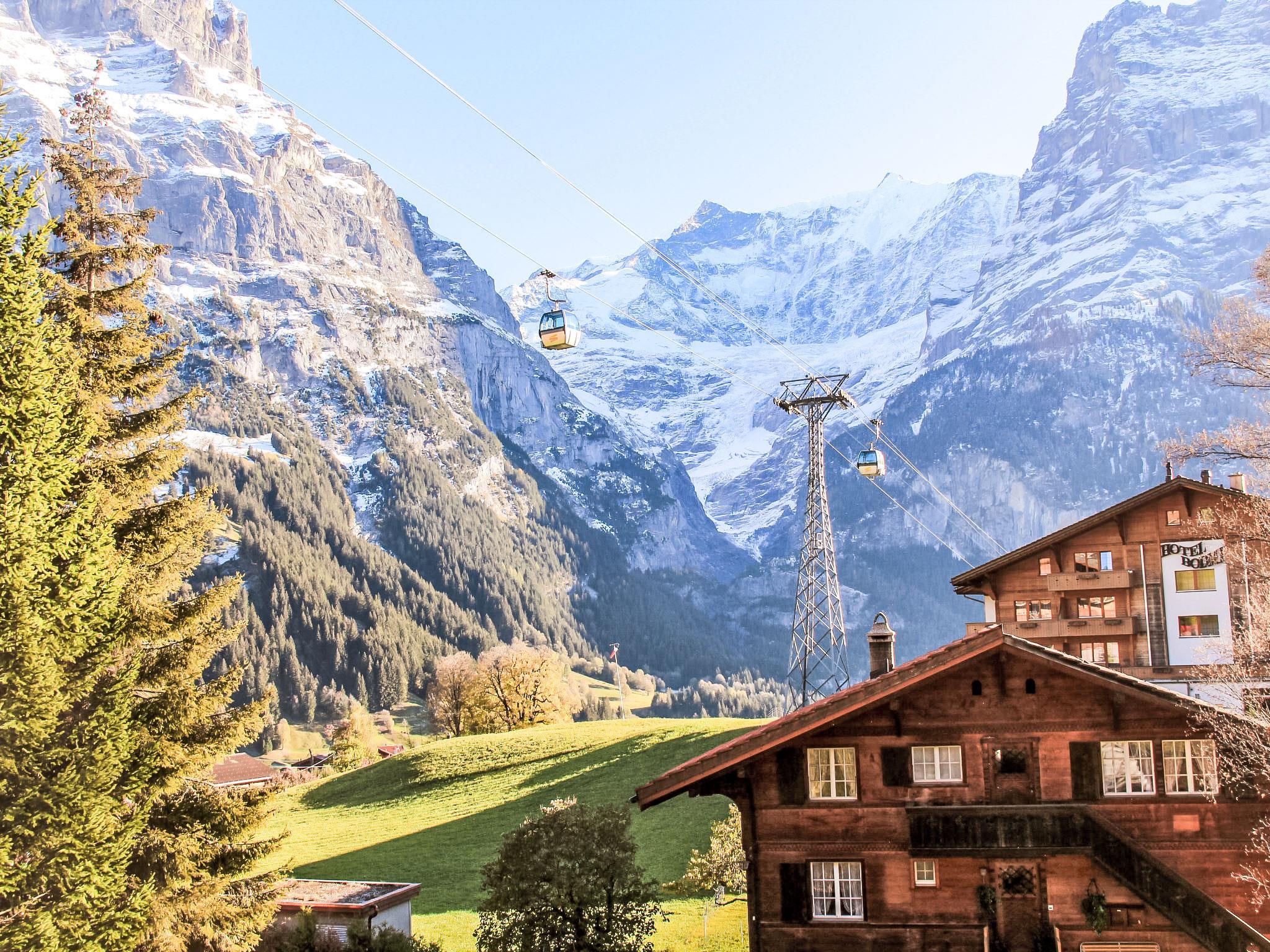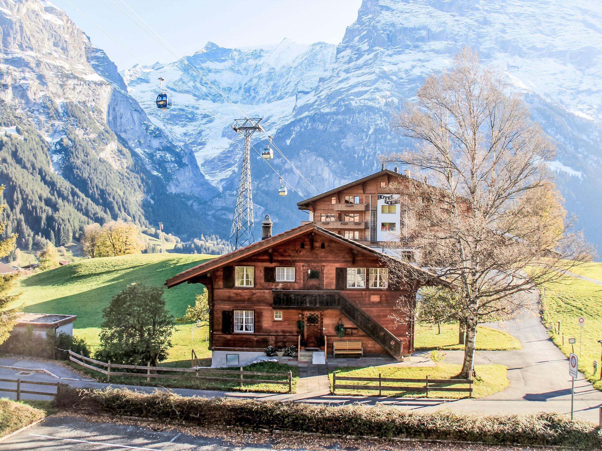 Mehrfamilienhaus "Chalet Bodmisunne". Im Ortsteil Bodmi am Terrassenweg, 2.2 km vom Zentrum, sonnige Lage, Richtung Süden. Im Hause: Einstellraum für Fahrräder, Skiraum, Zentralheizung. Im Winter bitte Schneeketten mitbringen. Treppenweg bis zum Haus. Parkplatz beim Haus. Einkaufszentrum 2.2 km, Restaurant 100 m, Fahrradverleih 2.2 km, Zentrum zu Fuss in 10 Minuten erreichbar, Bushaltestelle "Bodmi" 30 m, Bahnstation "Grindelwald Dorf" 2.8 km, Freibad 3.5 km, Hallenbad 2.7 km. Golfplatz (9 Loch) 3 km, Tennis 3 km, Minigolf 2.5 km, Sportzentrum 2.7 km, Gondelbahn 2.2 km, Skipisten, Skiverleih 100 m, Skibushaltestelle 30 m, Skischule, Ski-Kindergarten 100 m, Langlaufloipe 3 km, Eisfeld 2.7 km, Kinderspielplatz 2.7 km. Bekannte Seen in der Umgebung sind gut erreichbar: Thuner-/Brienzersee 24 km. Bitte beachten: kein Fahrstuhl vorhanden. Babyausstattung auf Anfrage. Gratis Skibus. Bei guter Schneelage Zufahrt mit den Skiern bis zum Haus.