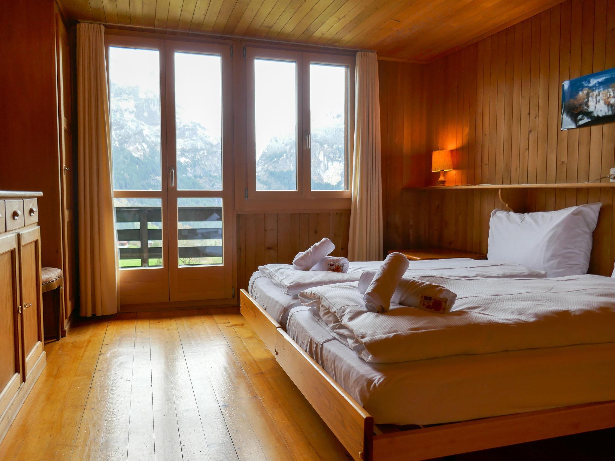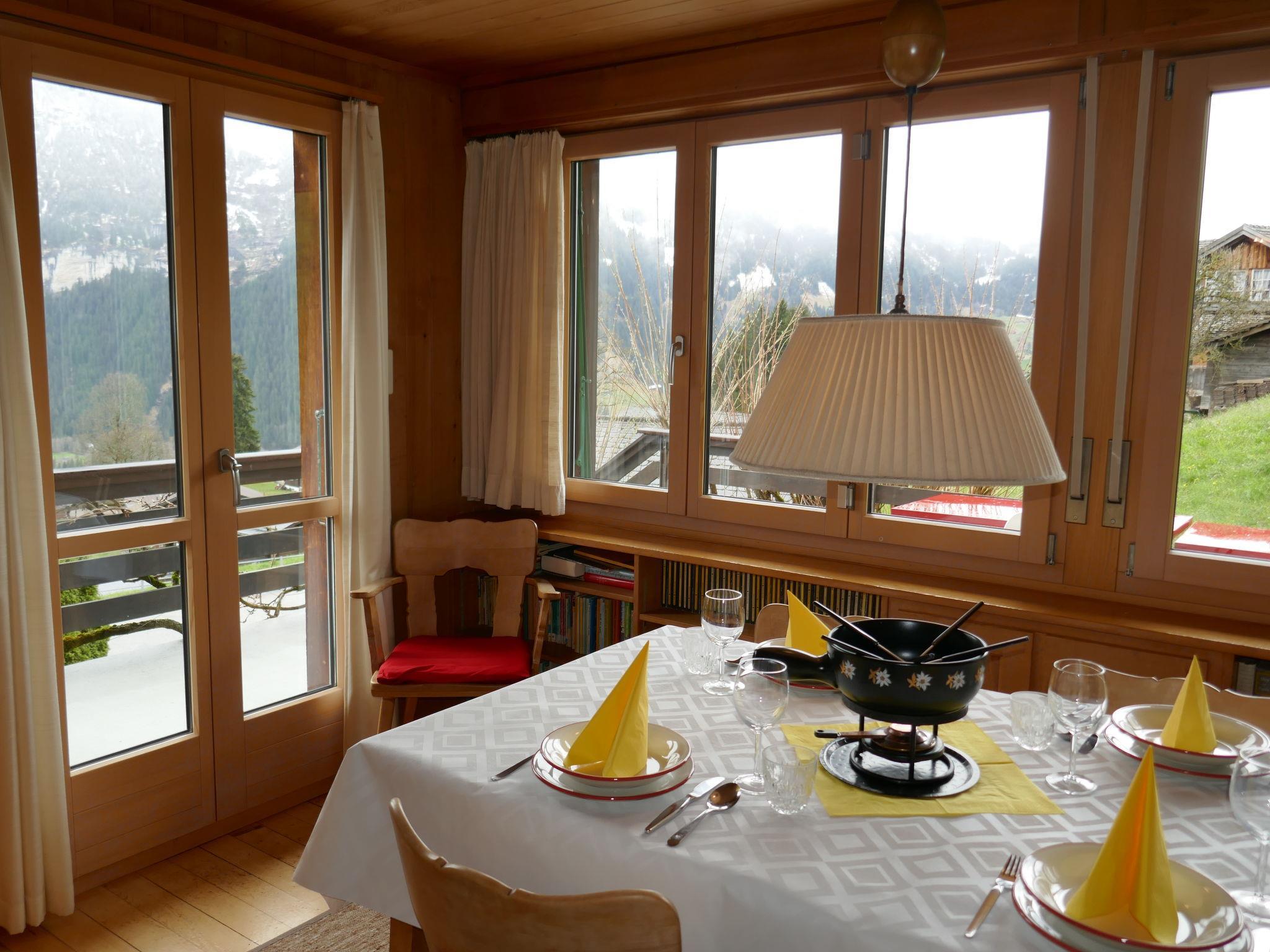 Altes, schönes, rustikales Chalet "Chalet Pitschun", auf 3 Stockwerken, umgeben von Wiesen. Im Ortsteil Am Kreuzweg, 1.5 km vom Zentrum, sonnige Lage, Richtung Süden. Zur Alleinbenutzung: naturbelassenes Grundstück. Gartenmöbel. Im Hause: Einstellraum für Fahrräder, Skiraum, Zentralheizung. Einkaufsservice vor Anreise möglich. Im Winter bitte Schneeketten mitbringen. Treppenweg bis zum Haus. Parkplatz, Einzelgarage beim Haus. Lebensmittelgeschäft 1.5 km, Einkaufszentrum 1.5 km, Restaurant 400 m, Bäckerei 1.2 km, Fahrradverleih 1.5 km, Zentrum zu Fuss in 15 Minuten erreichbar, Bushaltestelle "Kreuzweg" 100 m, Bahnstation "Grindelwald Dorf" 2.1 km, Freibad 3.5 km, Hallenbad 2 km. Golfplatz (9 Loch) 3.8 km, Tennis 2 km, Minigolf 1.7 km, Sportzentrum 2 km, Wanderwege ab Haus 20 m, Bergeisenbahn 2.1 km, Skiverleih 400 m, Skibushaltestelle 100 m, Skischule, Kinderskischule 400 m, Ski-Kindergarten 200 m, Langlaufloipe 2 km, Kinderspielplatz 2 km. Bekannte Seen in der Umgebung sind gut erreichbar: Thuner-/Brienzersee 20 km. Bitte beachten: kein Fahrstuhl vorhanden. Gratis Skibus. Der gratis Skibus fährt zum Skigebiet kleine Scheidegg / Männlichen / First.