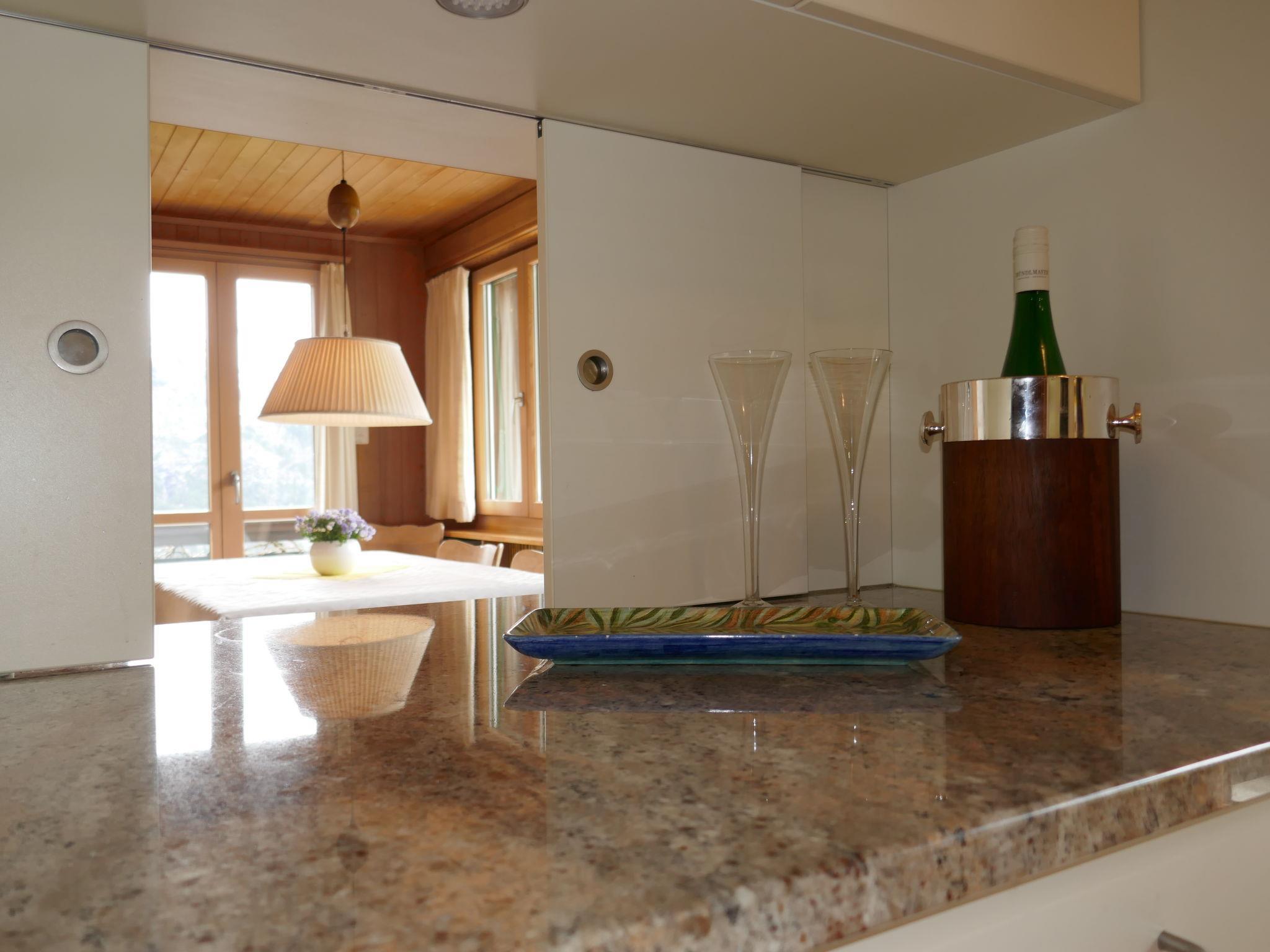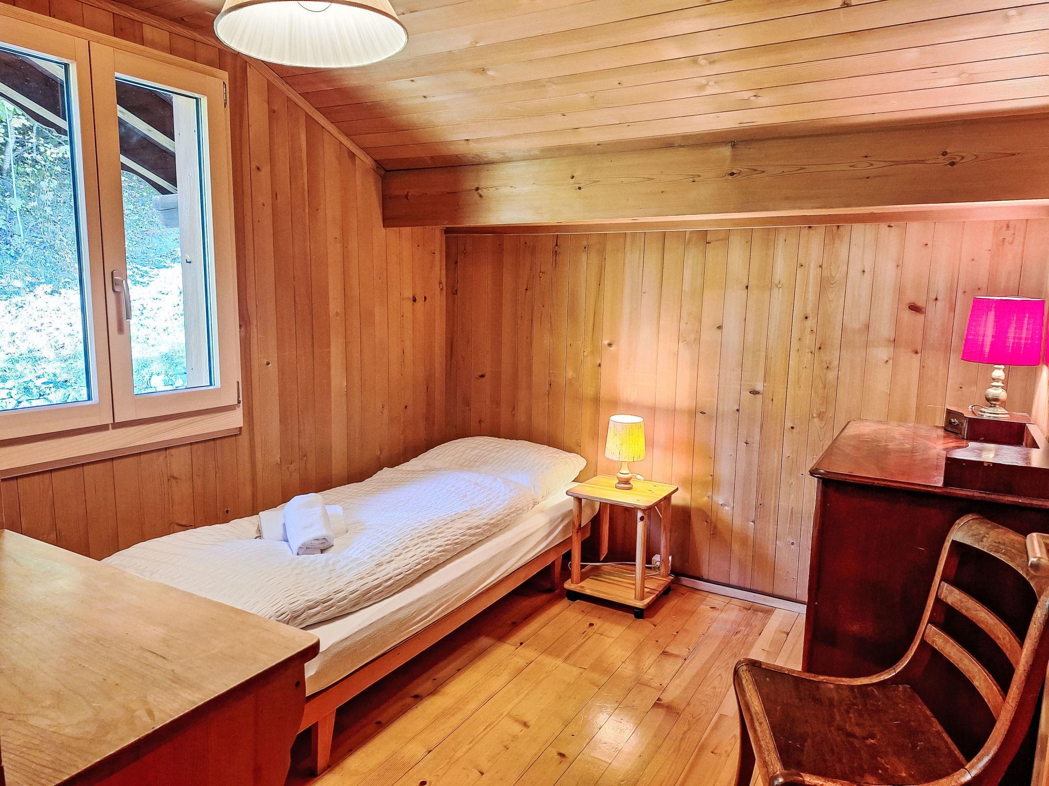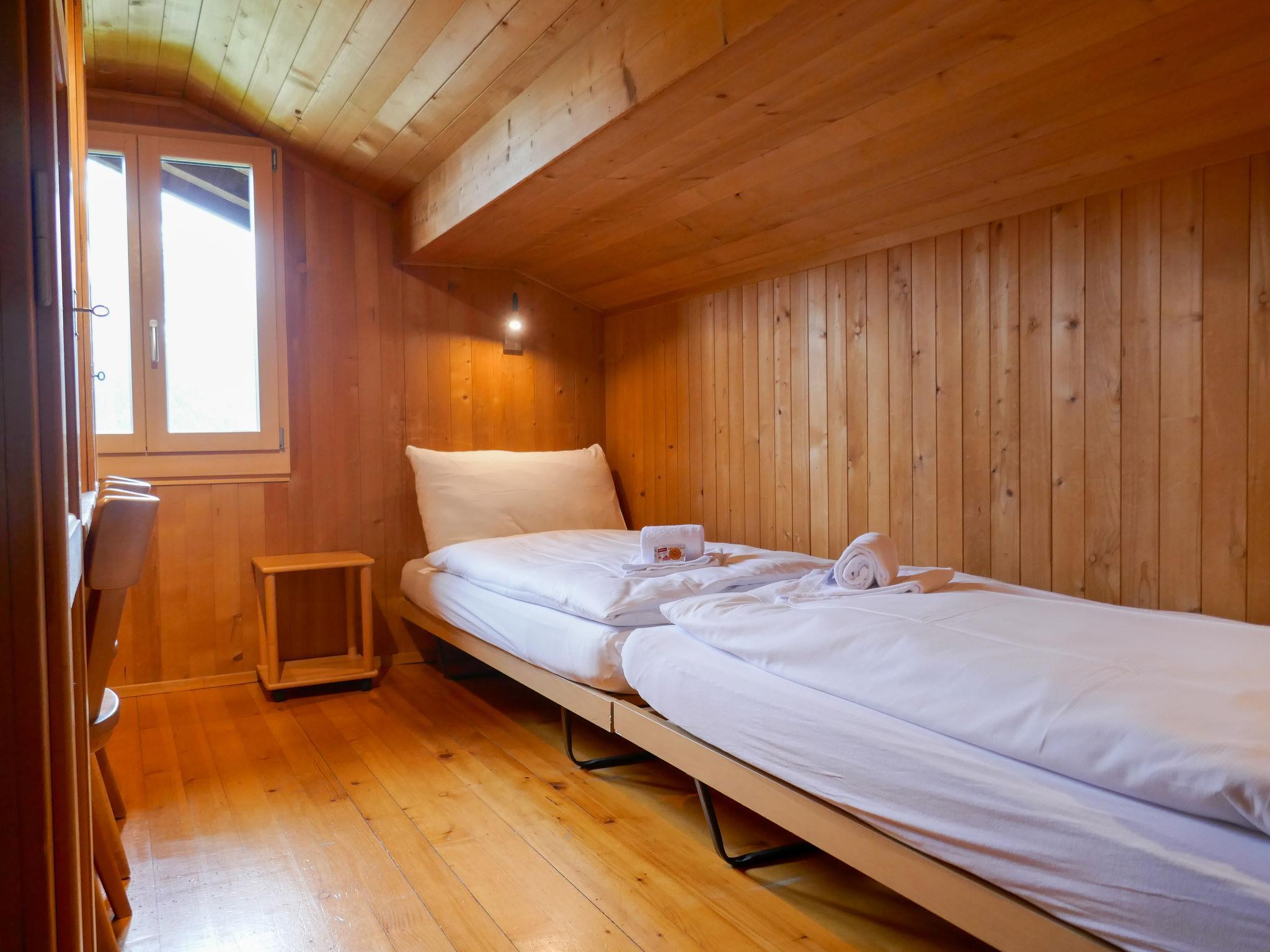 8-Zimmer-Chalet 200 m2 auf 3 Stockwerken, Südlage. Gemütlich und mit viel Holz eingerichtet: Wohnzimmer mit offenem Kamin und Digital-TV. Esszimmer. Ausgang zum Garten. 1 Zimmer mit 2 Betten (90 cm, Länge 200 cm), Bad/WC. Ausgang zum Balkon. Eingang mit offenem Kamin (nur Deko), Essecke. Küche (Backofen, Geschirrspüler, 4 Glaskeramikplatten, Mikrowelle, elektrische Kaffeemaschine, Kapseln für die Kaffeemaschine (Nespresso) extra, Racletteofen, Fondue Set (Käse)). Sep. WC. Unteres Geschoss: Gepäckraum mit sep. WC. Obergeschoss: 1 abgeschrägtes Kinderzimmer mit 1 Bett (90 cm, Länge 190 cm). 1 abgeschrägtes Zimmer mit 2 Betten (90 cm, Länge 200 cm). Ausgang zum Balkon. 1 Zimmer mit 2 Betten (90 cm, Länge 200 cm). Ausgang zum Balkon. 1 abgeschrägtes Zimmer mit 2 Betten (90 cm, Länge 200 cm). Dusche/WC. Holzdielenboden. Herrliche Sicht auf die Berge und Eigernordwand. Zur Verfügung: Internet (Wireless LAN, gratis). Parkplatz (1 Auto), Garage (1 Auto) beim Haus. Bitte beachten: Nichtraucher-Unterkunft. Maximal 1 Haustier/Hund erlaubt. Feuerlöscher.