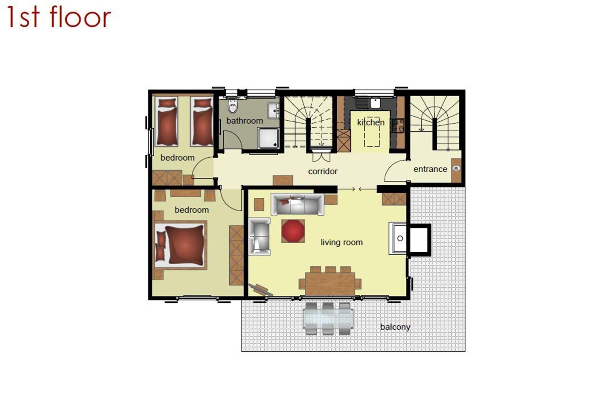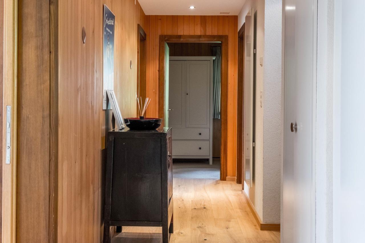 Auf 100m2 und zwei Etagen bietet die 4.5-Zimmerwohnung im Dachgeschoss alles für entspannte Ferien: ein Schlafzimmer mit Doppelbett, zwei Schlafzimmer mit je zwei Einzelbetten und zwei Badezimmer mit Dusche und WC. Die Wohnung hat eine moderne Küche und ein gemütliches Wohn- und Esszimmer mit Cheminée. Auf dem grossen Balkon geniessen Sie sonnige Stunden mit Blick auf die Bergwelt.