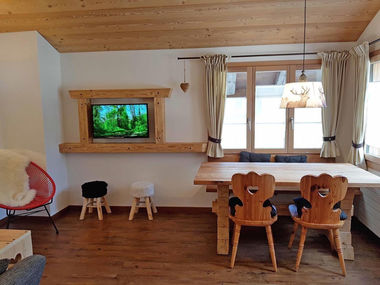 Im Inneren erwarten Sie moderner Komfort und alpine Gemütlichkeit. Die Wohnung verfügt über eine komplett ausgestattete Küche mit Ess- und Wohnraum, ein charmantes Doppelzimmer und eine kleine HEIDI-Galerie mit drei Zusatzbetten. Für Ihr Wohlbefinden ist das Bad mit einer Badewanne/WC ausgestattet, und zur Unterhaltung bieten wir ein TV sowie gratis W-LAN Zugang.