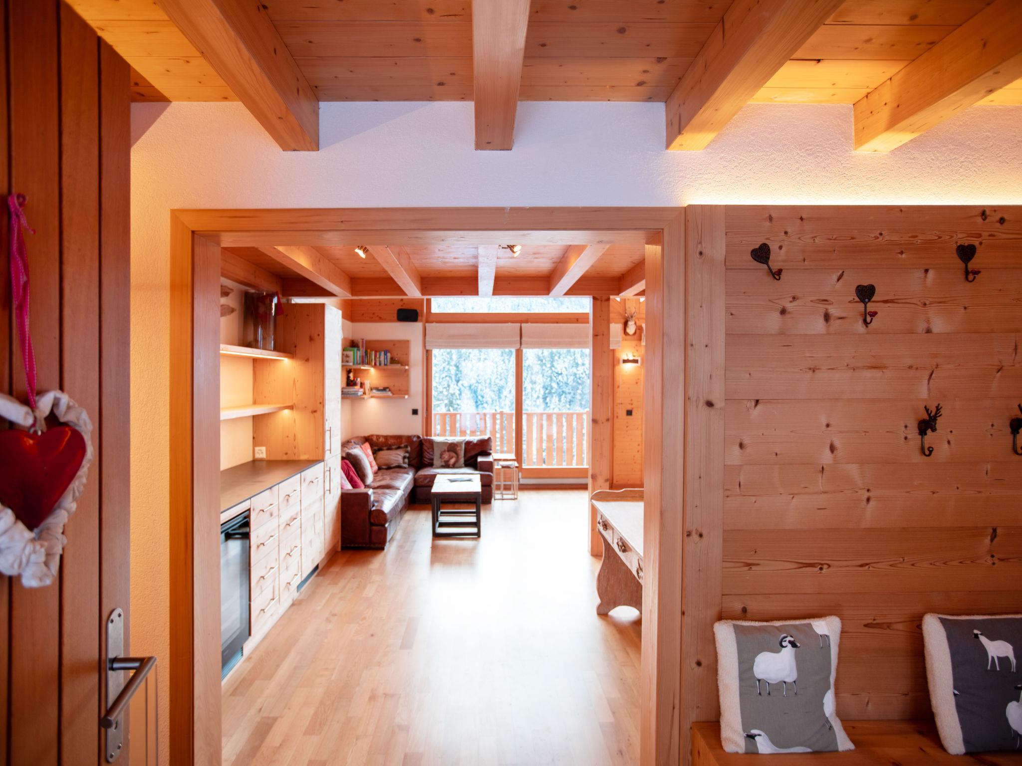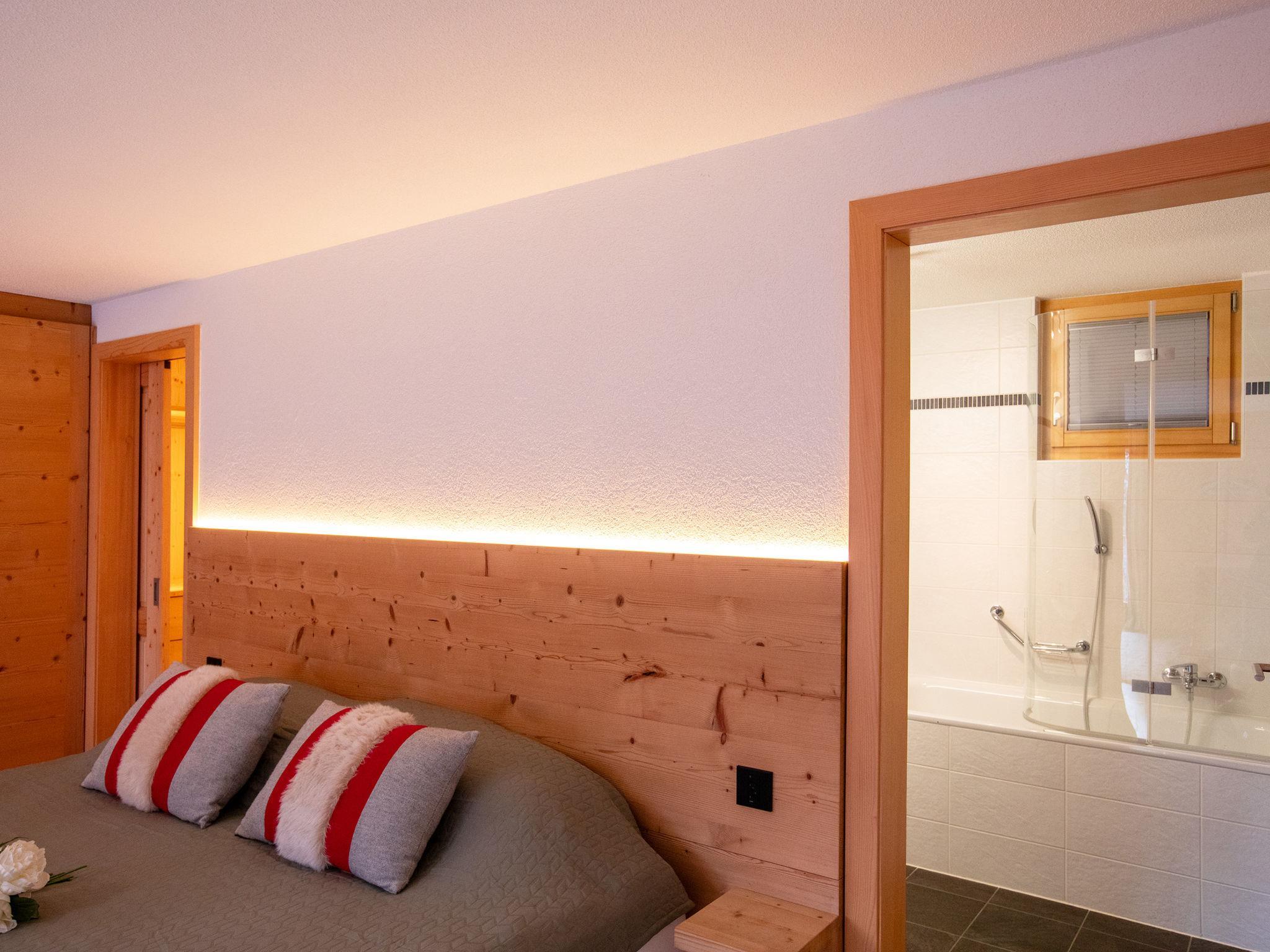 "Chalet Les Pars", 5-Zimmer-Chalet 170 m2 auf 3 Stockwerken, Südlage. Objekt geeignet für 7 Erwachsene + 1 Kind. Schön und modern eingerichtet: Wohn-/Esszimmer mit offenem Kamin und Esstisch. Ausgang zum Balkon, zur Terrasse, Richtung Süden und Richtung Osten. Offene Küche (Backofen, Geschirrspüler, Gasherd, 5 Flammen, Toaster, Wasserkocher, Mikrowelle, Tiefkühler, elektrische Kaffeemaschine, Kapseln für die Kaffeemaschine (Nespresso) extra, Racletteofen, Fondue Set (Käse)). Ausgang zum Balkon, Richtung Süden. Dusche/WC. Unteres Geschoss: 1 Zimmer mit begehbarem Kleiderschrank mit 1 franz. Bett (1 x 180 cm), Bad/WC und Doppelwaschbecken. Ausgang zum Balkon. 1 Zimmer, ohne Schrank mit 1 franz. Bett (1 x 180 cm). Ausgang zum Balkon. 1 Zimmer mit 2 Betten (90 cm). Ausgang zum Balkon. 1 Kinderzimmer, ohne Schrank mit 2 Betten (90 cm, Länge 180 cm). Bad/Dusche/WC, Doppelwaschbecken. Obergeschoss: abgeschrägter, offener Salon mit TV (Flachbildschirm). Balkon, Ostlage, grosse Terrasse, Südlage und Ostlage, Garten. Terrassenmöbel. Schöne Sicht auf die Berge. Zur Verfügung: Waschmaschine, Wäschetrockner, Haartrockner. Internet (WLAN, gratis). Parkplatz (2 Autos). Bitte beachten: Nichtraucher-Unterkunft.