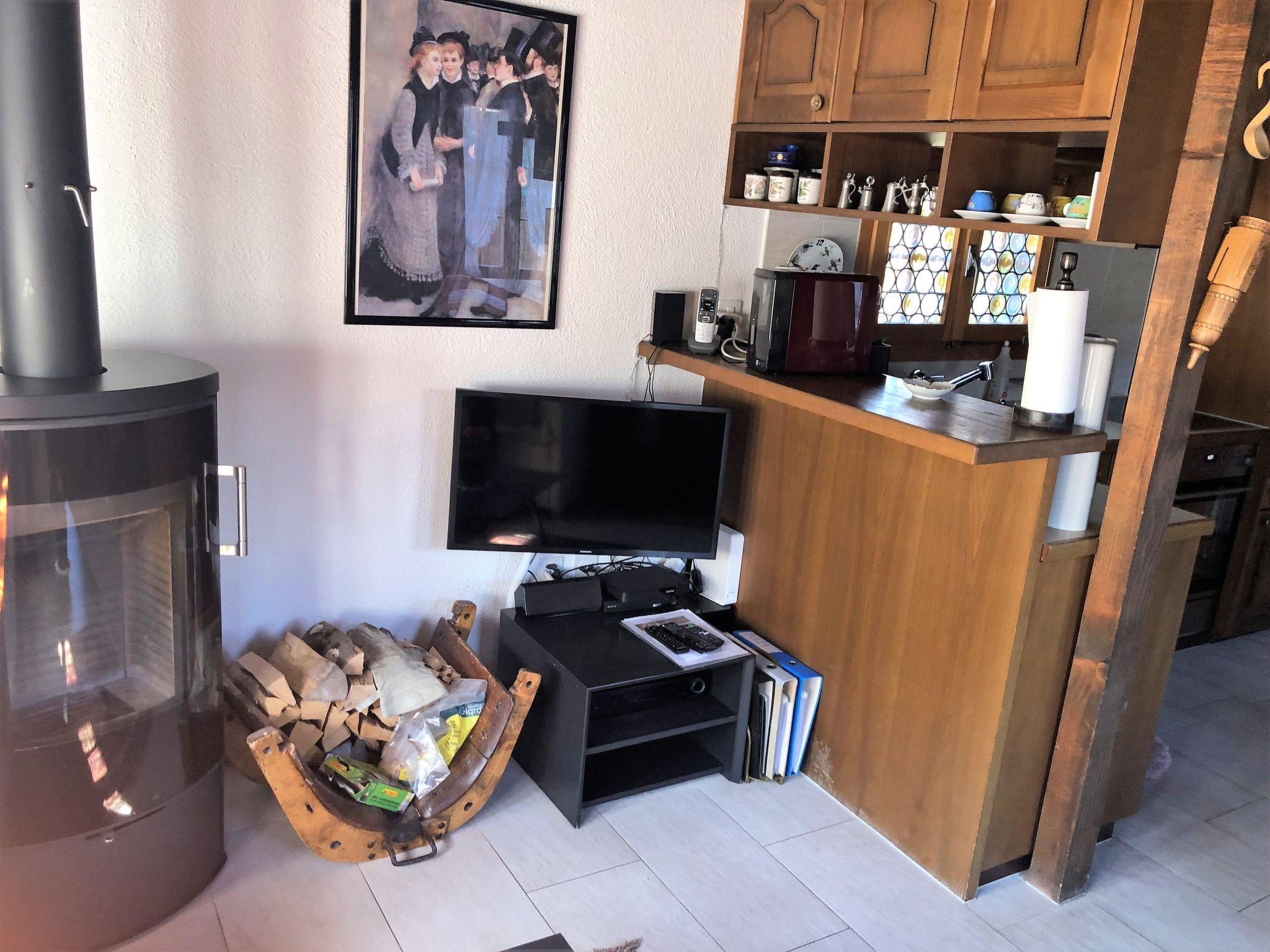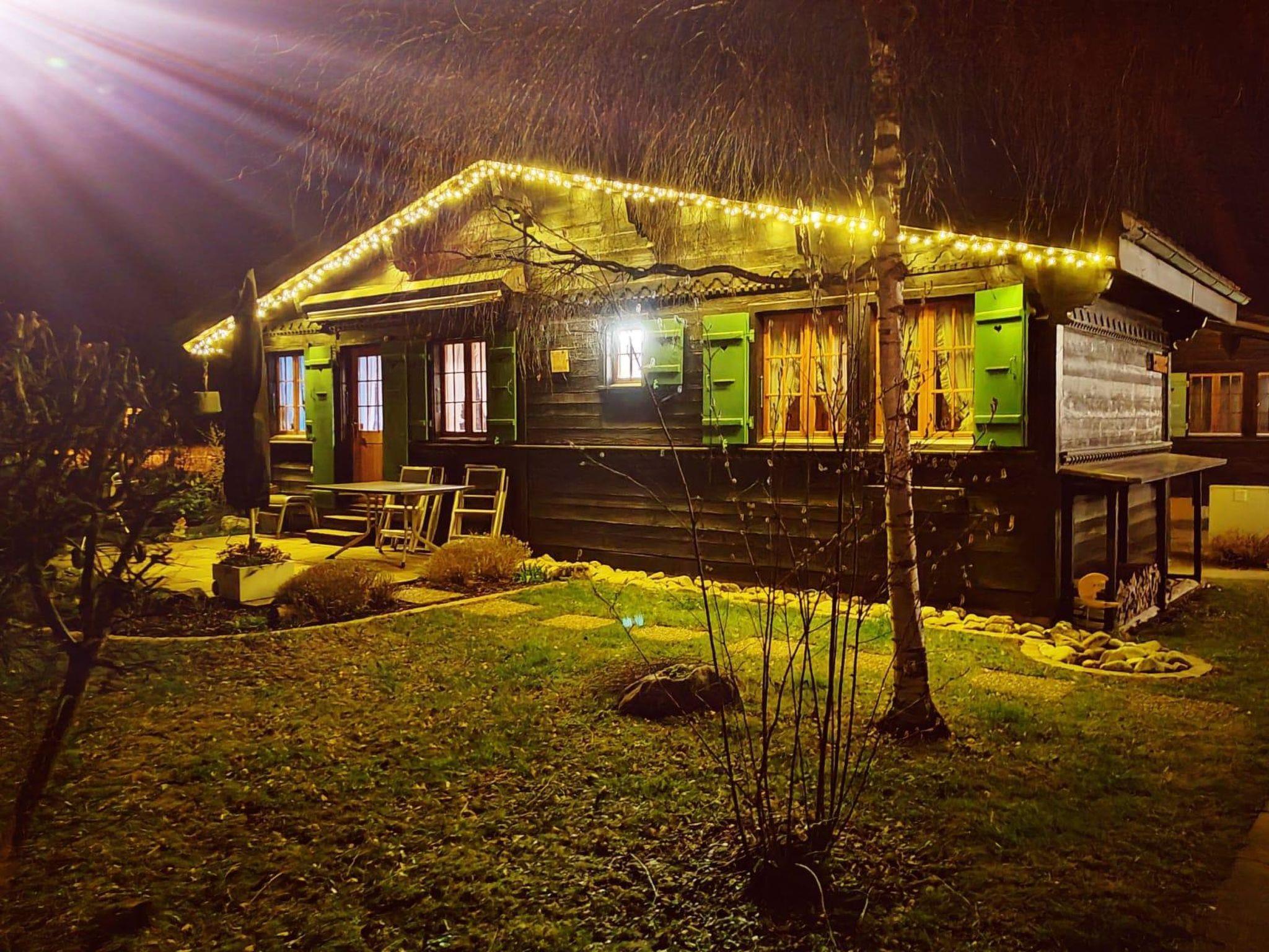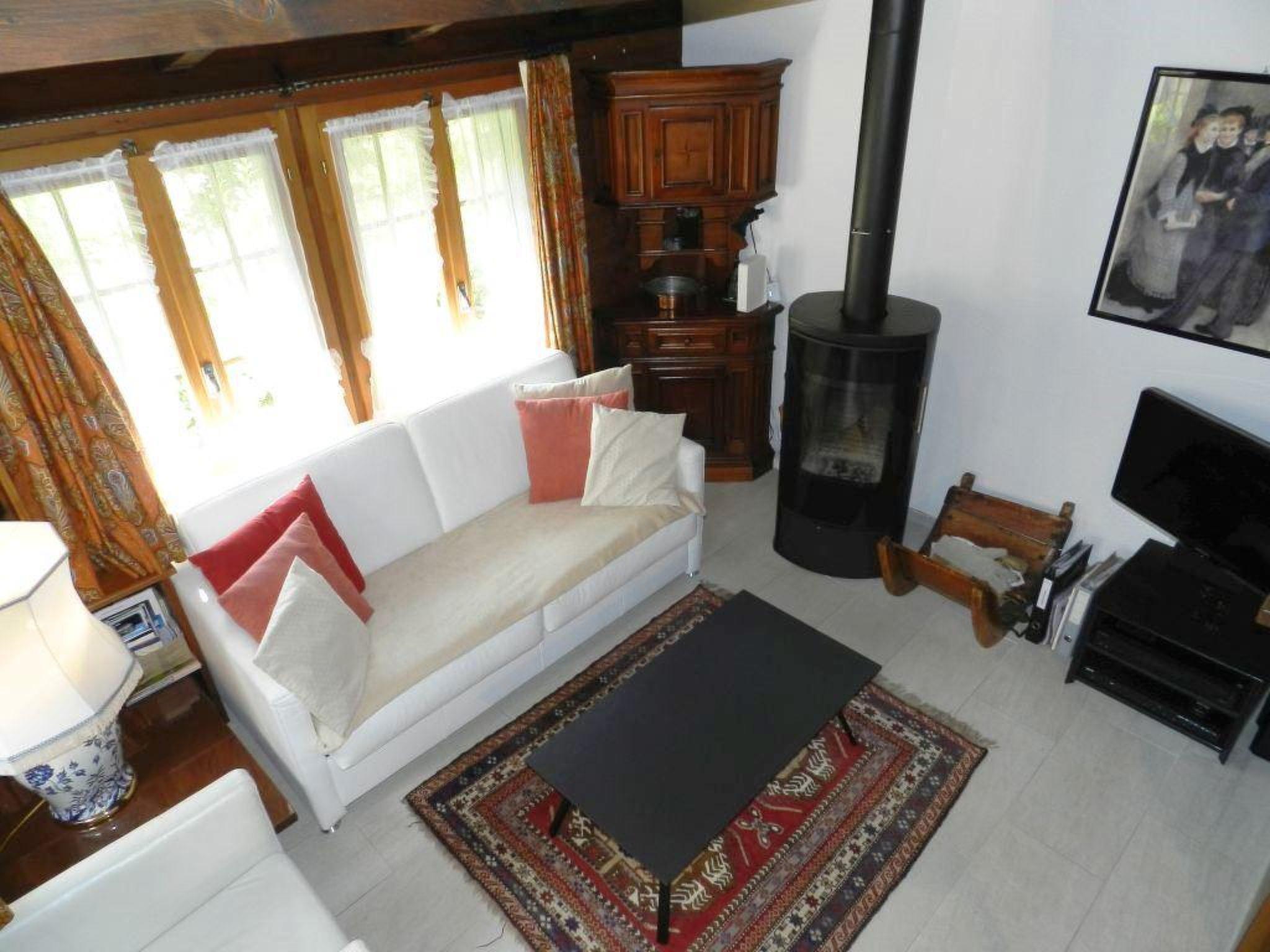 Wohnzimmer mit gemütlicher Sitzecke, Salontisch, Kabel-TV (HD, Flachbildschirm), DVD, Radio, Schwedenofen, elektrische Bodenheizung mit Thermostaten in allen Zimmern und im Essbereich mit offener Küche (Backofen, Kochherd mit 4 Kochplatten, Kühlschrank mit Gefrierfach, Kapsel-Kaffeemaschine (Delizio), Fondue-Set, Raclette-Ofen. Waschmaschine. Kleines Badezimmer mit Dusche/WC. Schlafzimmer mit Doppelbett (140x200cm) und Einbauschrank. WiFi.