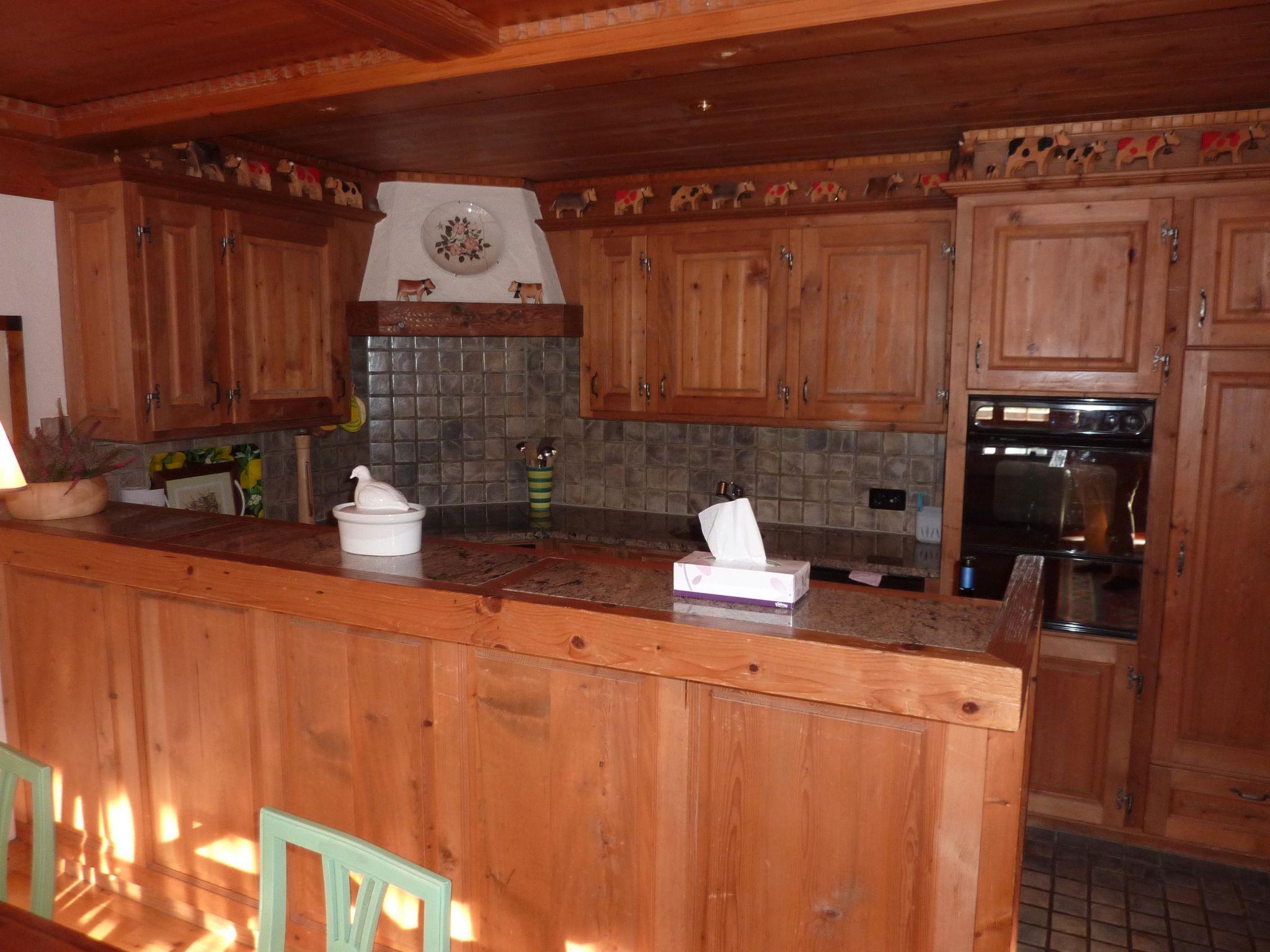 Helles Wohn-/Esszimmer mit offener Küche (u.a. ausgestattet mit Glaskeramikherd und Dampfabzug, Kühlschrank mit Gefrierfach, Backofen, Mikrowelle, Geschirrspüler, Wasserkocher, Kapsel-Kaffeemaschine (Nespresso), Raclette- und Fondue-Set), Esstisch, Sitzgruppe, TV, Radio und DVD-Player. 1 Schlafzimmer mit 2 Einzelbetten (je 90x200cm). 1 Schlafzimmer mit 2 zusammengeschobenen Einzelbetten (je 90x200cm). 1 Schlafzimmer mit 1 Etagenbett (90x200cm). 1 Badezimmer mit Badewanne/WC. 1 Badezimmer mit Dusche/WC. Abstellraum (in Garage). WiFi.