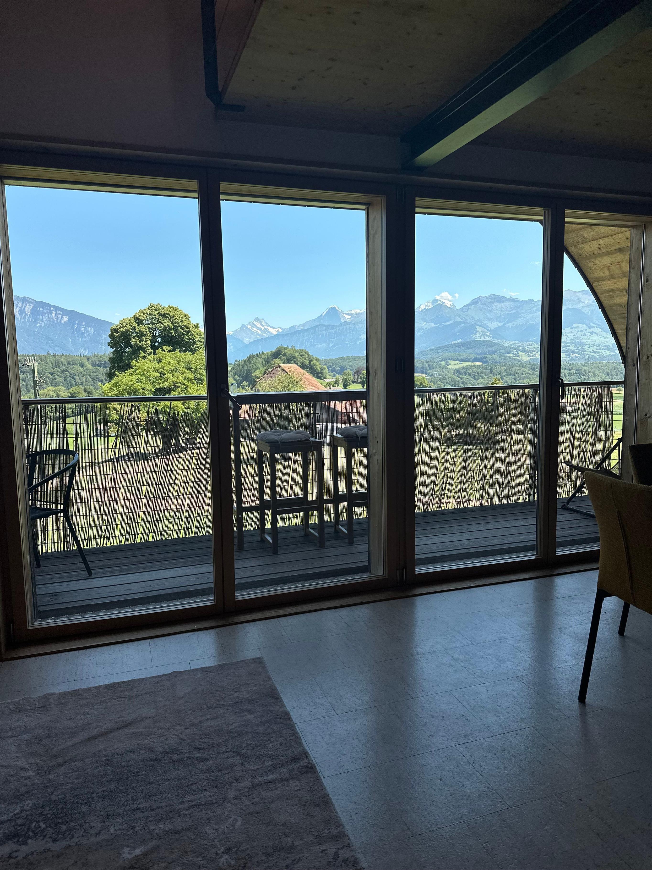 Entdecken Sie Ihr perfektes Urlaubsziel für eine Auszeit vom Alltag: Eine atemberaubende Ferienwohnung mit faszinierendem Bergpanorama, das Sie aus dem Esszimmer und dem Schlafzimmer bewundern können. Die ruhig gelegene Wohnung ist der ideale Ausgangspunkt, um die Umgebung zu erkunden, Wandern zu gehen, Fahrrad zu fahren oder einfach nur die nahegelegenen Highlights wie Interlaken, Thuner See und Spiez zu genießen.