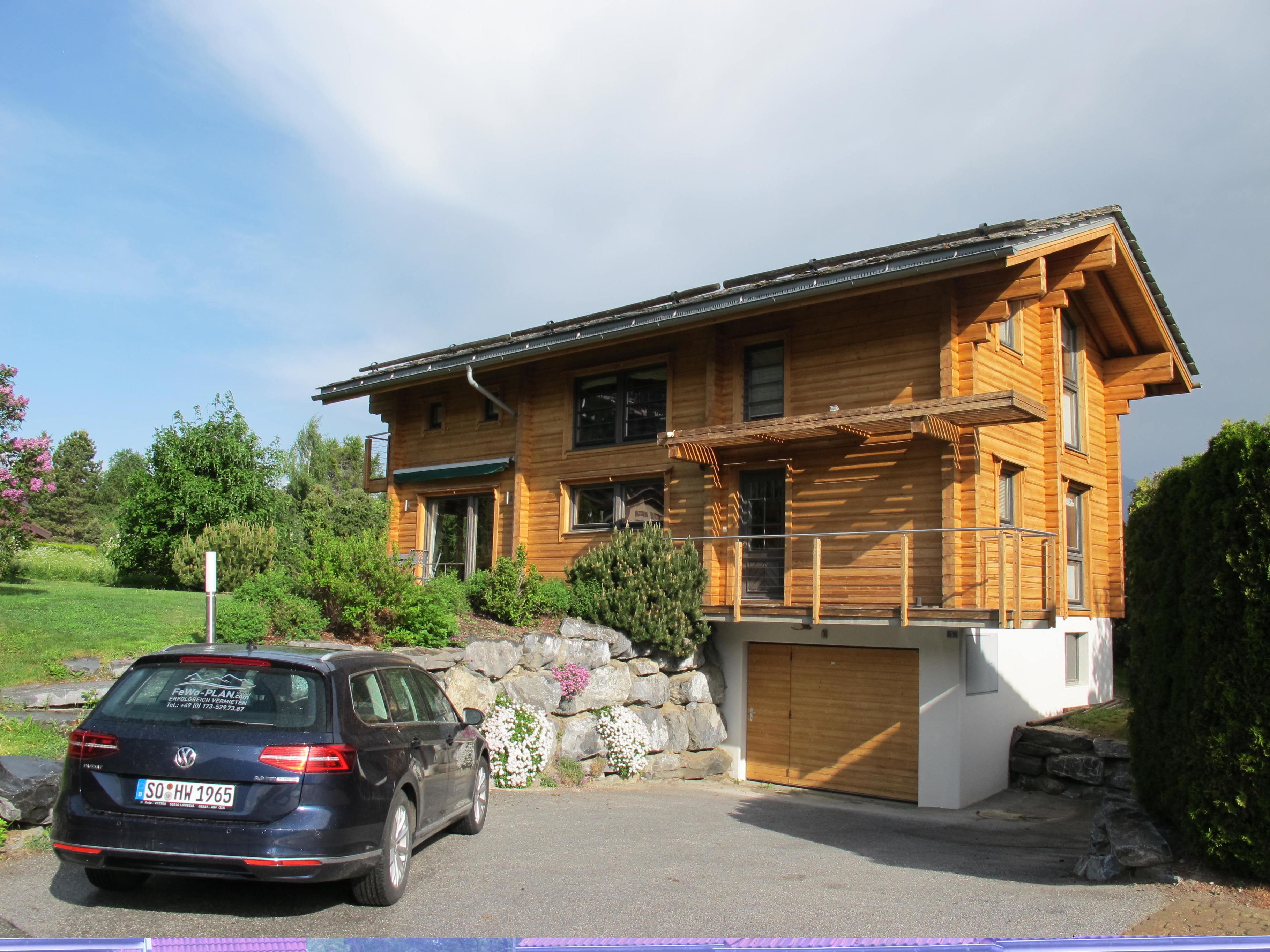 Dieses wunderschöne, massive Holzchalet steht in der sonnigsten Gegend von Nendaz, auf einem großen und nicht umzäunten Gartengrundstück: große Rasen- und Spielwiese, 8 Sonnenliegen, gemauerter Außenkamin/-grill und einer sehr schönen Holzterrasse mit Mobiliar und Markise. Vom Chalet und Grundstück ein phantastischer Blick auf die Berge und hinab bis ins Rhônetal. Garage (elektrische Fernbedienung) mit Platz für 1 PKW und Abstellmöglichkeiten für Ski, Fahrräder, etc.. Waschraum mit Waschmaschine und Trockner. Sauna mit Platz für 4 Personen und ein separater Ruheraum mit Musikanlage und Ruheliegen sowie eine große Eckbadewanne runden das Wellnessangebot ab. Fußbodenheizung. Hochwertige Materialien wurden im Chalet verwendet (u.a. Schiefer- und Dielenfußböden, Schiefer in Bädern und Küche). Als Entertainementelemente sind vorhanden: Kabel-TV, DVD, Stereonanlage mit CD-Player und im ganzen Chalet Intenetempfang als WLAN (kostenlos).