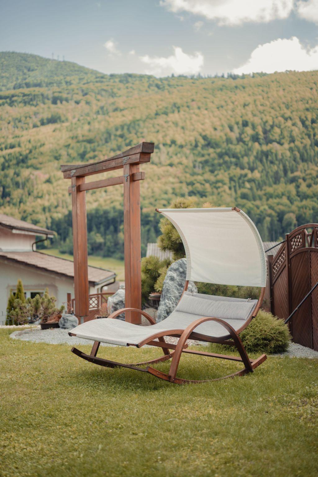 Genießen Sie die Natur auf Ihrem privaten Balkon mit Aussicht – perfekt für Frühstück oder Sonnenuntergänge. Zusätzlich stehen Ihnen der Garten mit Pavillon, beheiztem Pool in den Sommermonaten, Grillmöglichkeiten und einer Outdoor-Schaukelliege zur Verfügung.