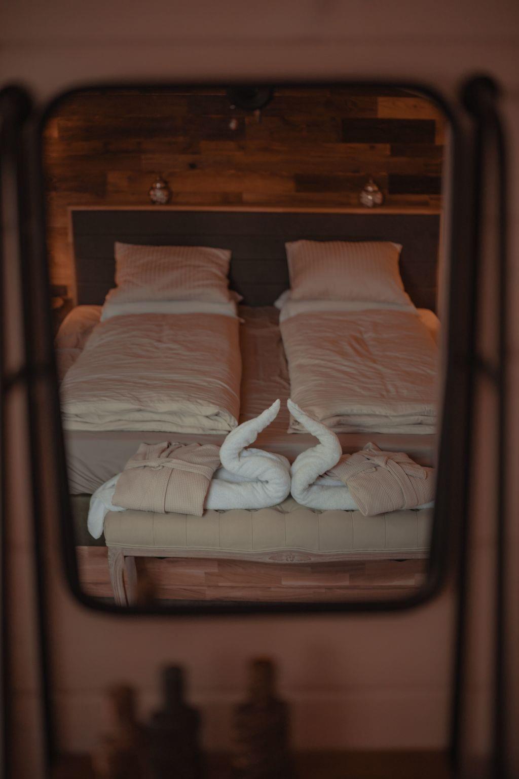 Erleben Sie erholsame Nächte im kuscheligen Boxspringbett mit hochwertigen Matratzen. Für weitere Gäste steht ein komfortables Klappsofa mit Topper bereit. Alle Betten sind mit milbenbehandelten Duvets und Kopfkissen ausgestattet. Zusätzlich bieten wir Gesundheitskopfkissen zur Auswahl – ideal für Allergiker.