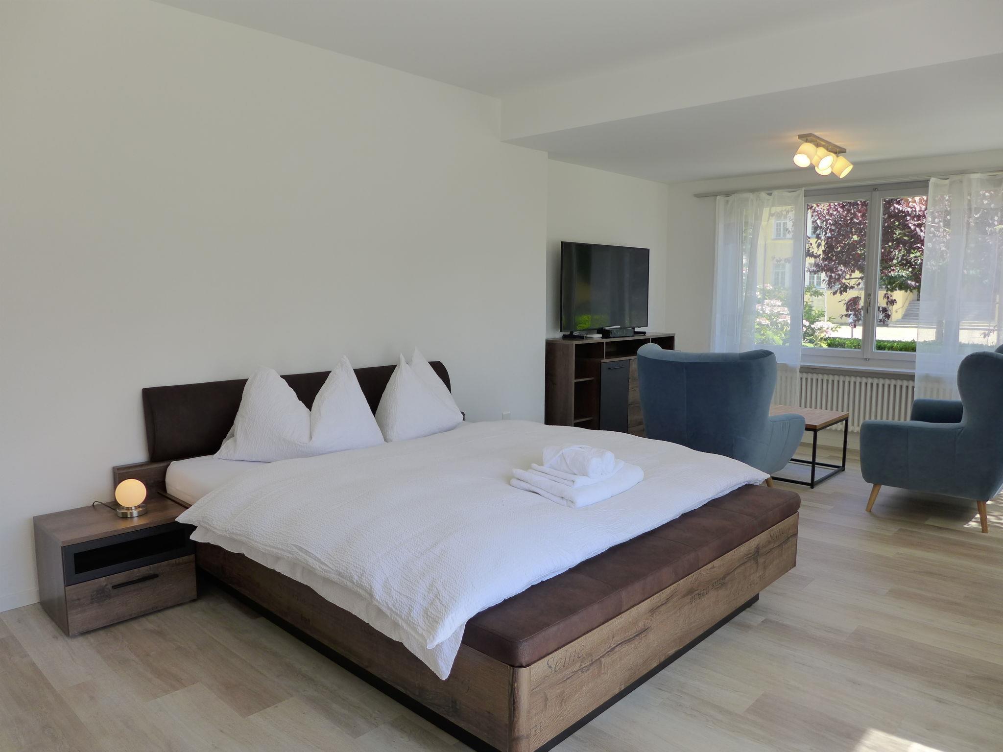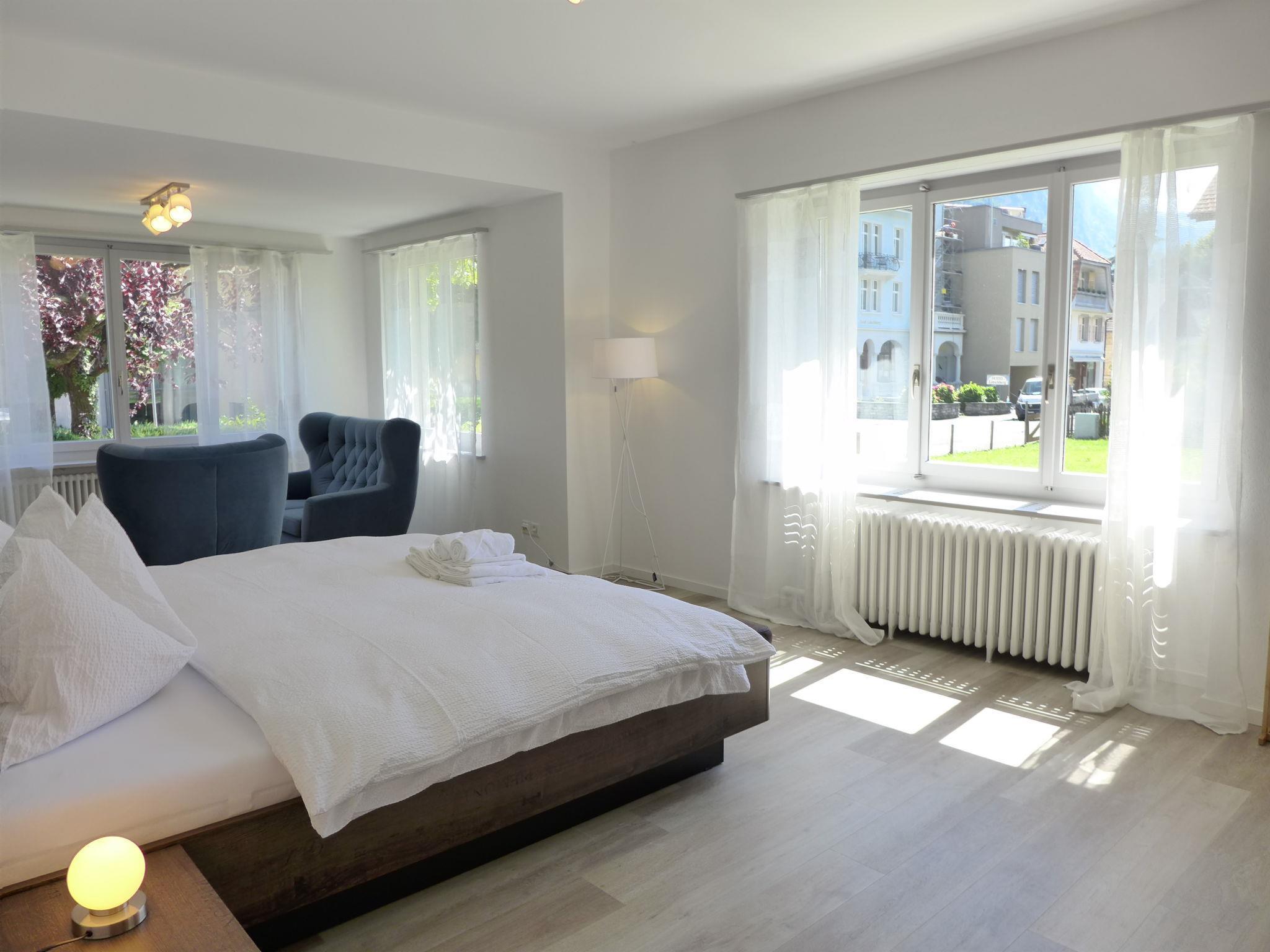 Schönes, komfortables, historisches Mehrfamilienhaus "Henry's Apartments", auf 3 Stockwerken, Baujahr 1908, renoviert im Jahre 2022. Zentrale, ruhige Lage in einem Wohnquartier. Zur Mitbenutzung: grosser, gepflegter Garten Rasen und Pflanzen. Sitzplatz. Im Hause: Zentralheizung, Waschmaschine, Wäschetrockner (zur Mitbenutzung, extra), Trockenraum. Parkplatz (beschränkte Anzahl). Supermarkt 250 m, Zentrum zu Fuss in 5 Minuten erreichbar, Bushaltestelle "Interlaken West, Bahnhof" 300 m, Bahnstation "Interlaken West" 300 m, Freibad 1.3 km, Hallenbad 1.3 km. Golfplatz (18 Loch) 3.5 km, Segelschule 3.5 km, Tennis 750 m, Minigolf 1.6 km, Skisportanlagen 25 km, Eisfeld 700 m. Nahe gelegene Sehenswürdigkeiten: Jungfraujoch, Schilthorn, Tell-Freilichtspiele, Ballenberg Openair Museum. Bekannte Skigebiete sind gut erreichbar: Grindelwald, Wengen 25 km. Bekannte Seen in der Umgebung sind gut erreichbar: Thunersee, Brienzersee. Bitte beachten: kein Fahrstuhl vorhanden. Weitere Unterkünfte sind buchbar.