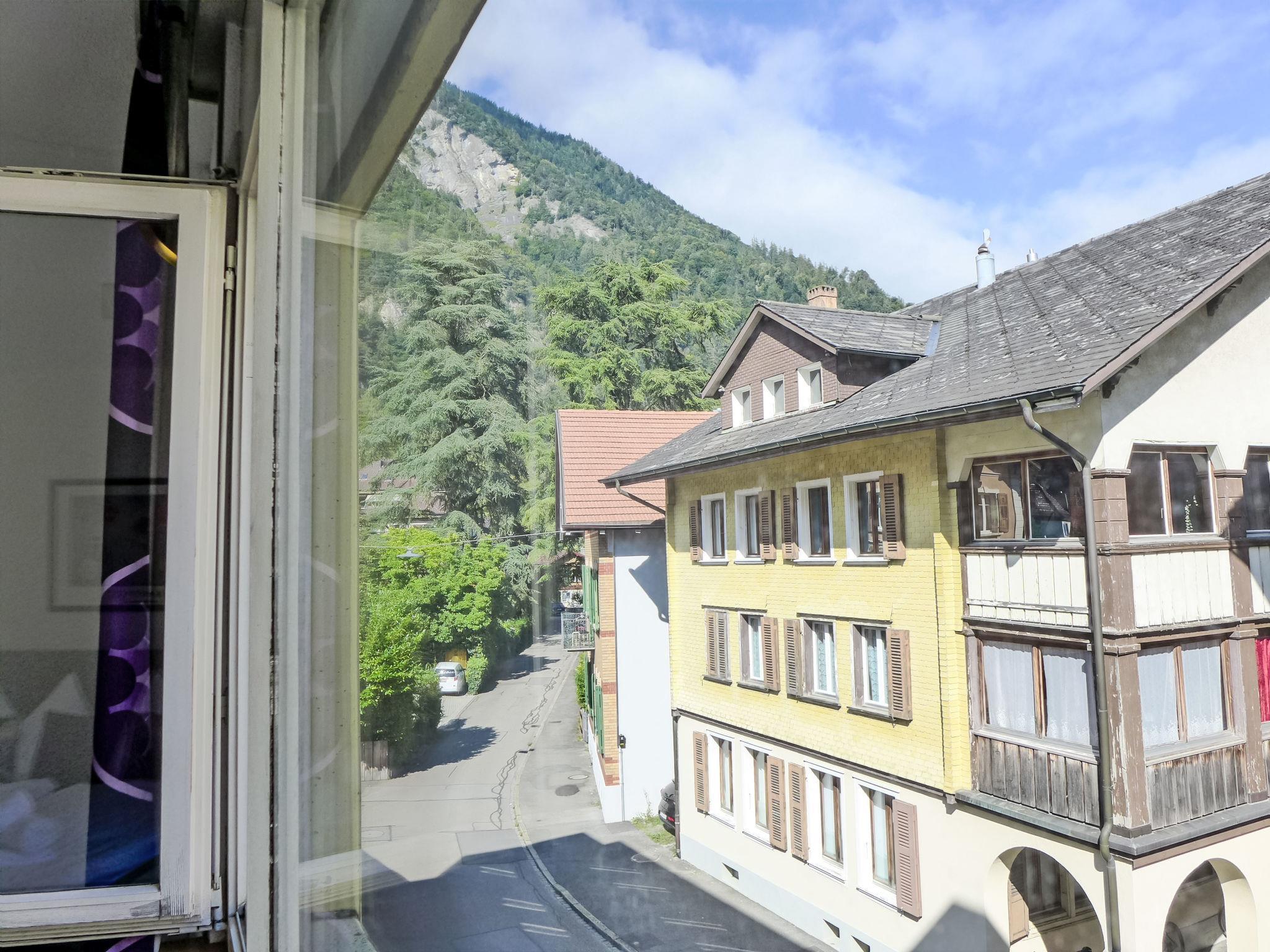 Einfaches Mehrfamilienhaus auf 4 Stockwerken. Im Ortszentrum von Interlaken, belebte Lage, im Herzen der Stadt. Im Hause: Fahrstuhl, Zentralheizung. Öffentliche Parkplätze 50 m extra. Lebensmittelgeschäft 50 m, Supermarkt 600 m, Restaurant 50 m, Fußgängerzone 100 m, Bushaltestelle 200 m, Bahnstation "Interlaken WEST" 600 m, Freibad, Hallenbad 300 m. Golfplatz (18 Loch) 4 km, Tennis 300 m, Minigolf 300 m, Skisportanlagen 12 km, Eisfeld 500 m. Nahe gelegene Sehenswürdigkeiten: Jungfraujoch, Schilthorn, Tell-Freilichtspiele, Ballenberg Freilichtmuseum. Bekannte Skigebiete sind gut erreichbar: Grindelwald Kleine Scheidegg, Wengen Männlichen, Mürren Schilthorn. Bekannte Seen in der Umgebung sind gut erreichbar: Thunersee, Brienzersee. Wandergebiete: Jungfrau Region. Bitte beachten: Gratis Skibus.