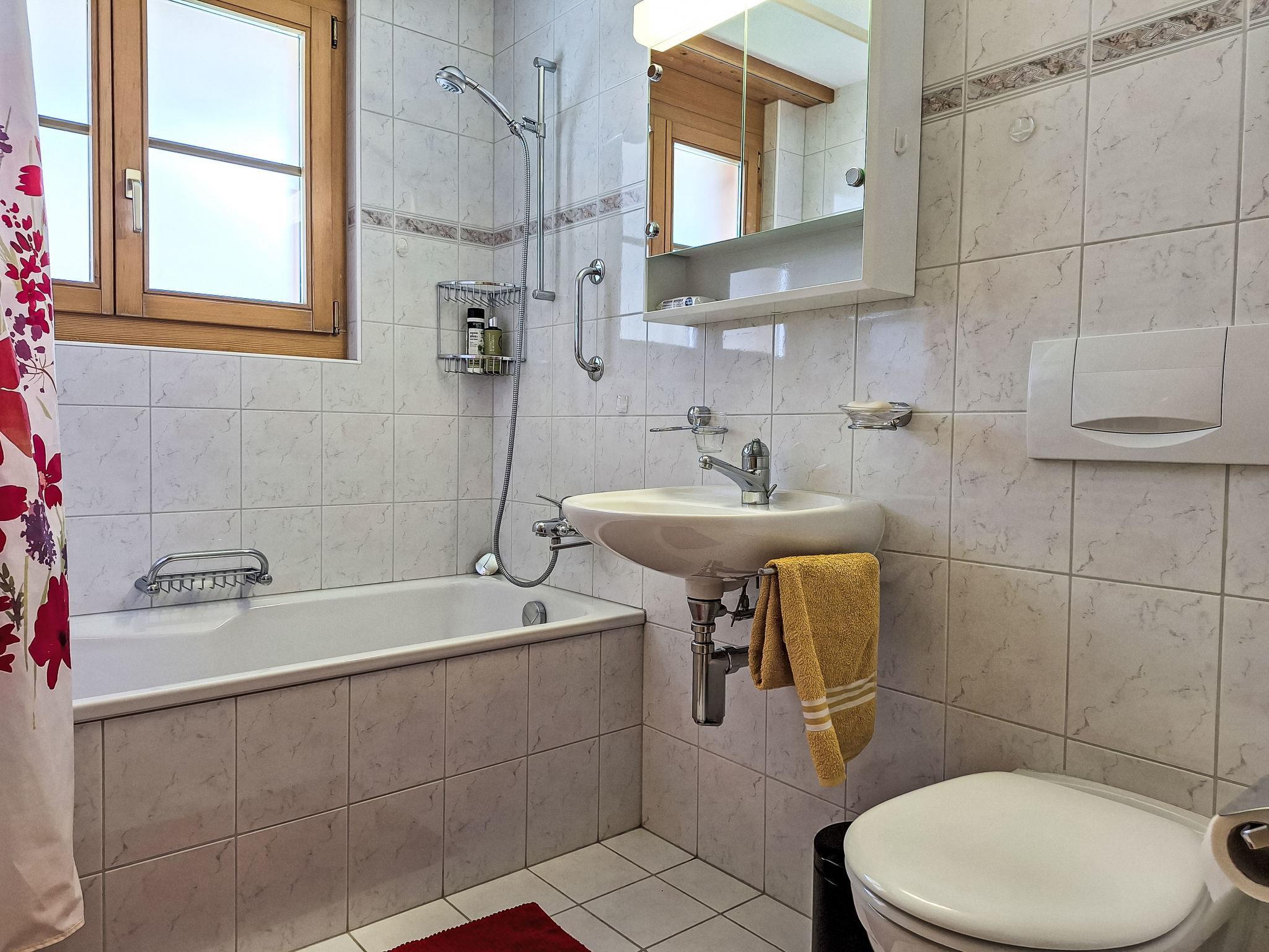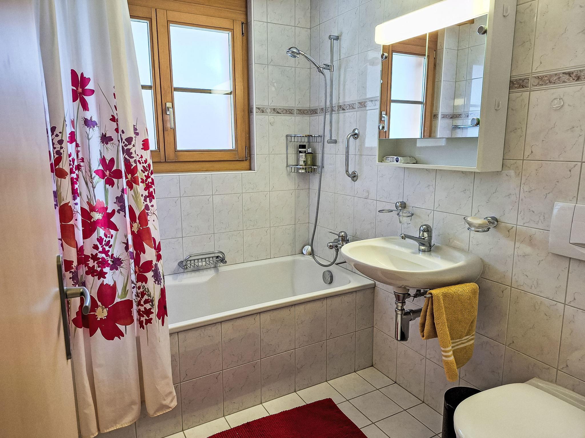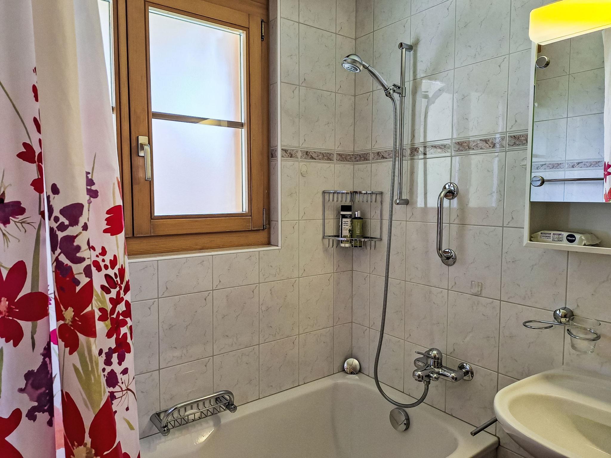2-Zimmer-Wohnung 70 m2 im 1. Stock. Geräumig und hell, komfortabel und gemütlich eingerichtet: offenes Wohn-/Schlafzimmer mit 1 Doppeldiwanbett (180 cm, Länge 200 cm), Kabel-TV und Radio. Ausgang zum Balkon. 1 Zimmer mit 1 Doppelbett (180 cm, Länge 200 cm). Offene Küche (4 Glaskeramikplatten, Toaster, Wasserkocher, Mikrowelle, elektrische Kaffeemaschine, Kapseln für die Kaffeemaschine (Nespresso) extra) mit Esstisch. Bad/WC. Grosser Balkon. Balkonmöbel. Herrliche Sicht auf die Berge und die Landschaft. Zur Verfügung: Haartrockner. Internet (WLAN, gratis). Parkplatz. 1 kleines Haustier/Hund erlaubt.