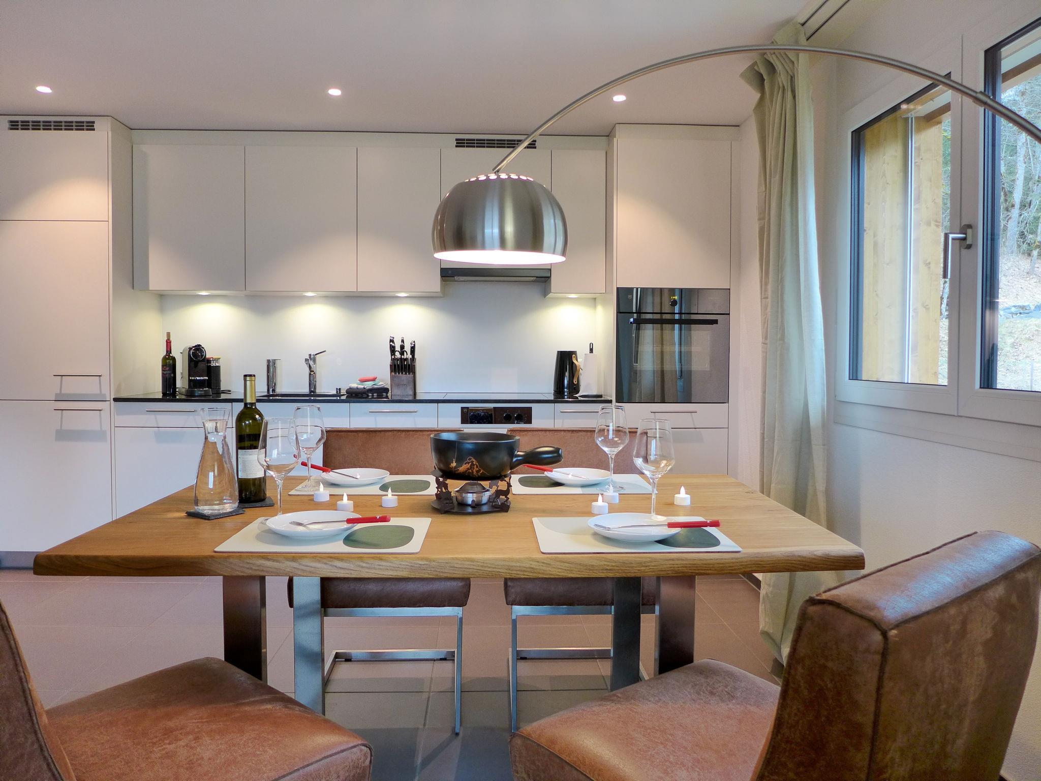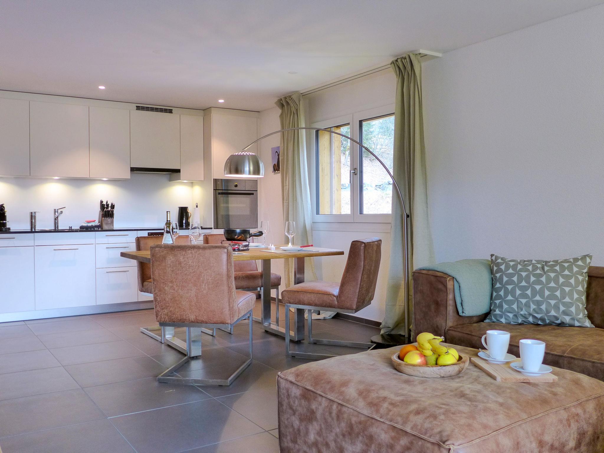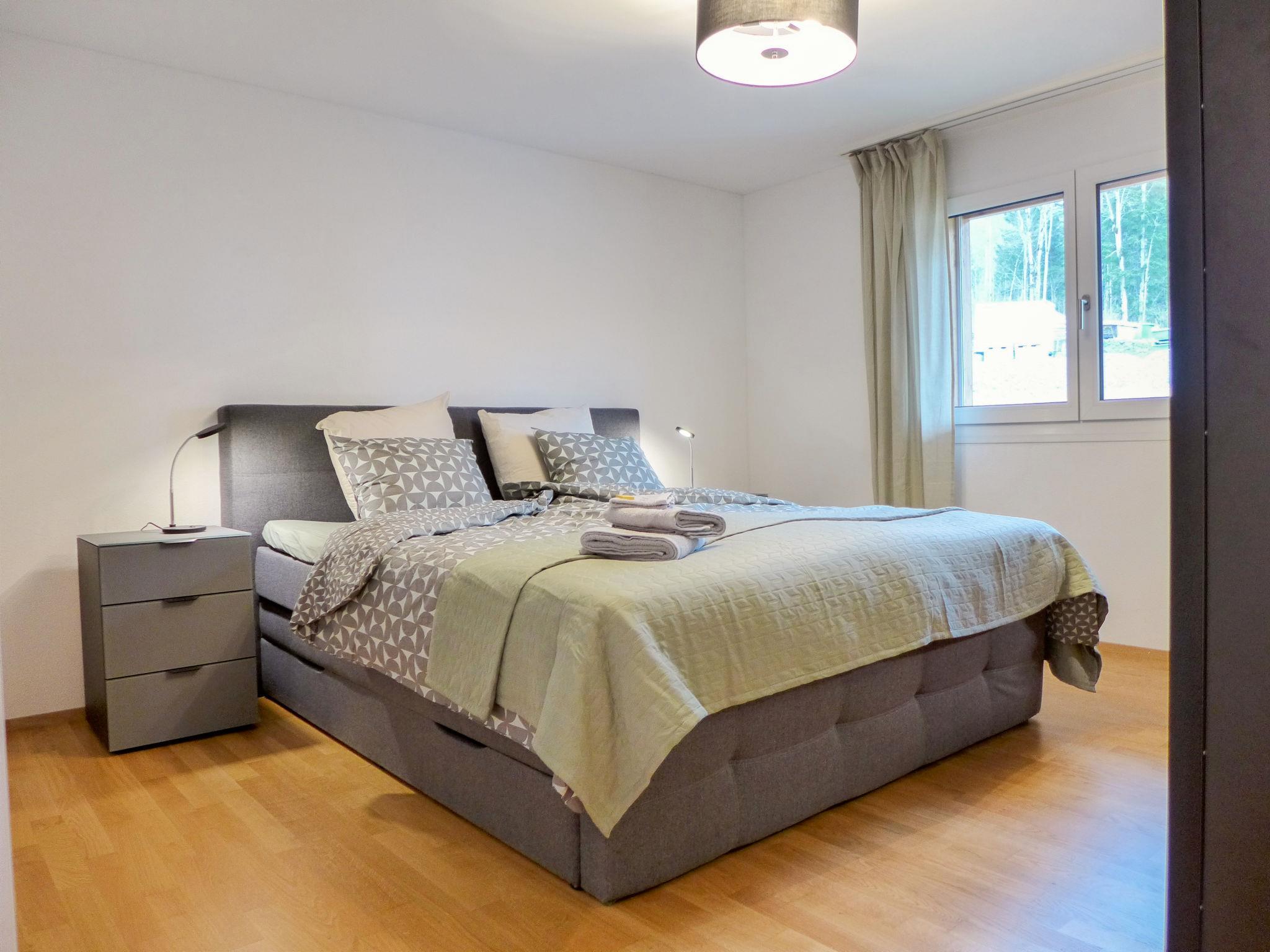"Ibex", 3-Zimmer-Wohnung 68 m2 im 1. Stock, Südlage. Geräumig und hell, komfortabel und geschmackvoll eingerichtet: offenes Wohn-/Esszimmer mit Panoramafenster mit Esstisch, Digital-TV und Flachbildschirm. Ausgang zum Balkon. 1 grosses Zimmer mit 1 Doppelbett (180 cm, Länge 200 cm). 1 Zimmer mit 2 Betten (90 cm, Länge 200 cm). Ausgang zum Balkon. Offene Küche (Backofen, Geschirrspüler, 4 Glaskeramikplatten, Wasserkocher, Tiefkühler, elektrische Kaffeemaschine, Kapseln für die Kaffeemaschine (Nespresso) extra, Fondue Set (Käse)). Dusche/WC. Fussbodenheizung. Grosser Balkon, Südlage. Balkonmöbel. Herrliche Panoramasicht auf die Berge und die Landschaft. Zur Verfügung: Kinderhochstuhl, Babybett bis 2 Jahre (extra), Haartrockner. Internet (WLAN, gratis). Parkplatz (überdacht, 2 Autos). Bitte beachten: Nichtraucher-Unterkunft. Maximal 1 Haustier/Hund erlaubt. Rauchmelder, Feuerlöscher.