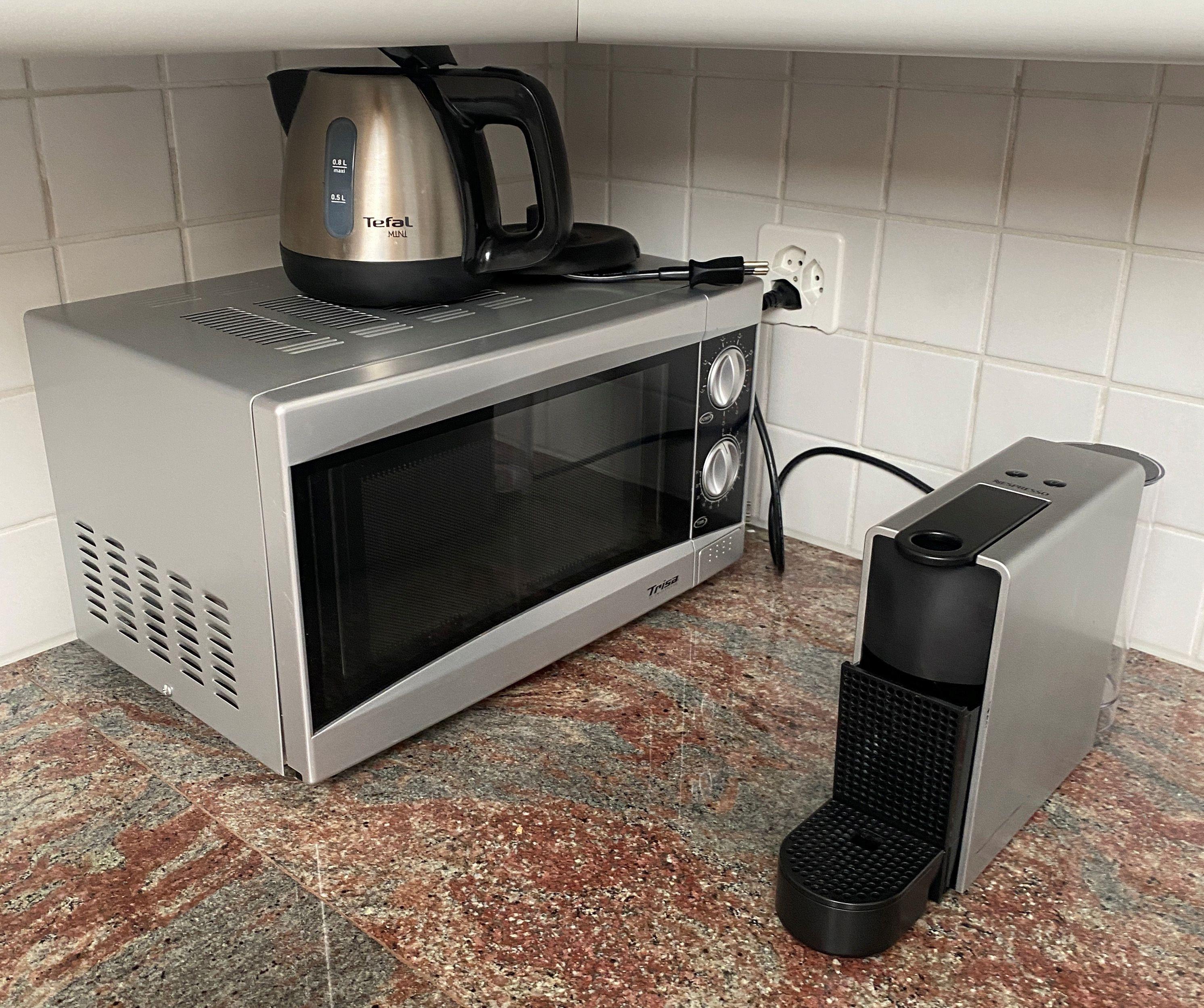 Im Inneren erwartet die Gäste eine charmant eingerichtete Wohnung, die keine Wünsche offenlässt. Die Wohnräume sind mit allem Komfort ausgestattet – inklusive einer Nespresso-Kaffeemaschine, einer Abwaschmaschine und einer eigenen Waschmaschine mit Trockner. Zudem sorgt ein Ventilator im Schlafzimmer und im Wohnzimmer für angenehme Temperaturen. Die kleine, funktionell eingerichtete Küche lädt zur Zubereitung Ihrer Mahlzeiten ein.