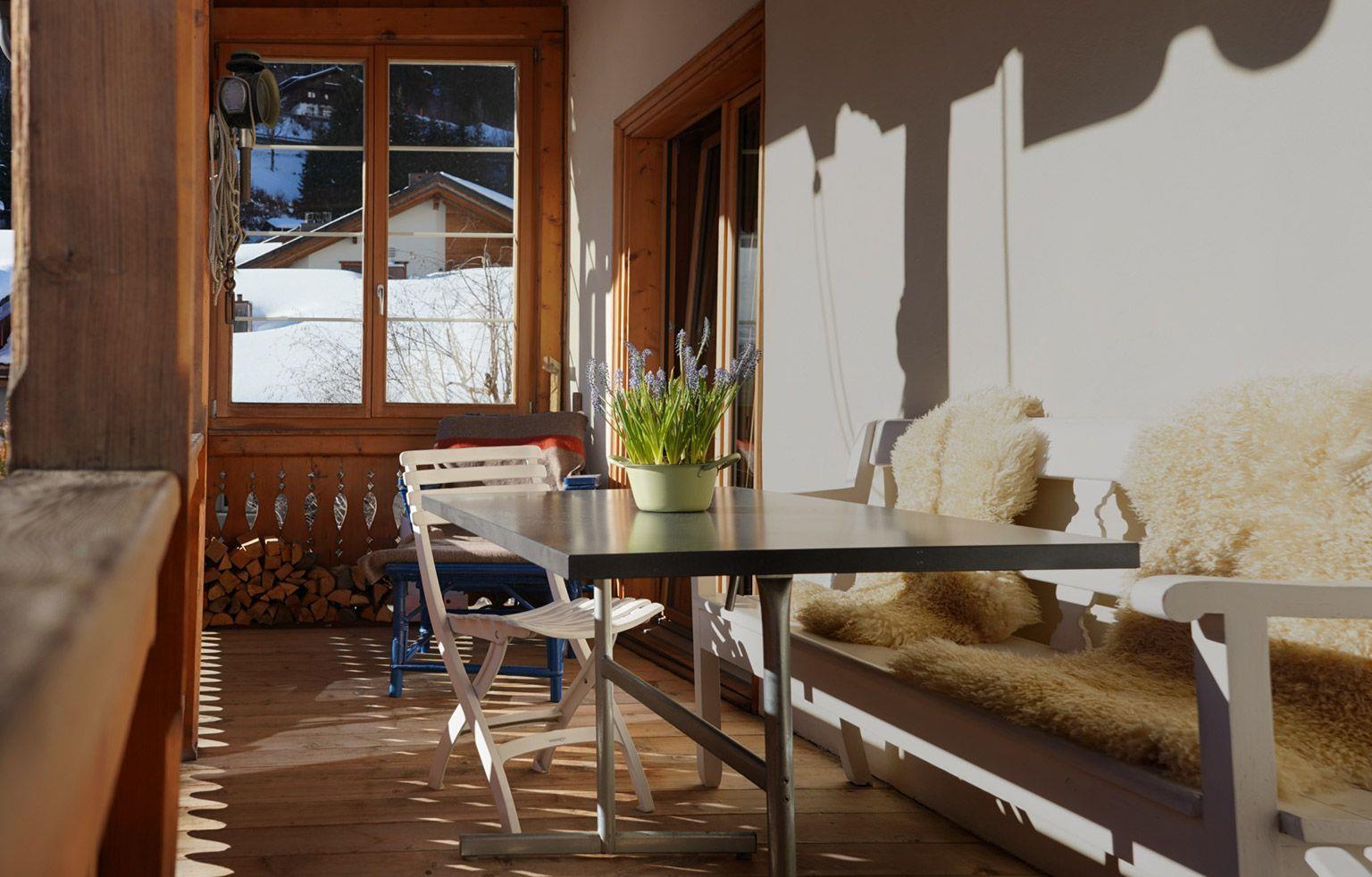 Der Außenbereich wird durch einen großen, gedeckten Balkon auf der Südseite abgerundet, der zum Verweilen in der frischen Bergluft einlädt. Für Sportbegeisterte stehen Lagermöglichkeiten für Ski-, Langlauf- oder Golfausrüstung sowie Bikes im „Stall“ zur Verfügung. Zudem haben unsere Gäste den gesamten Hausteil für sich, inklusive eigenem Hauszugang.