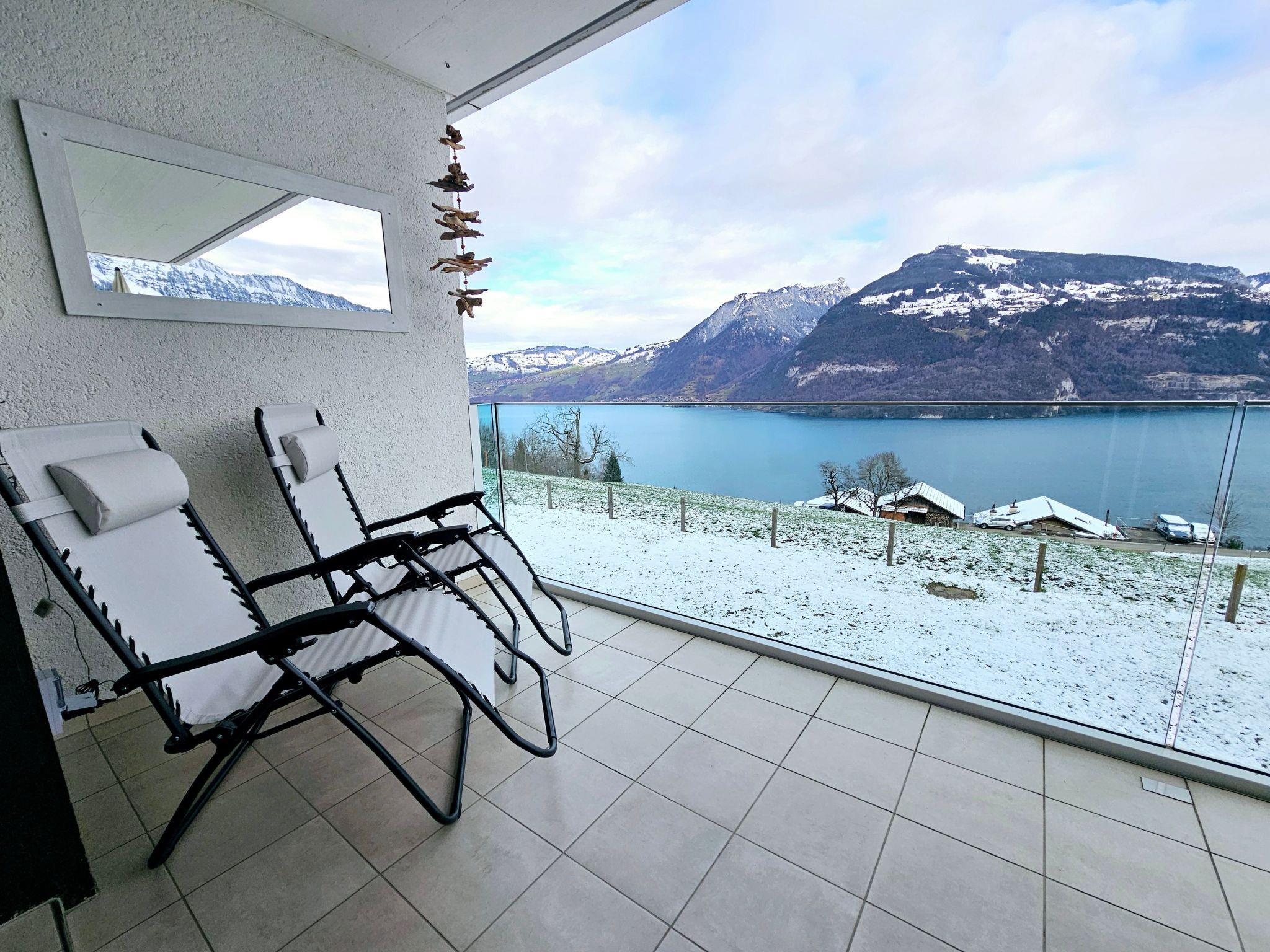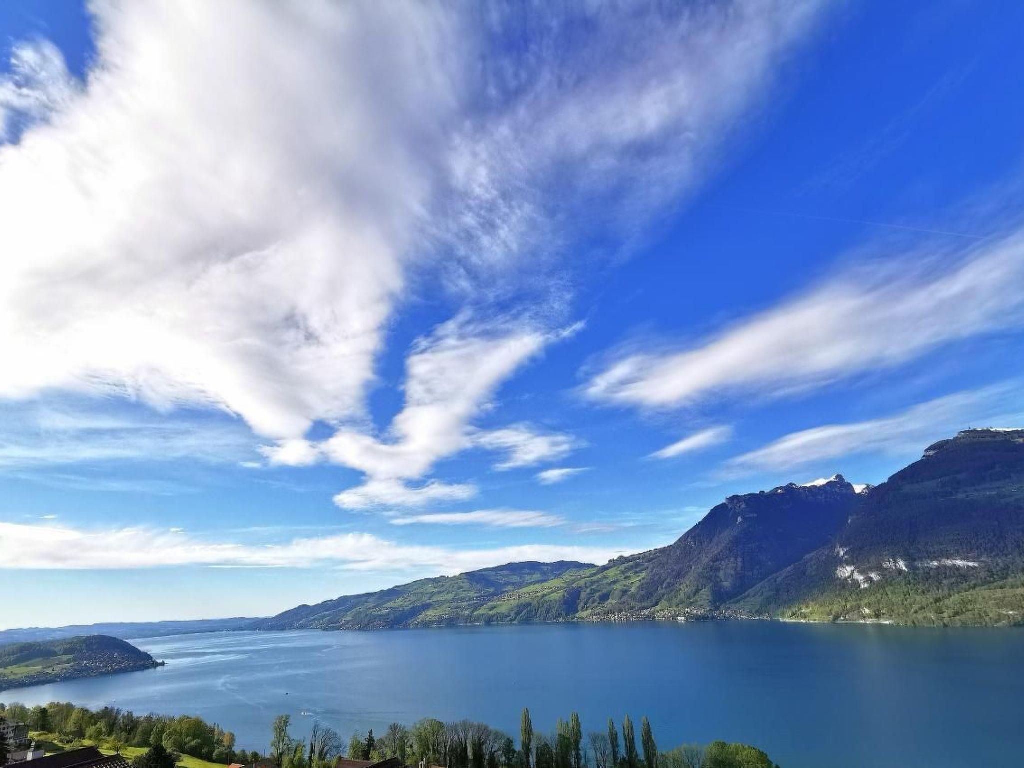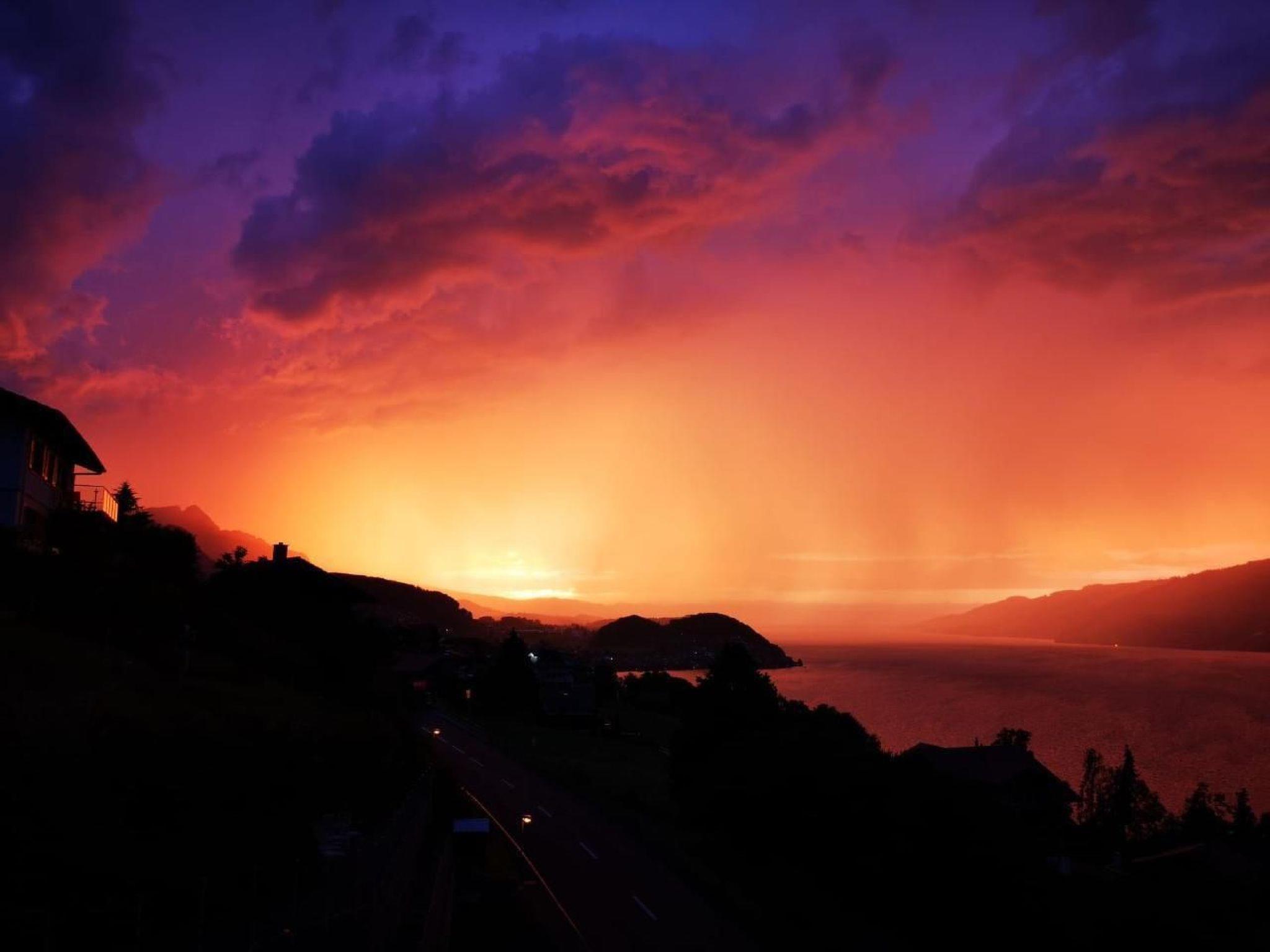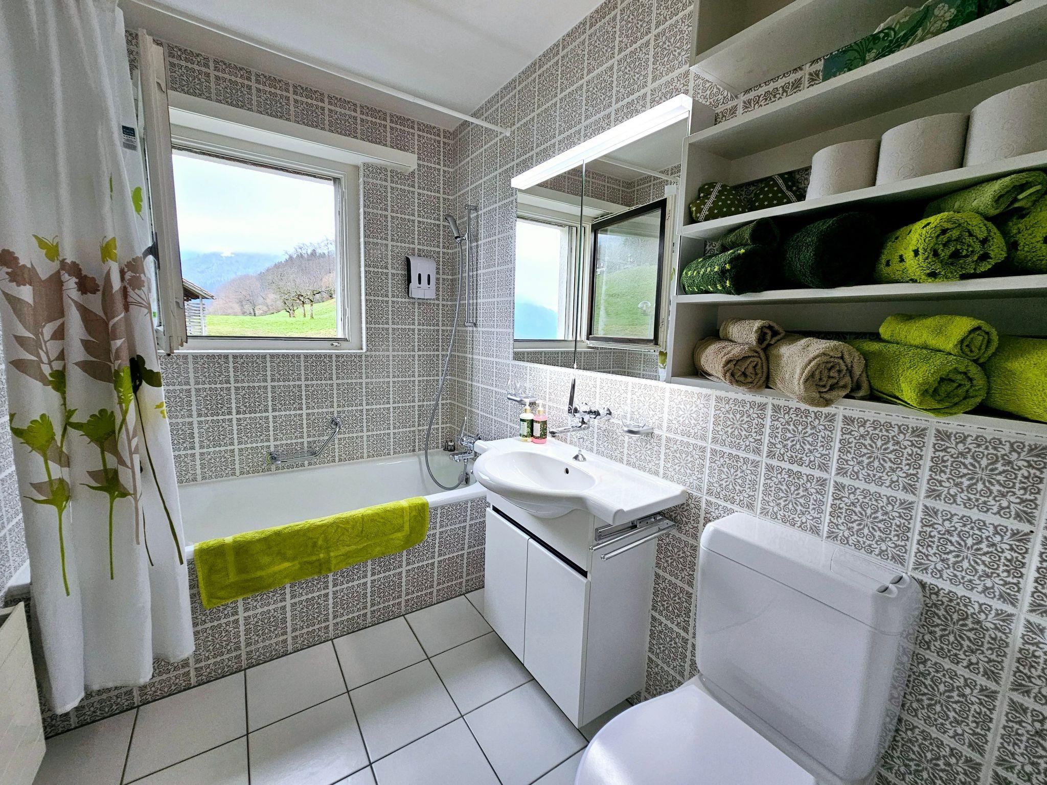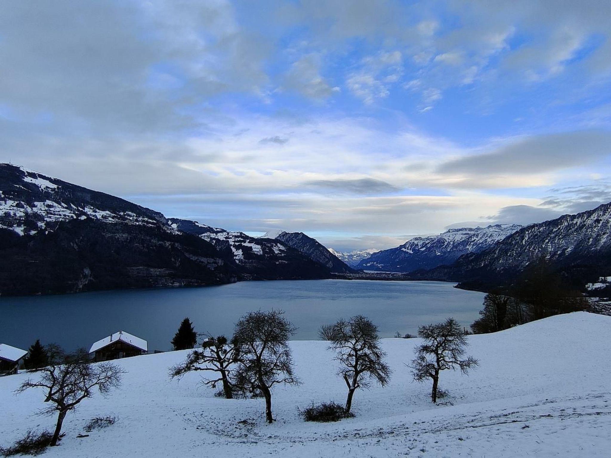 Idyllische Lage mit einmaliger Aussicht auf die schönen Berge vom Berner Oberland, und über den ganzen Thunersee von Interlaken bis nach Thun. Die Wohnung liegt am Dorfrand in der Natur umgeben von wenigen Häusern.