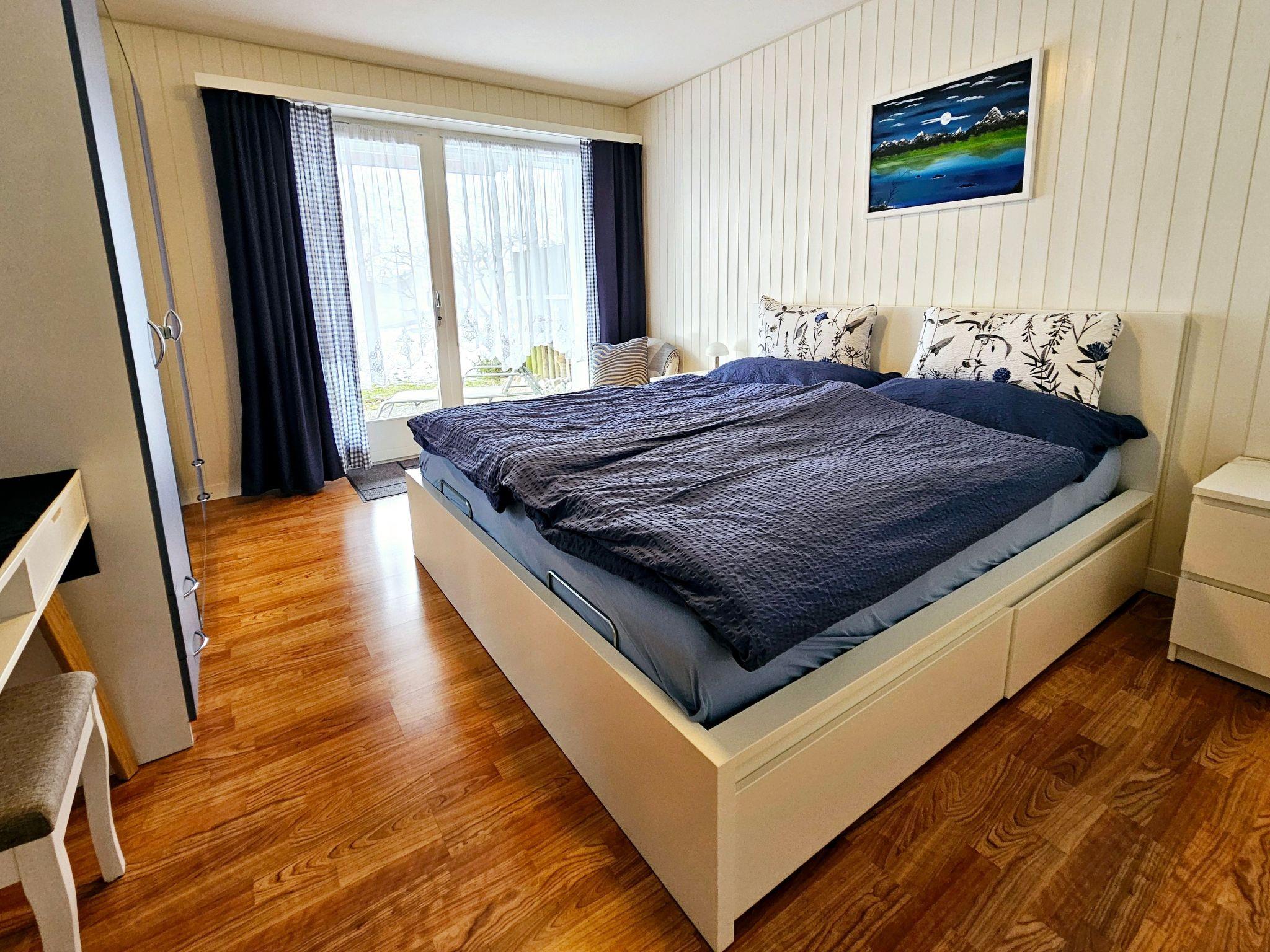 Auf der Nordseite steht ein Balkon, sowie auf der Südseite ein Sitzplatz zur Verfügung. Die Wohnung verfügt über 2 Schlafzimmer, Bad, vollausgestattete Küche mit Geschirrspüler, grosses Wohnzimmer sowie TV und WLAN.