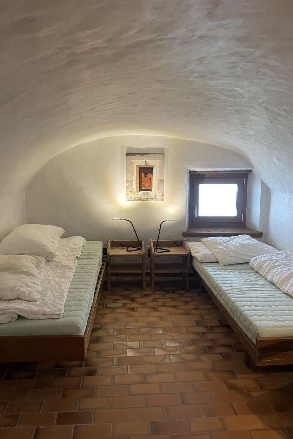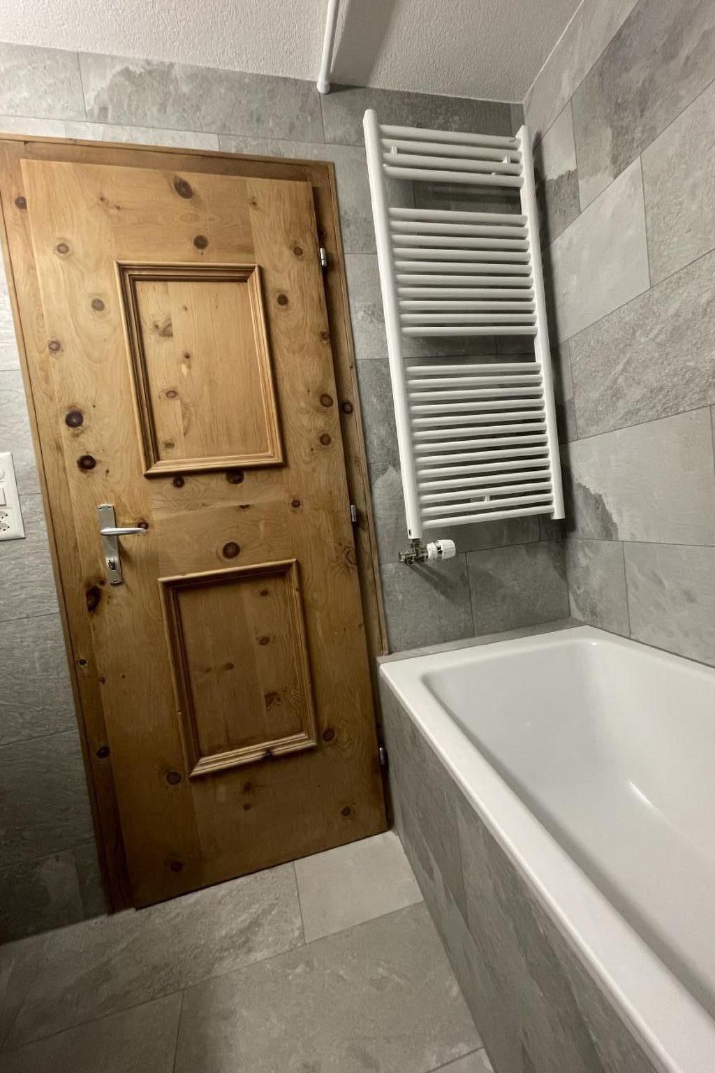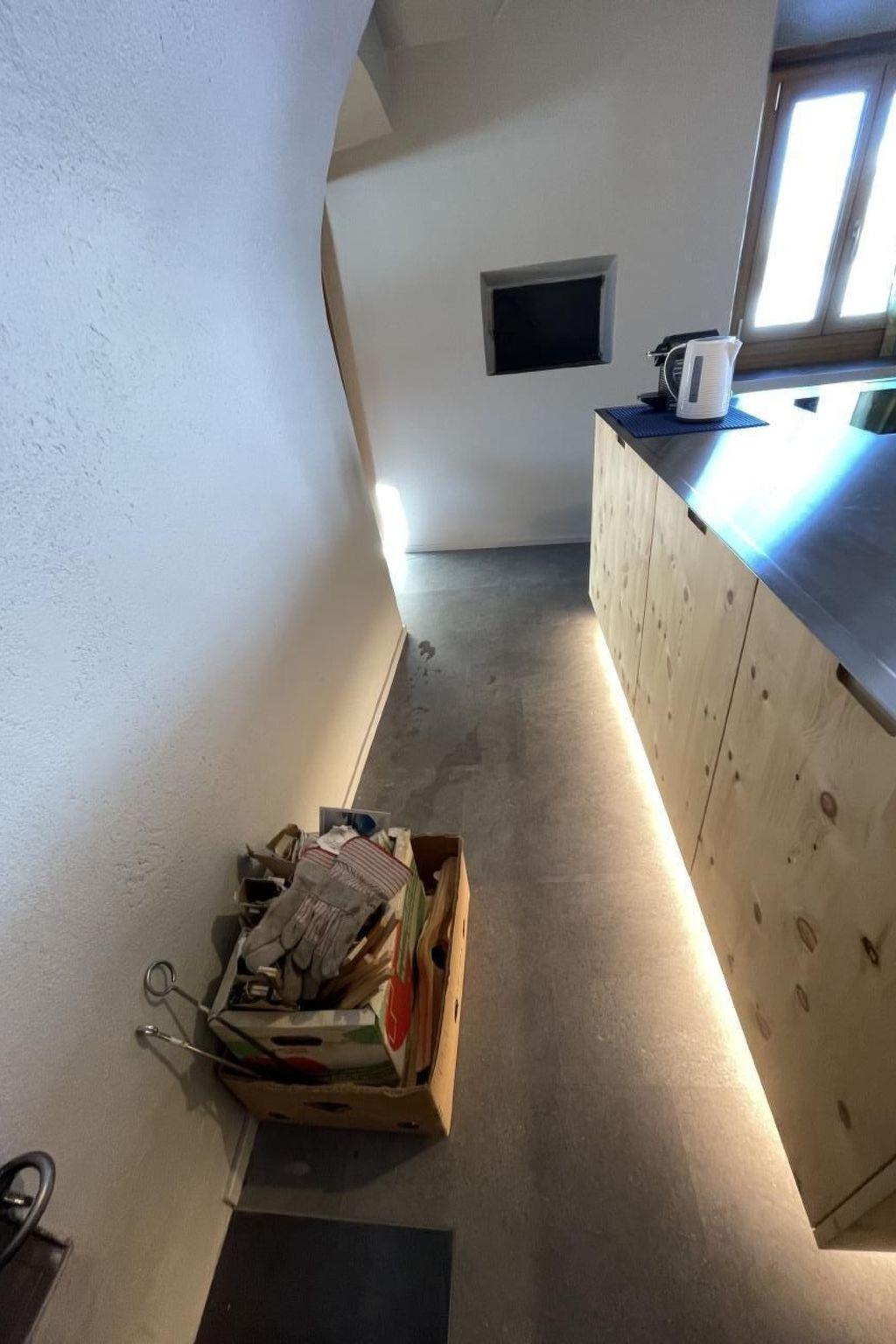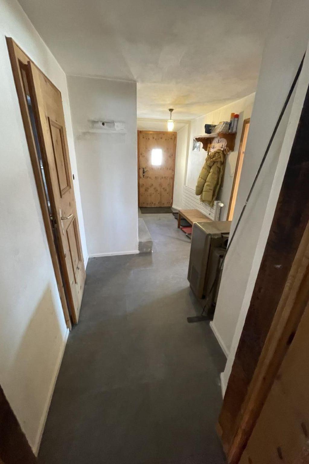 Parterre: Stube aus antikem Arvenholz und traditionellem Holzofen (kann benutzt werden, aber da wir seit 2023 Geothermische Heizung im ganzen Haus haben, wird der Ofen praktisch nie mehr benutzt.) Küche und ein Doppelzimmer, das als Wohnzimmer genutzt werden kann da ein neues Schlafsofa fuer 2 dem Raum mehr flexibilität gibt mit Balkonausgang, Dusche/WC. Küche, WC/Dusche und Gang: Neu Renoviert 2023