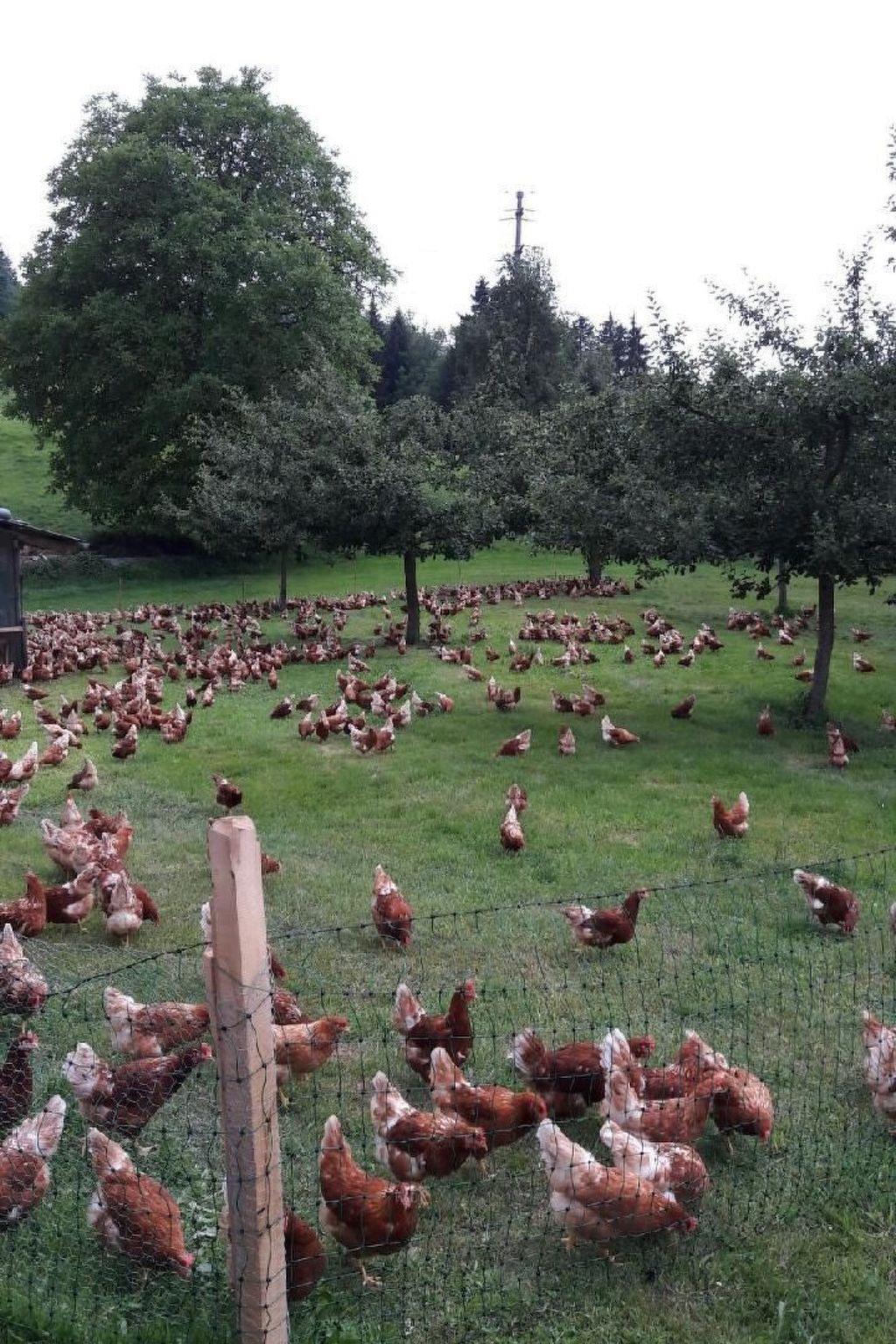 Am Morgen eine frische Tasse Kuhmilch geniessen? Oder Mittags ein feines Spiegelei kochen? Bei uns können Sie beides ganz frisch haben. Kühe und Hühner leben bei uns glücklich.