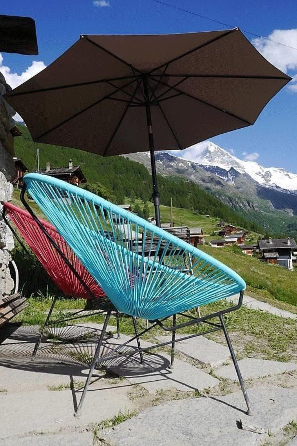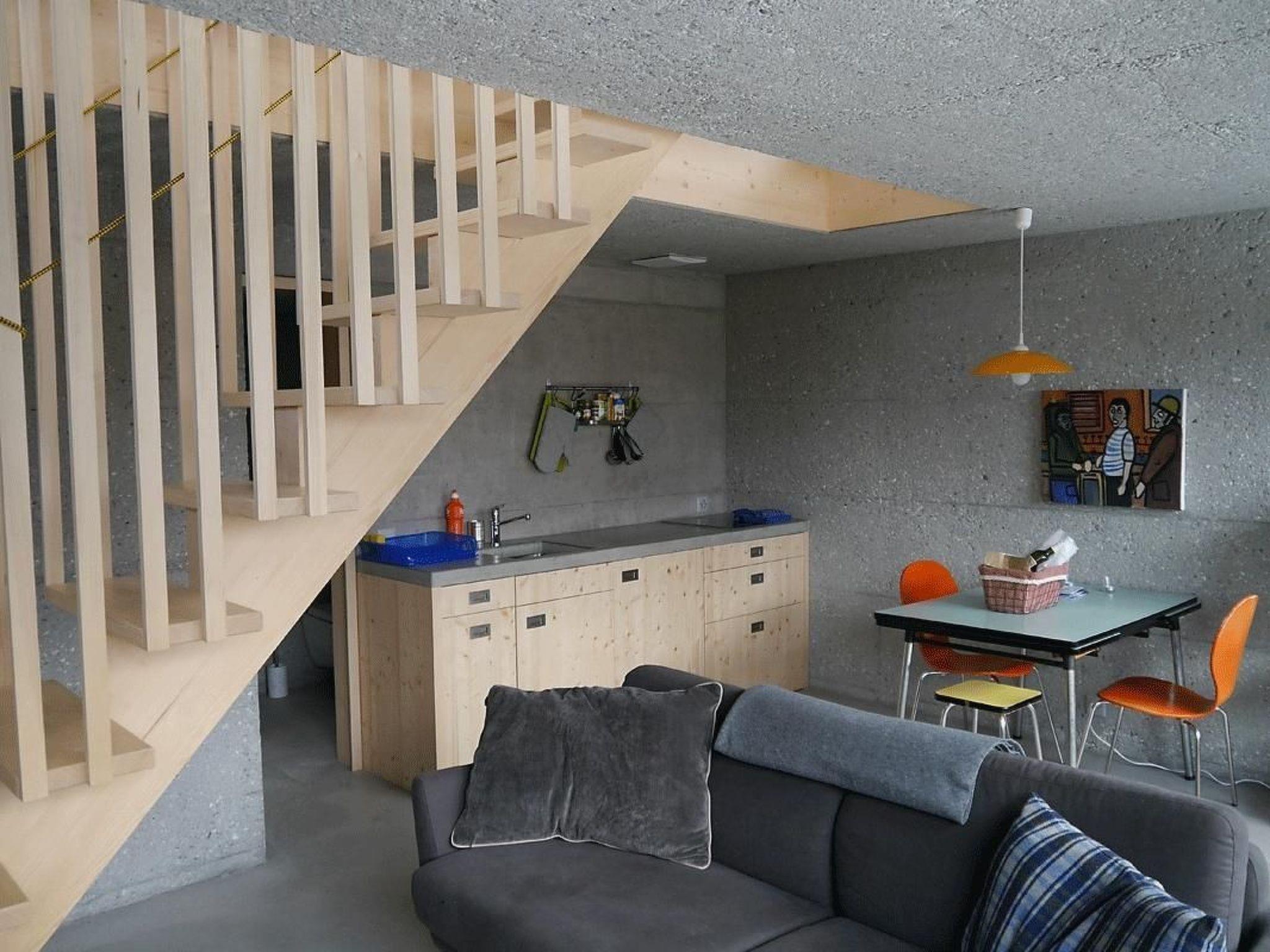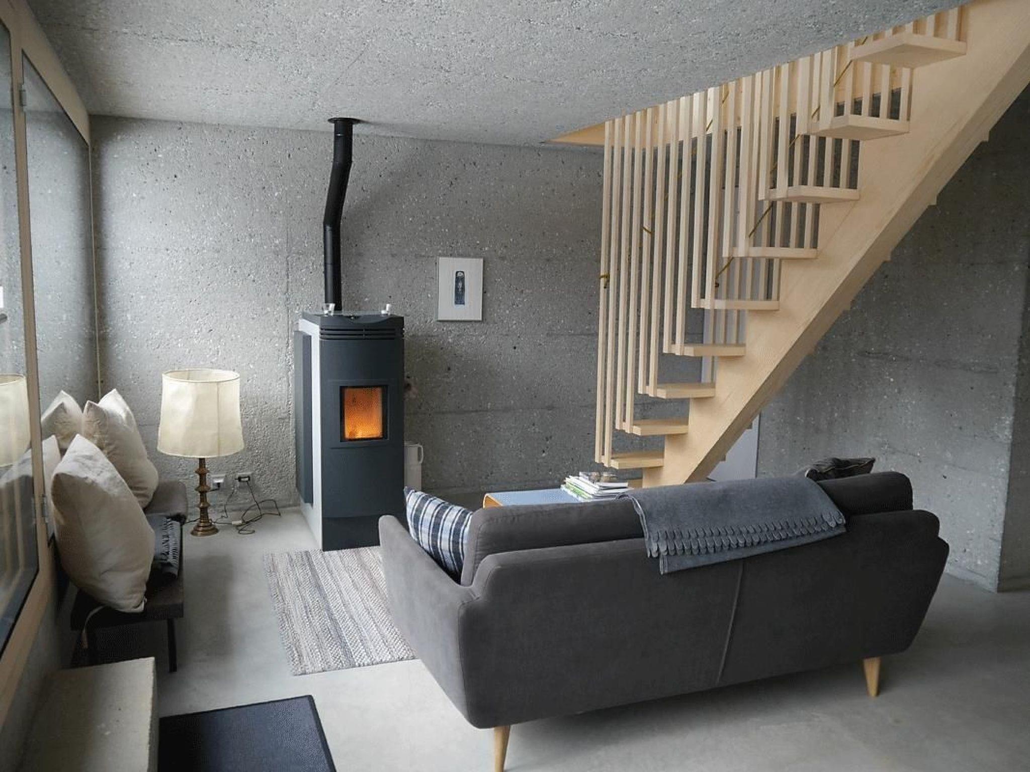 Der ehemalige Stall ist heute ein Wohnraum in einem modernen Ambiente, der mit einem Pelletofen beheizt wird. Der obere Teil wurde in ein geräumiges Schlafzimmer umgewandelt, das einen Blick auf den 4357 Meter hohen Dent Blanche bietet. Die verschiedenen Räume ermöglichen es uns, Ihnen zwei völlig unterschiedliche Atmosphären zu bieten. Der ehemalige Stall ist mineralisch und verbindet Beton und Stein, während der Raum des Raccard ein mit Holz ausgekleideter Kokon ist, der zum Entspannen und Ausruhen einlädt. Der Übergang von einem Stockwerk zum anderen erfolgt über eine Holztreppe, die die Leere überwindet - eine Reise für sich!