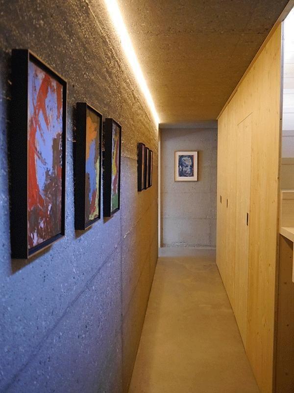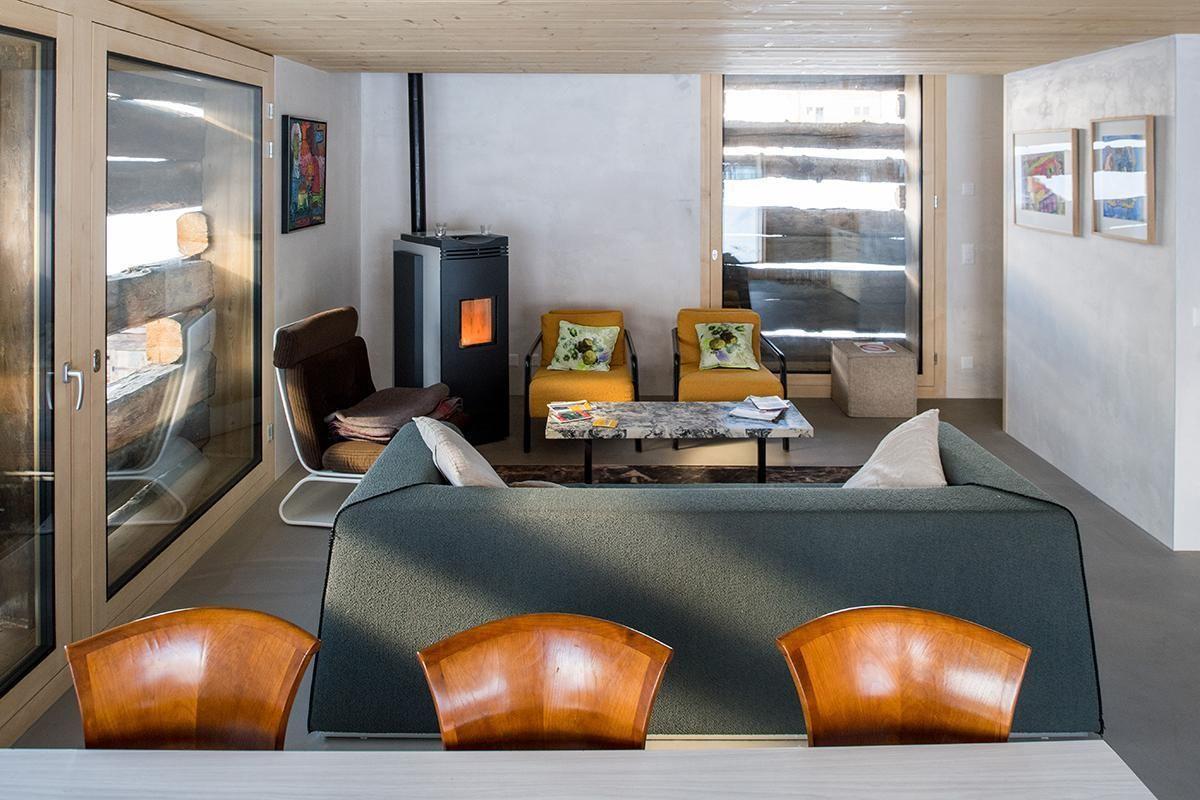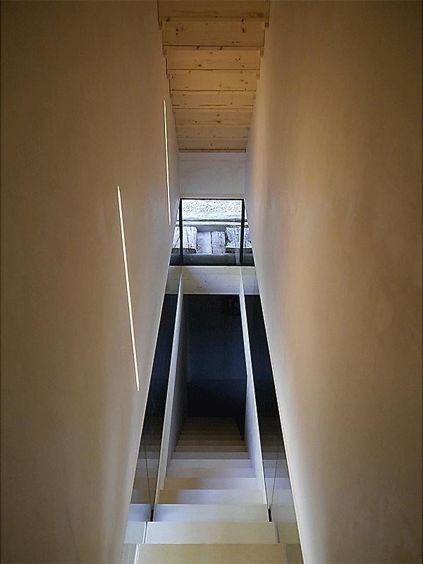 Öffnungen an den Seiten ermöglichen einen Blick auf das Tal in einem entschieden modernen Ambiente.