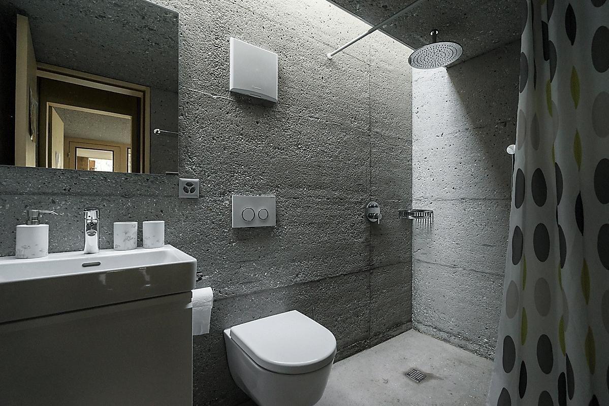 Der Wohnbereich befindet sich im Sockelgeschoss und umfasst einen Wohnbereich, ein Esszimmer für bis zu sechs Personen sowie eine Einbauküche. Der Raum erstreckt sich nach außen auf eine überdachte Terrasse. In den Obergeschossen befinden sich drei verschiedene Schlafzimmer sowie eine einzigartige Innenterrasse - ein wahres Paradies für Familien.