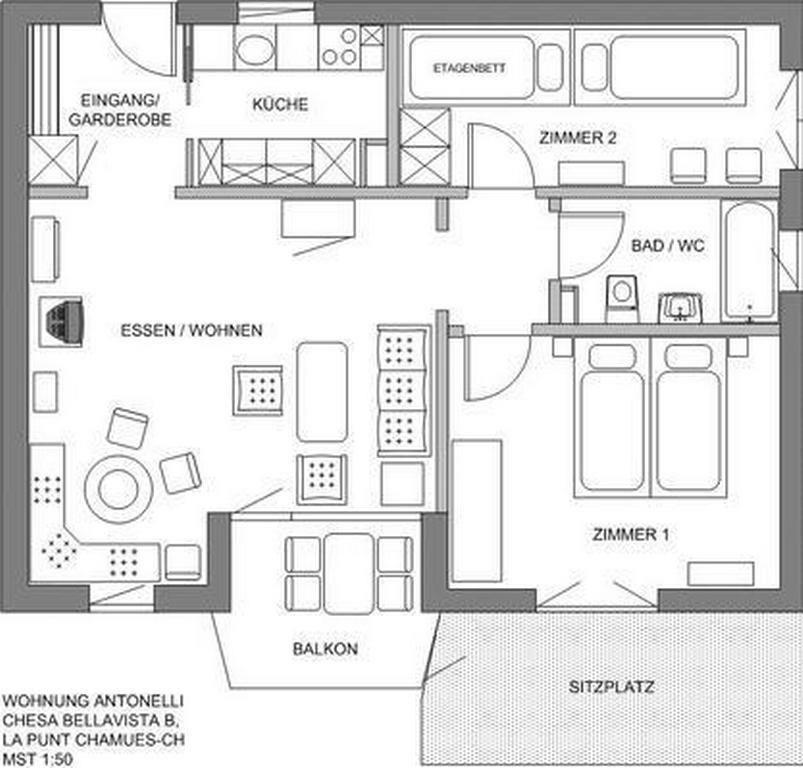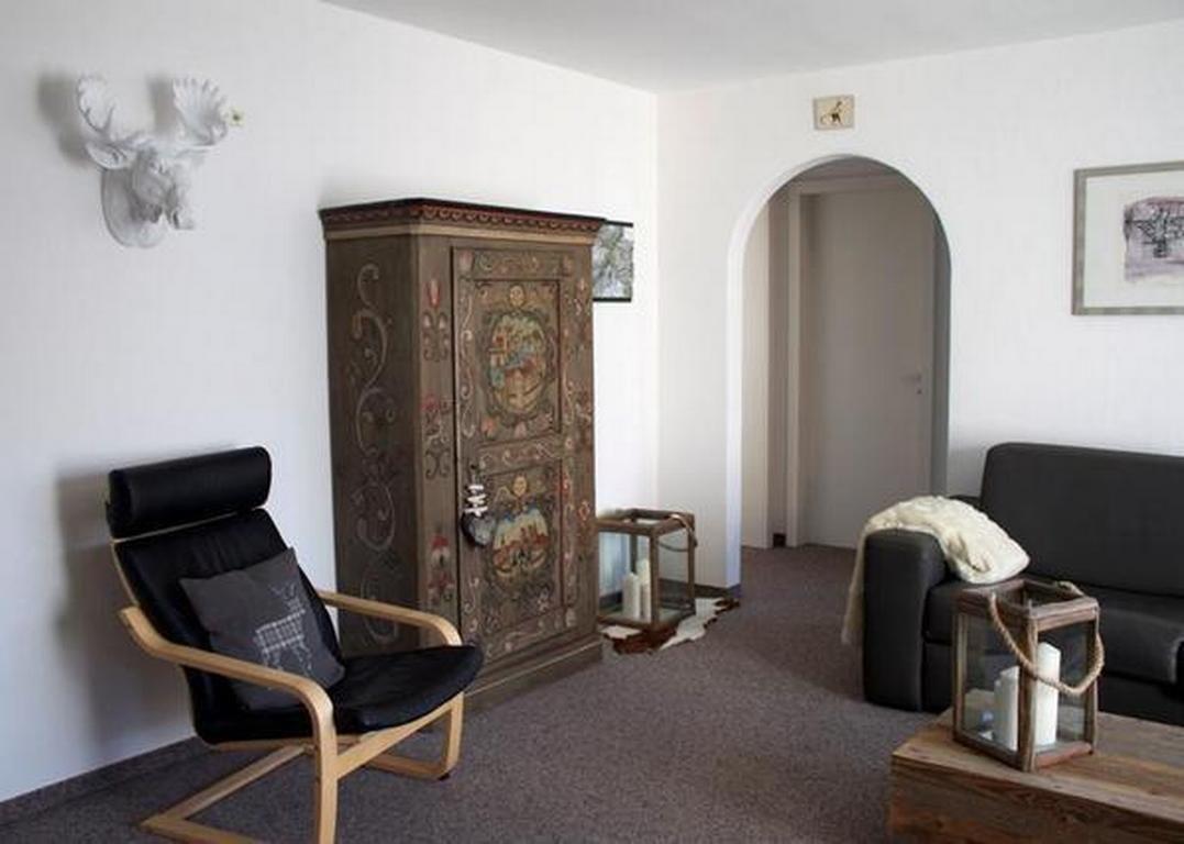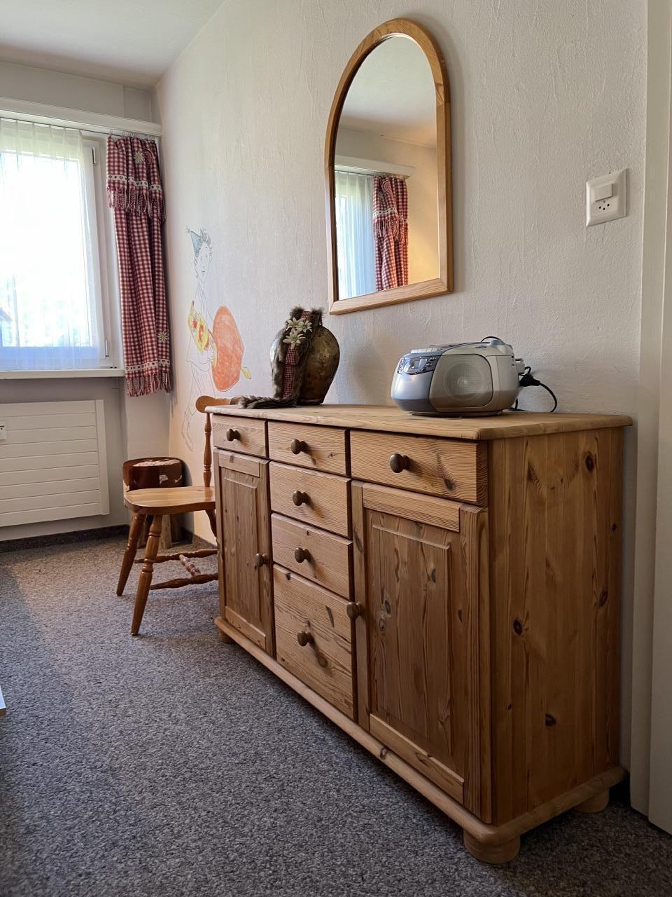 3 ½-Zimmerwohnung (65 m2) für bis zu 6 Personen mit Balkon und Gartensitzplatz mit Aussicht auf den Piz Mezzaun. Entrée mit Garderobe, grosses und helles Wohn- und Esszimmer (Polstergruppe und Sessel, Eckbank und Tisch, TV, Radio, kostenloses WLAN-Internet) mit Schlafmöglichkeit auf dem Bettsofa. Komplett eingerichtete Küche (Glaskeramikkochfeld, Backofen, Geschirrspüler,Mikrowelle, Nepresso Kaffeemaschine, Dampfabzug, Kühlschrank mit Tiefkühlfach). Zwei Schlafzimmer (1 Elternzimmer mit 2 Einzelbetten; 1 Kinderzimmer mit 1 Etagenbett und 1 Einzelbett; Kinderreisebett auf Anfrage gratis verfügbar). Bad/WC ist im April 2023 neu renoviert worden. Abstellraum für Ski und Velos. Waschmaschine und Tumbler zur allgemeinen Benützung. Garagenplatz vorhanden Haustiere erlaubt.
