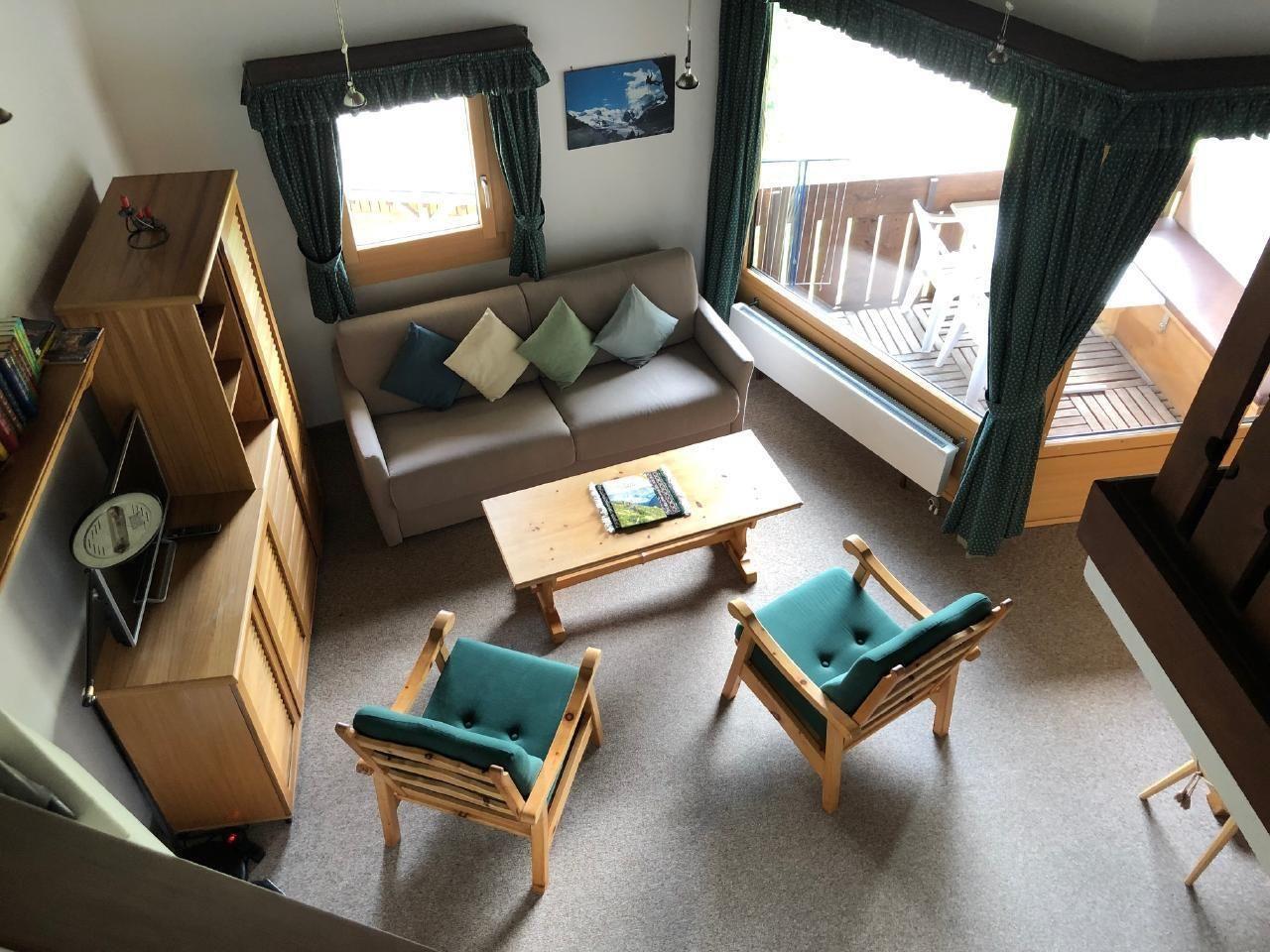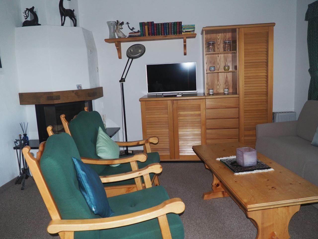 Es handelt sich um eine geschmackvoll möblierte 3 Zimmer-Galerie-Wohnung in einer Appartement- Siedlung in La Punt Chamues-ch an einer ruhigen und sehr sonnigen Lage mit unverbaubarer Aussicht. Die Wohnung im Galeriegeschoss verfügt über ein gemütliches Wohn- und Esszimmer, Cheminée, gut eingerichtete offene Küche, ein Doppelschlafzimmer, Holztreppe zur grossflächige Galerie mit 2 Doppelbetten und Schrank, Bad/WC, Balkon, Autoeinstellplatz. *4 Plattenherd, Backofen, Kühlschrank mit Gefrierfach, Geschirrspülautomat.