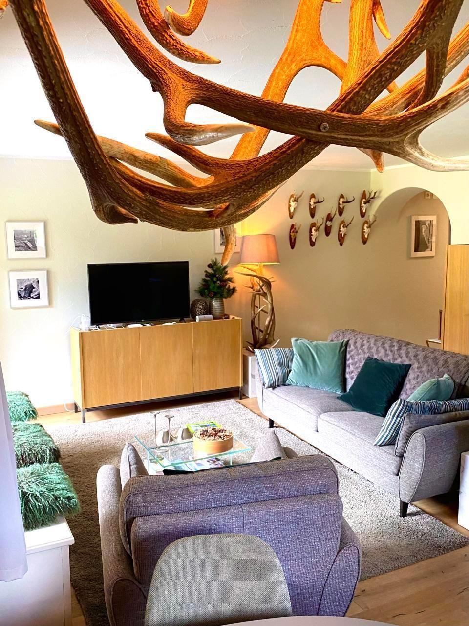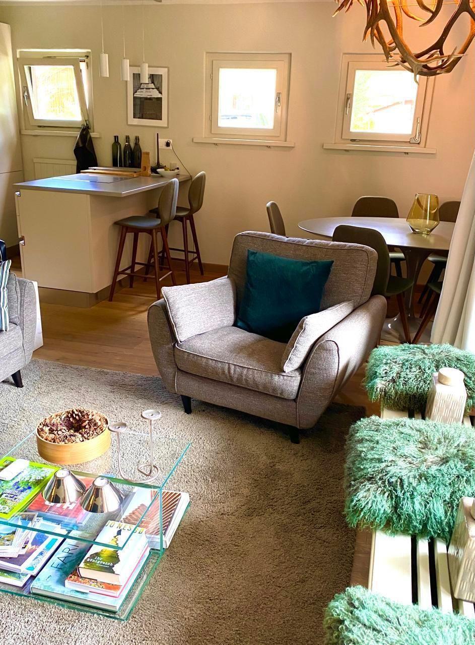 Sonstige Wohnzimmerausstattung (Wohnzimmer1): Wohnzimmer mit Sofa (3 Sitzmöglichkeiten - Schlafbett), Relax-Sessel für 1 Person, Speisekammer Schrank, TV-Schrank, Kochinsel mit zwei Hockern zum Frühstück, Esszimmer für 6 Personen.