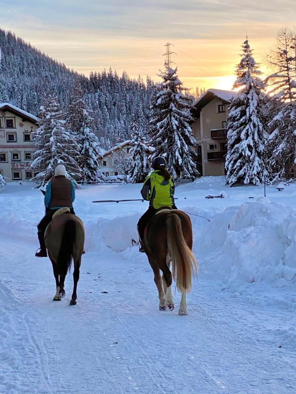 Familien geniessen die Engadiner Sonne bei einer Kutschenfahrt ins Val Roseg oder Val Fex, oder schlitteln auf der 4.2km langen, kurvenreichen Schlittelbahn Muottas Muragl ins Tal hinab.
