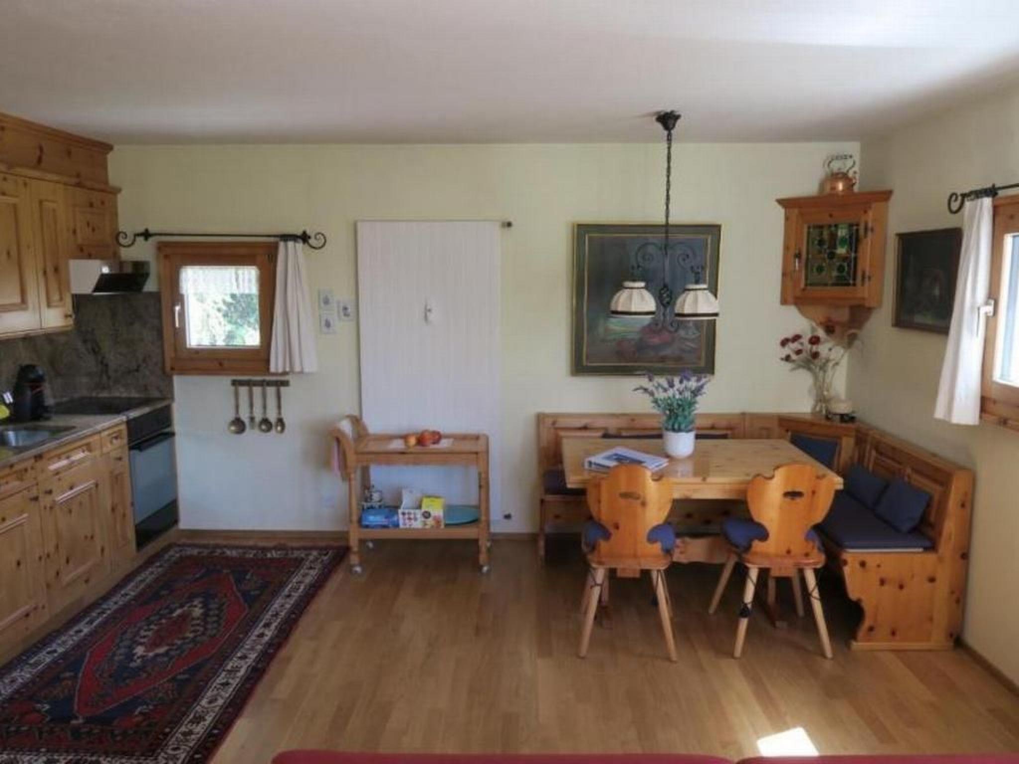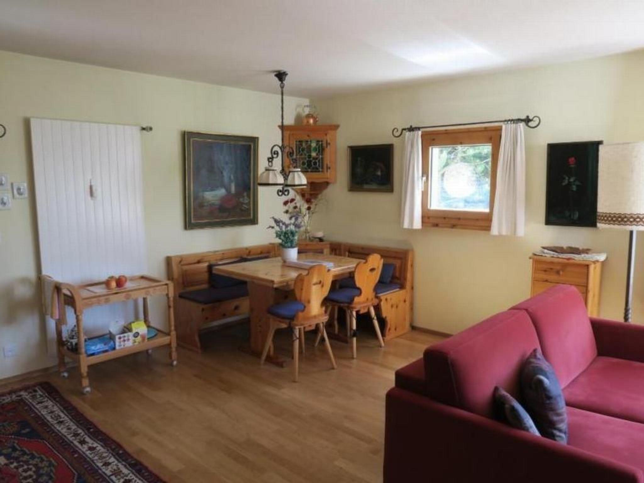 Eine schöne, liebevoll eingerichtete 2 Zimmer-Nichtraucher-Wohnung im 1. Stock links mit schöner Aussicht auf die Engadiner Bergwelt, dank den grossen Panoramafenstern. Gemütliches Wohnzimmer mit Polstergruppe, Essecke, Radio,TV, Internetzugang, Einbauküche mit Kühlschrank, Cerankochfeld, 1 Doppelschlafzimmer, Bad mit WC, Garage. Waschmaschine mit Allgemeinbenutzung. Haustiere sind nicht erlaubt.