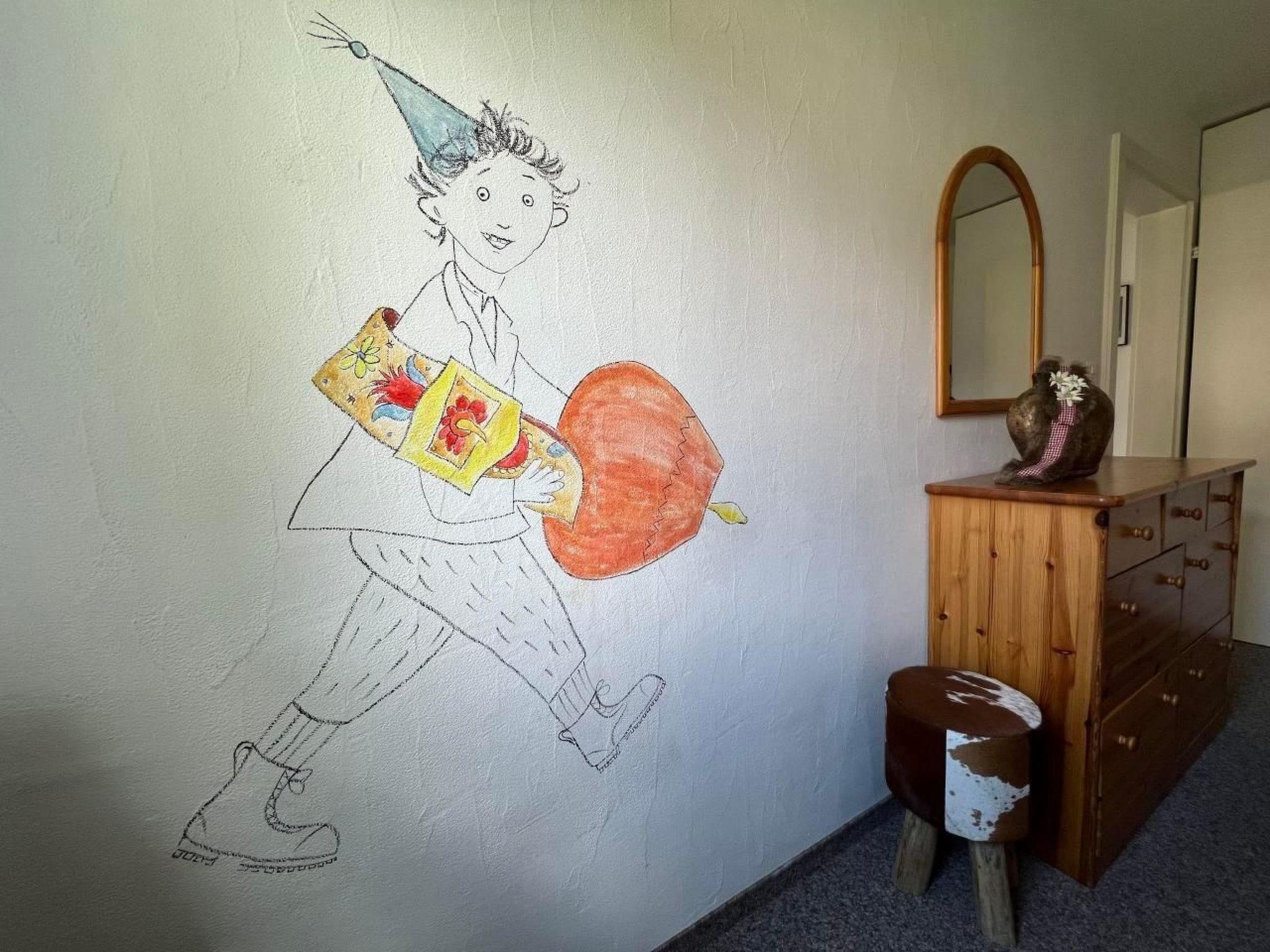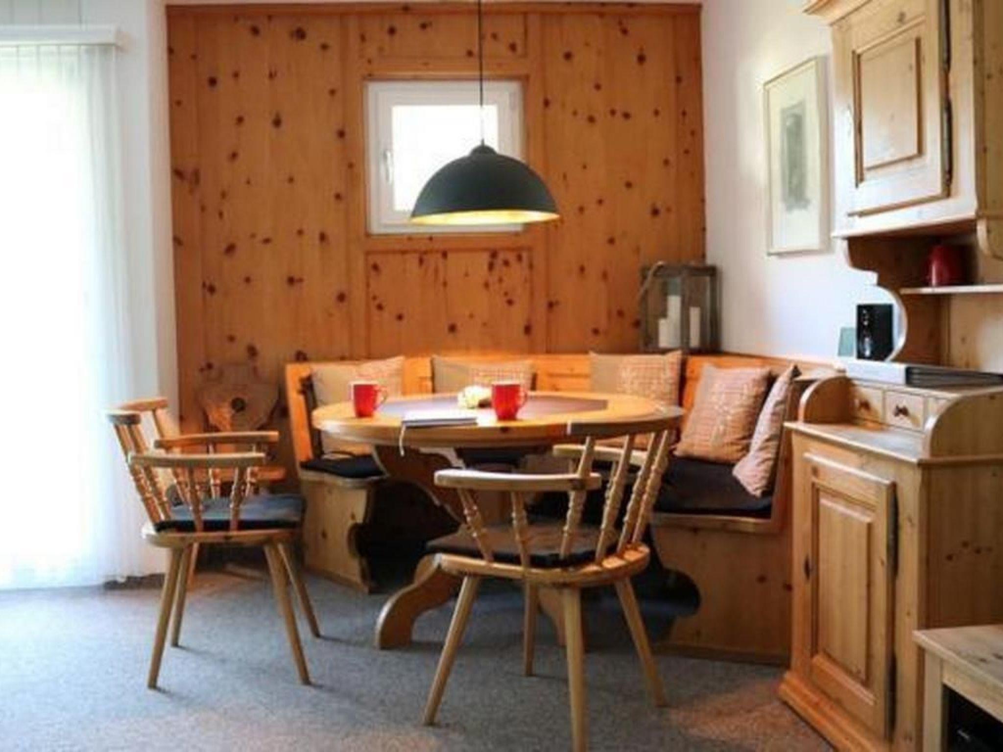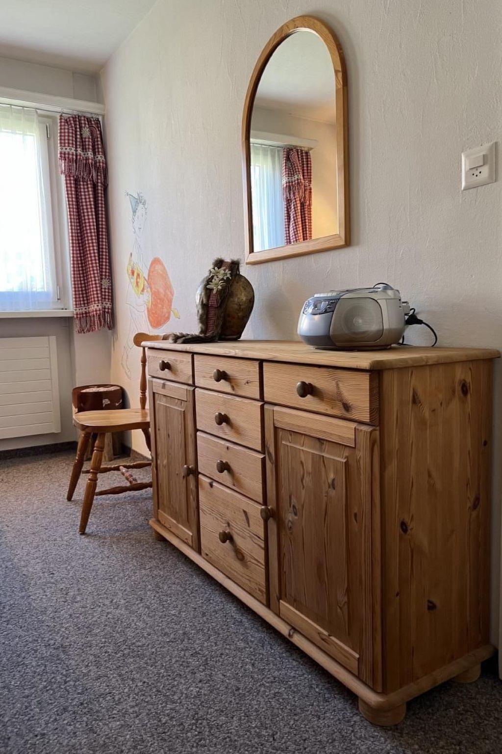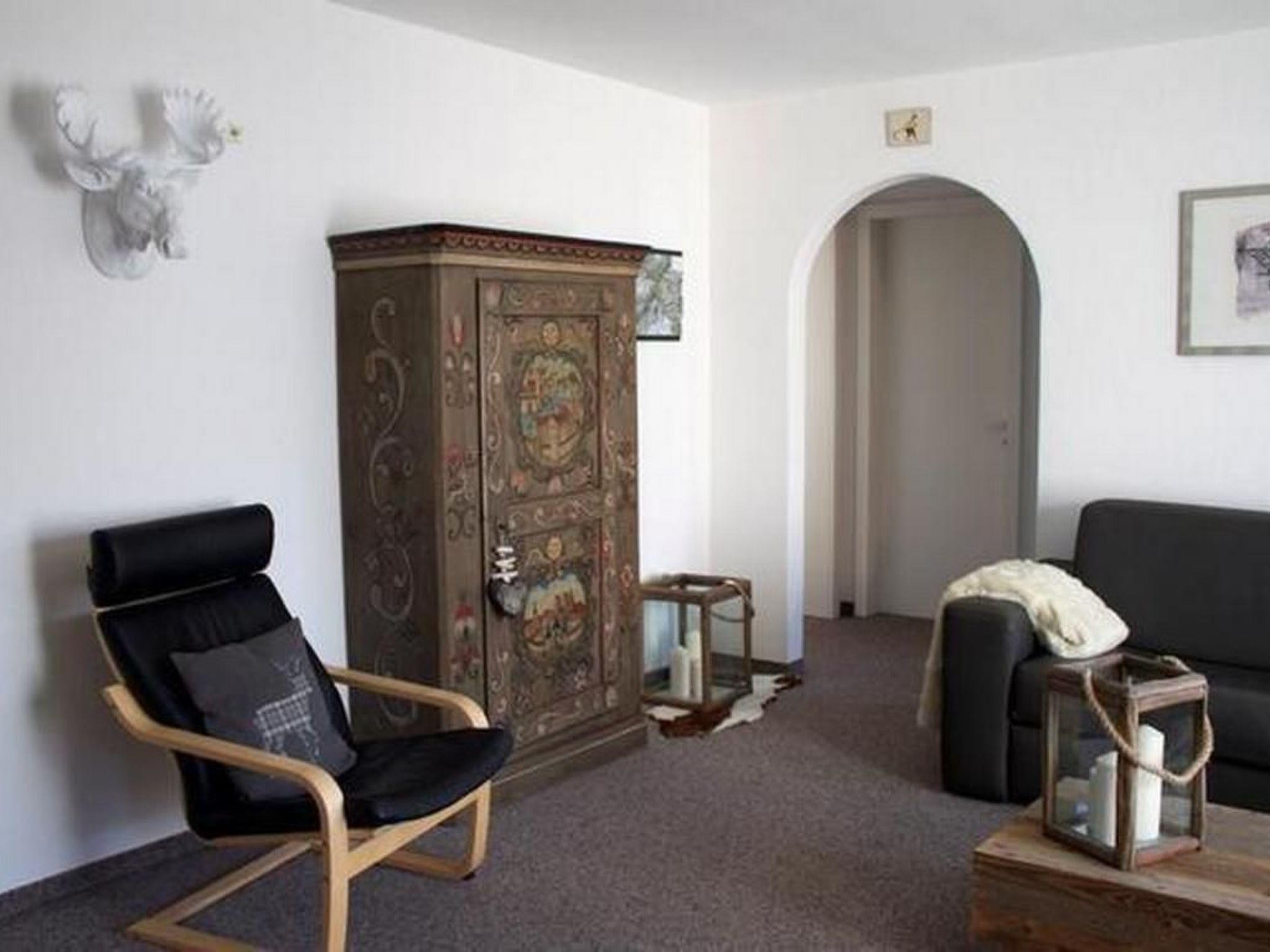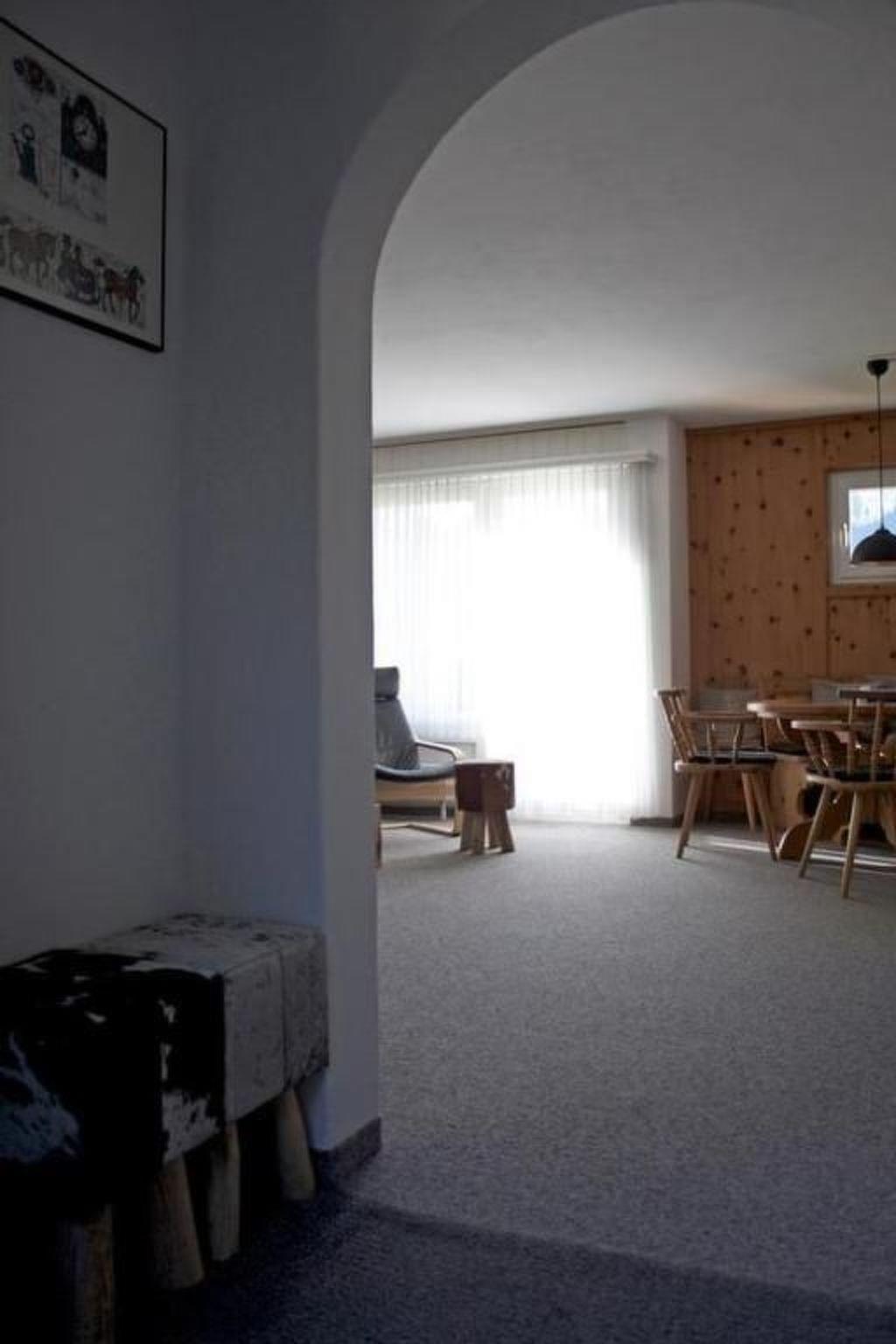 3 ½-Zimmerwohnung (65 m2) für bis zu 6 Personen mit Balkon und Gartensitzplatz mit Aussicht auf den Piz Mezzaun. Entrée mit Garderobe, grosses und helles Wohn- und Esszimmer (Polstergruppe und Sessel, Eckbank und Tisch, TV, Radio, kostenloses WLAN-Internet) mit Schlafmöglichkeit auf dem Bettsofa. Komplett eingerichtete Küche (Glaskeramikkochfeld, Backofen, Geschirrspüler,Mikrowelle, Nepresso Kaffeemaschine, Dampfabzug, Kühlschrank mit Tiefkühlfach). Zwei Schlafzimmer (1 Elternzimmer mit 2 Einzelbetten; 1 Kinderzimmer mit 1 Etagenbett und 1 Einzelbett; Kinderreisebett auf Anfrage gratis verfügbar). Bad/WC ist im April 2023 neu renoviert worden. Abstellraum für Ski und Velos. Waschmaschine und Tumbler zur allgemeinen Benützung. Garagenplatz vorhanden Haustiere erlaubt.