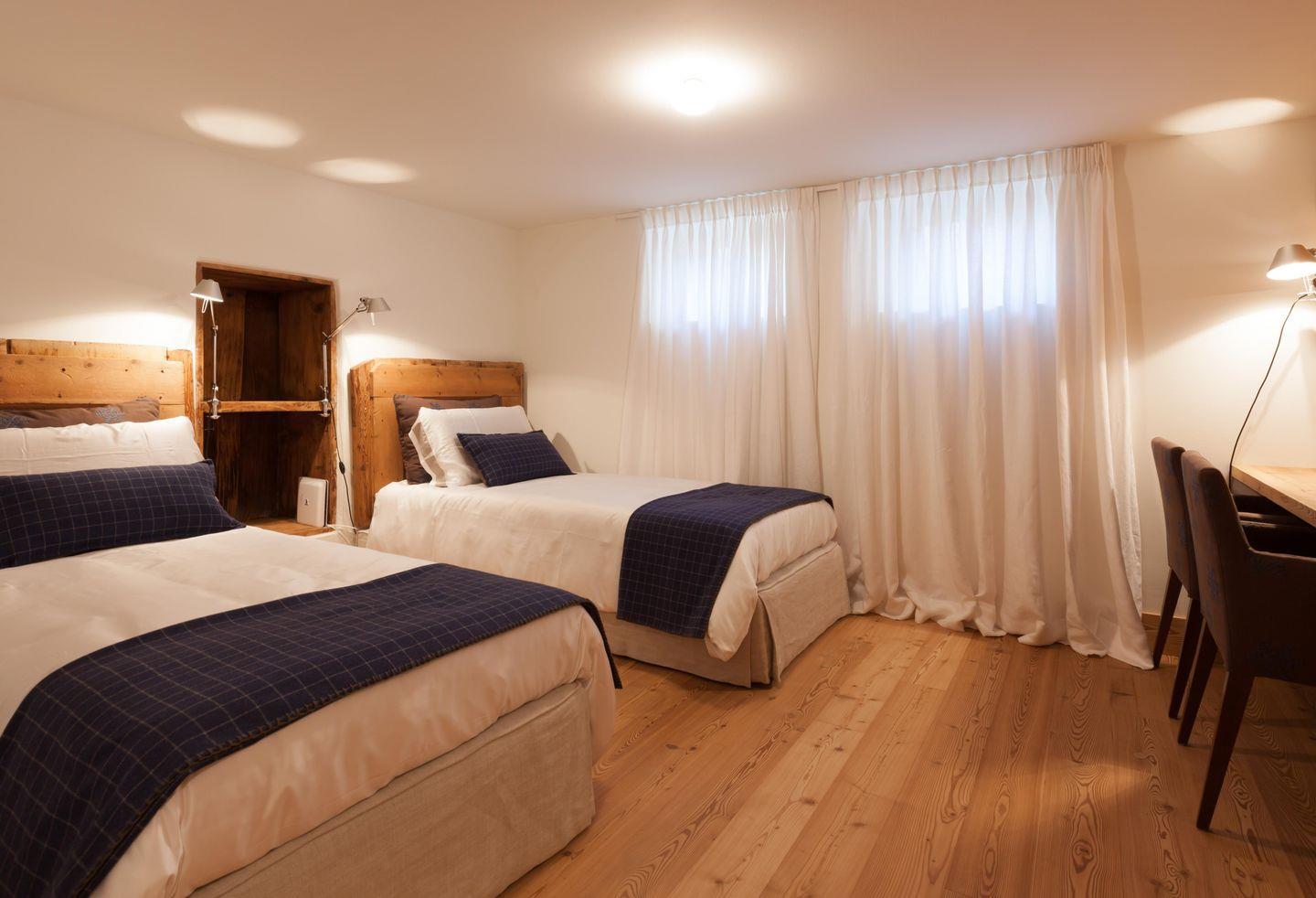 Im grosszügigen Apartment Ches'Ota befinden sich sechs Schlafzimmer und jedes davon verfügt über ein eigenes Bad/Dusche/WC. Vier Schlafzimmer bieten ein Doppelbett, in einem anderen sind zwei Einzelbetten zu finden und das letzte verfügt über ein Einzelbett. Zusätzlich zu den sechs Badezimmern gibt es auch ein Gäste-WC auf der zweiten Etage der Wohnung. Ebenfalls auf der zweiten Etage befindet sich der grosszügige Wohnraum, mit separater Küche und Fernsehecke. Der Garten ist von der Küchetüre erreichbar oder direkt vom Aussenbereich.