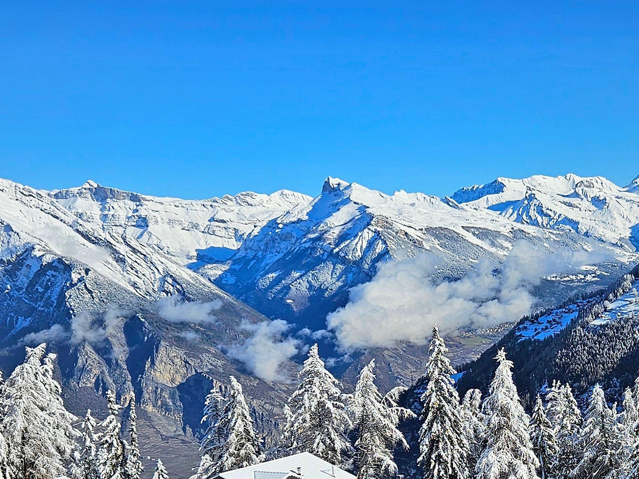 Ski-Info Höhe Chalet ~1600 m, Skigebiet bis 3.330 m, mit Gletscher Mont Fort; 410 km Pisten, 95 Lifte, größtes Skigebiet der Schweiz. 10-km-Rodelbahn, Auffahrt mit Kabinenbahn.