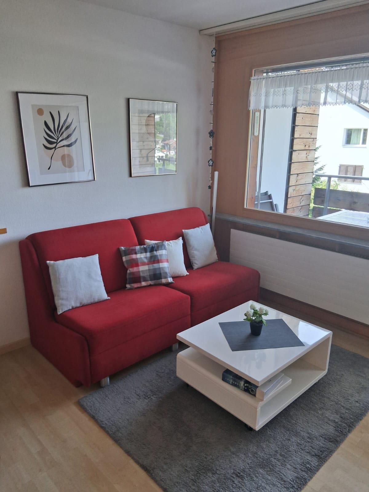 Gemütliche 2-Zimmerwohnung 40 qm (3 Betten), gut eingerichtet, im 1. Obergeschoss mit Hallenbad und Sauna. Toplage, ruhig mit toller Aussicht in die Berge und zum Laaxer See. Vom herrlichen Südbalkon genießen Sie die Sonne bis in die Abendstunden. Die Wohnung verfügt über einen überdachten, reservierten Aussenparkplatz. In 3-5 Gehminuten erreichen Sie die Bushaltestelle und die Lebensmittelgeschäfte. Die Busfahrt zur Talstation beträgt nur ca. 5 Minuten und ist kostenlos. Das Hallenbad ist vom 27.10. bis 28.11.2025 geschlossen. Der Zugang zur Sauna ist immer offen. Es ist eine Nichtraucherwohnung. Haustiere sind nicht erlaubt. Hallenbad und Sauna sind vom 9.3.26 bis 18.12.2026 wegen Sanierungsarbeiten geschlossen.